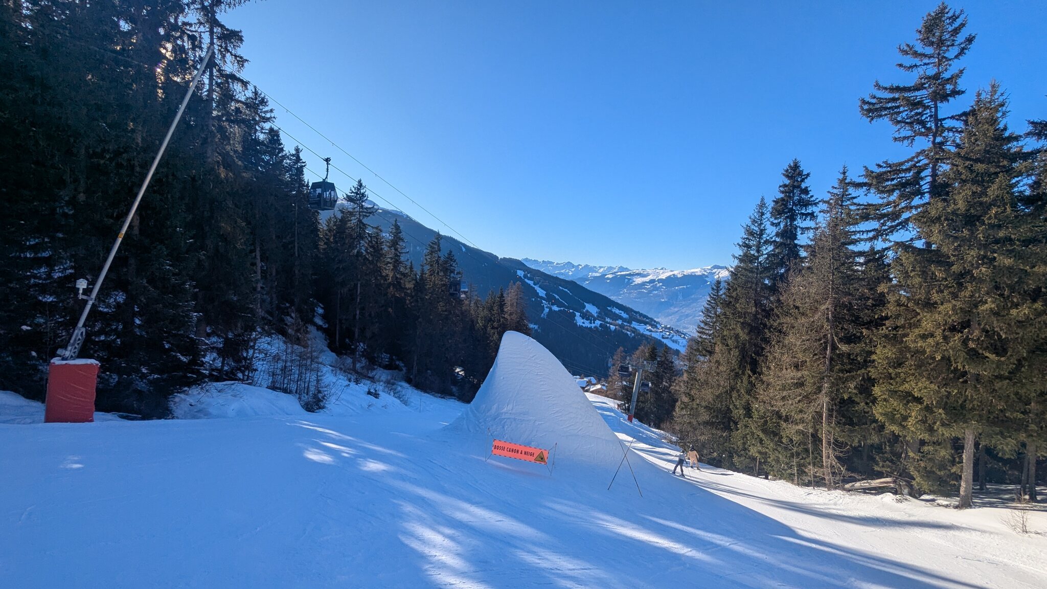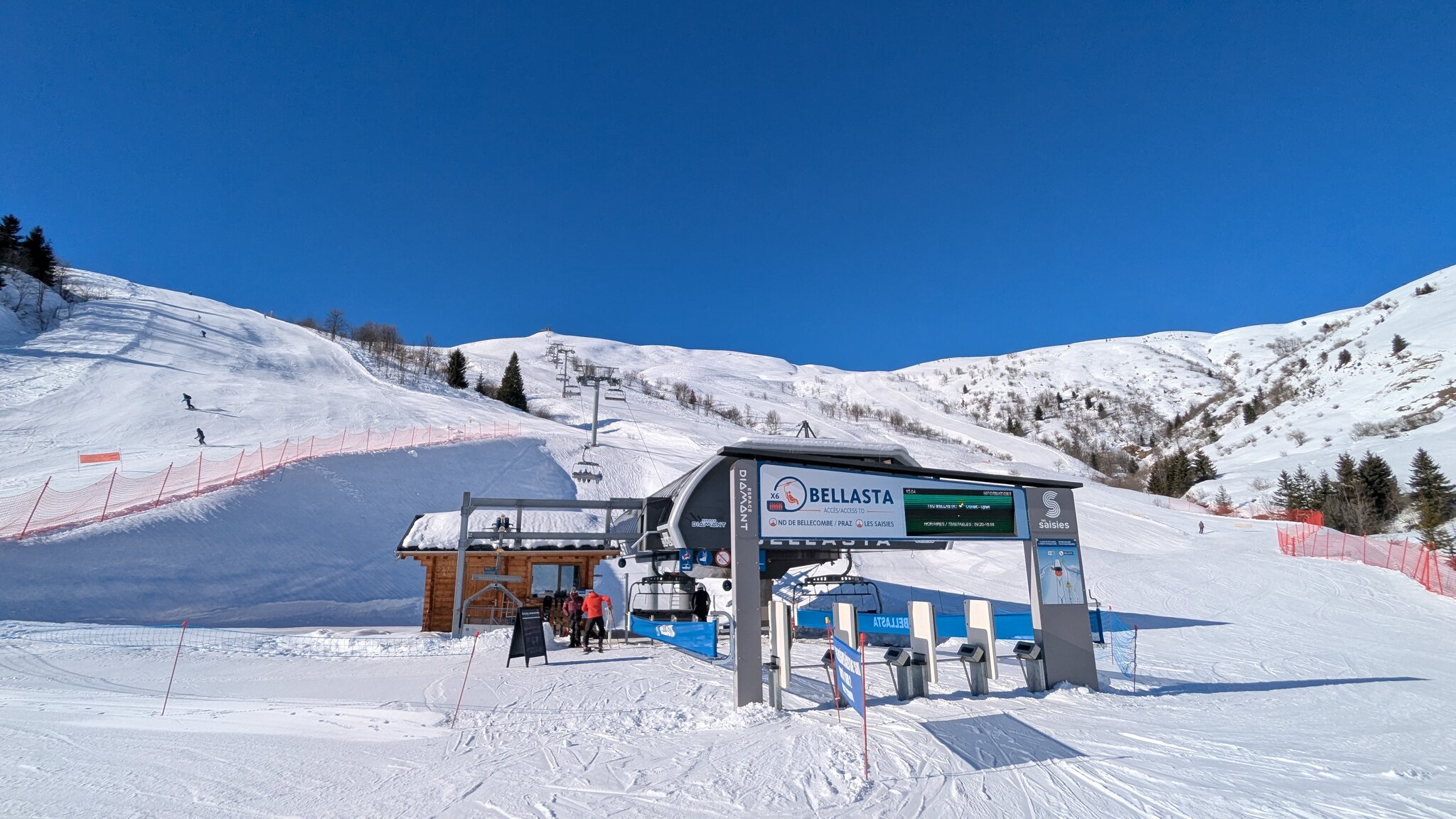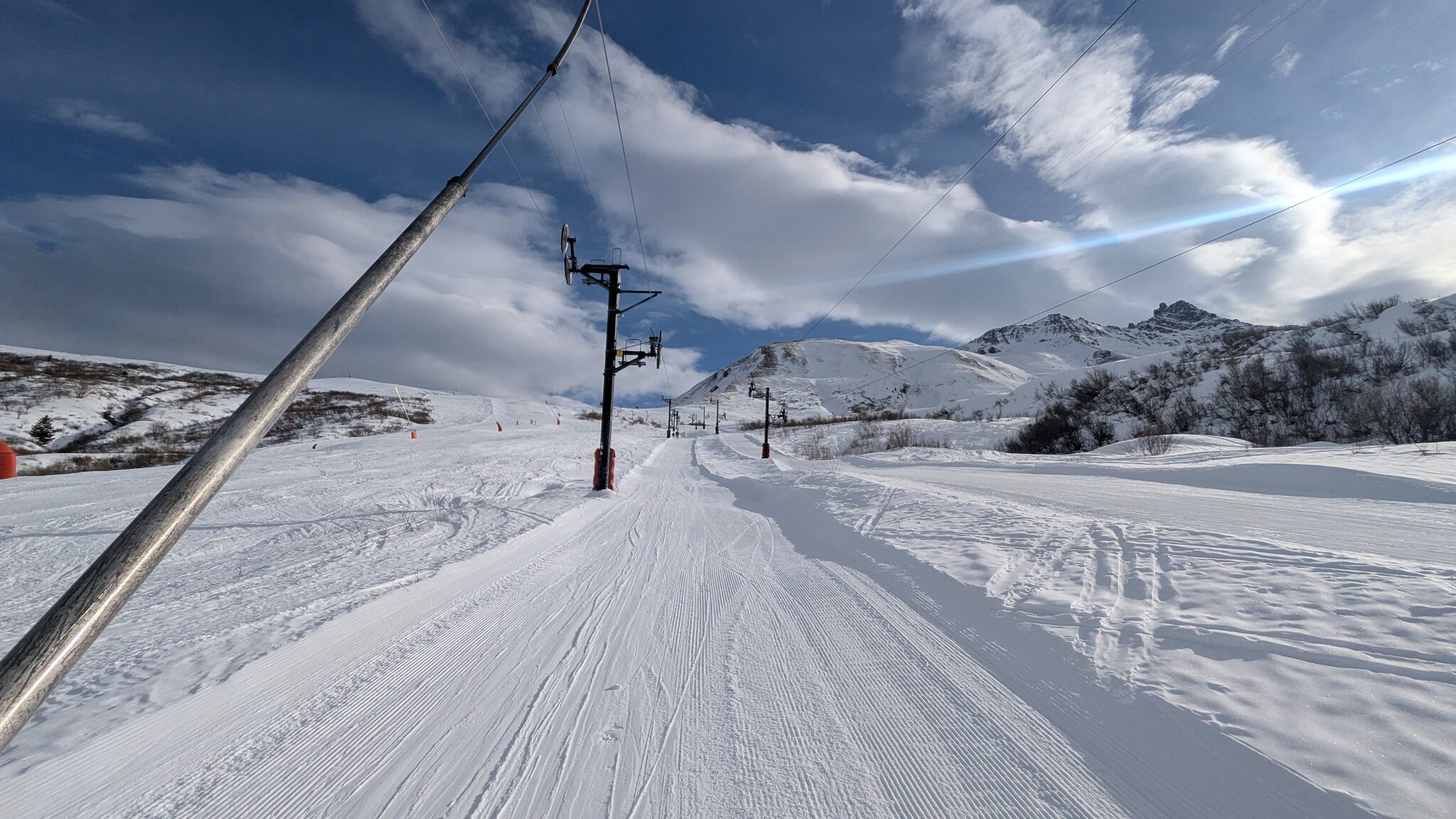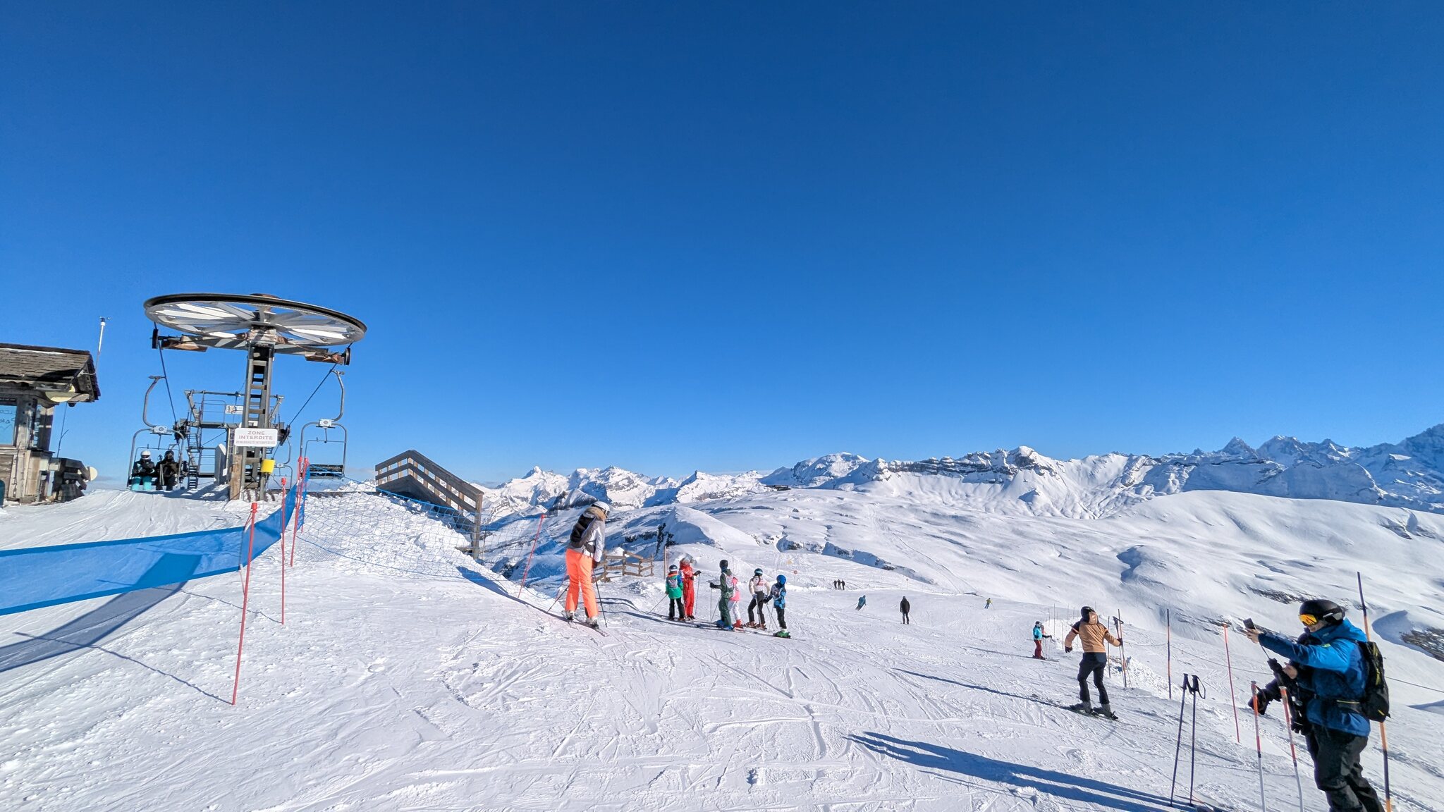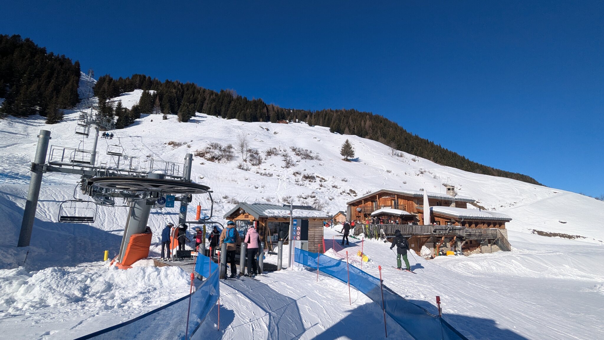 Schnee ist auf den Pisten genug, aber manche Pisten sind auch noch zu. Es gibt ein paar historische Anlagen, aber alles relevante ist top modern kuppelbar. Hauben sind in Frankreich sowieso überall als überflüssig erkannt. Und gefühlt. Alle kuppelbaren Lifte laufen mit ordentlich Speed!