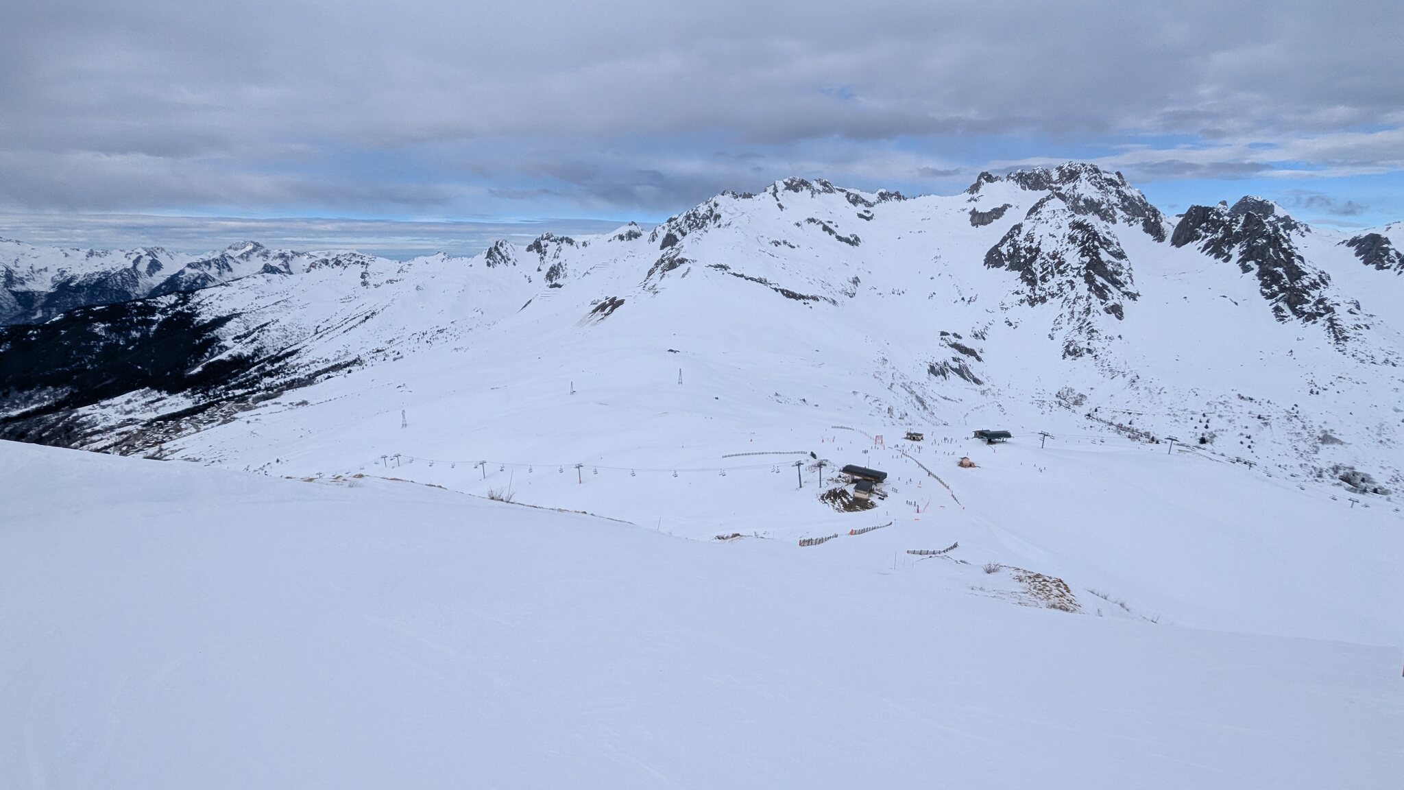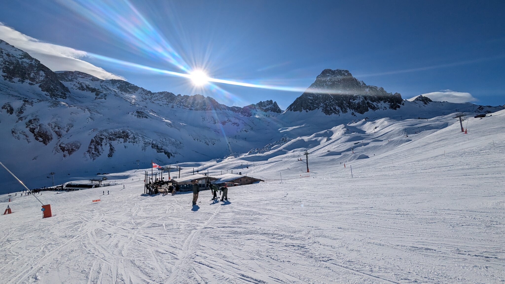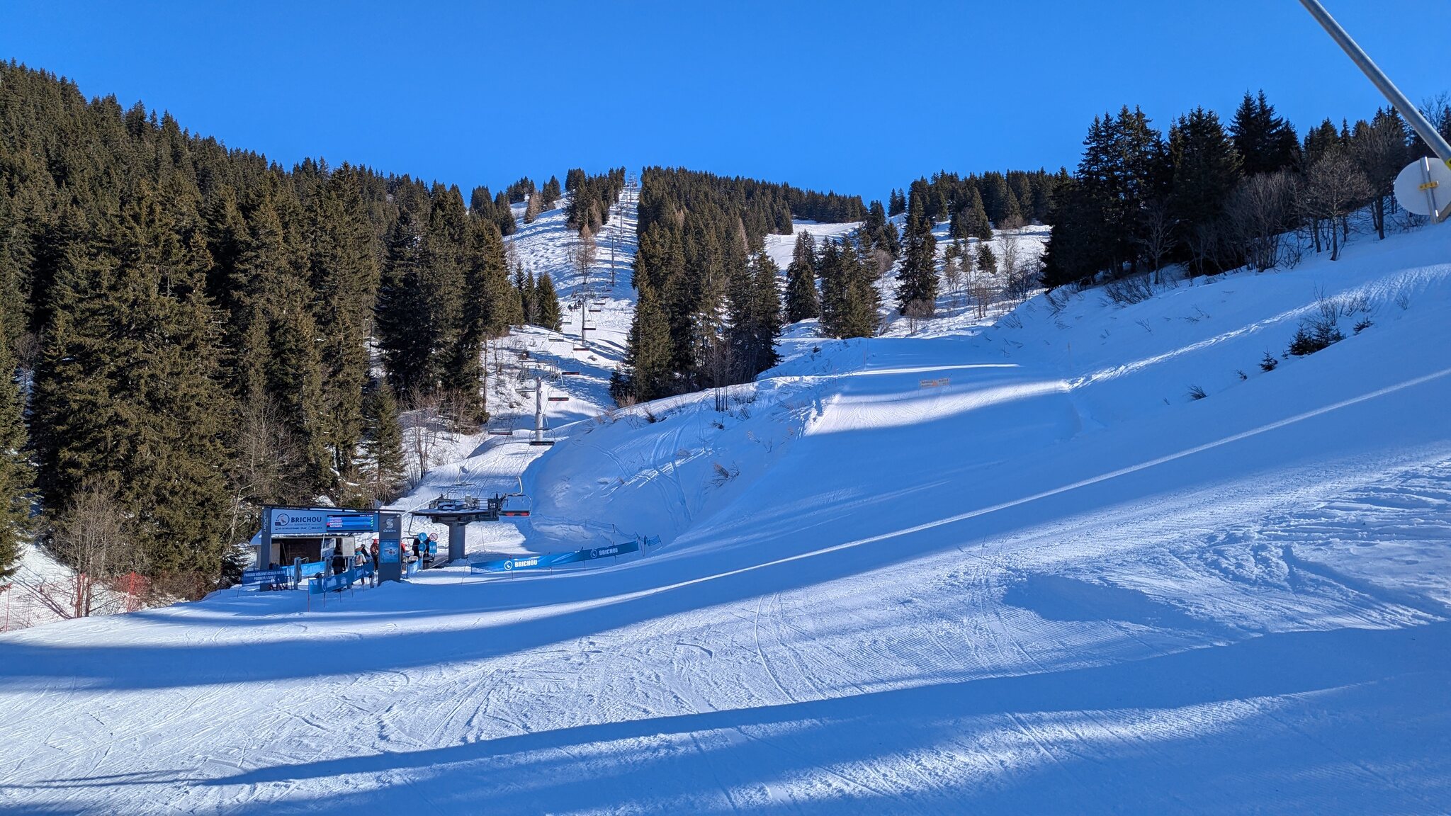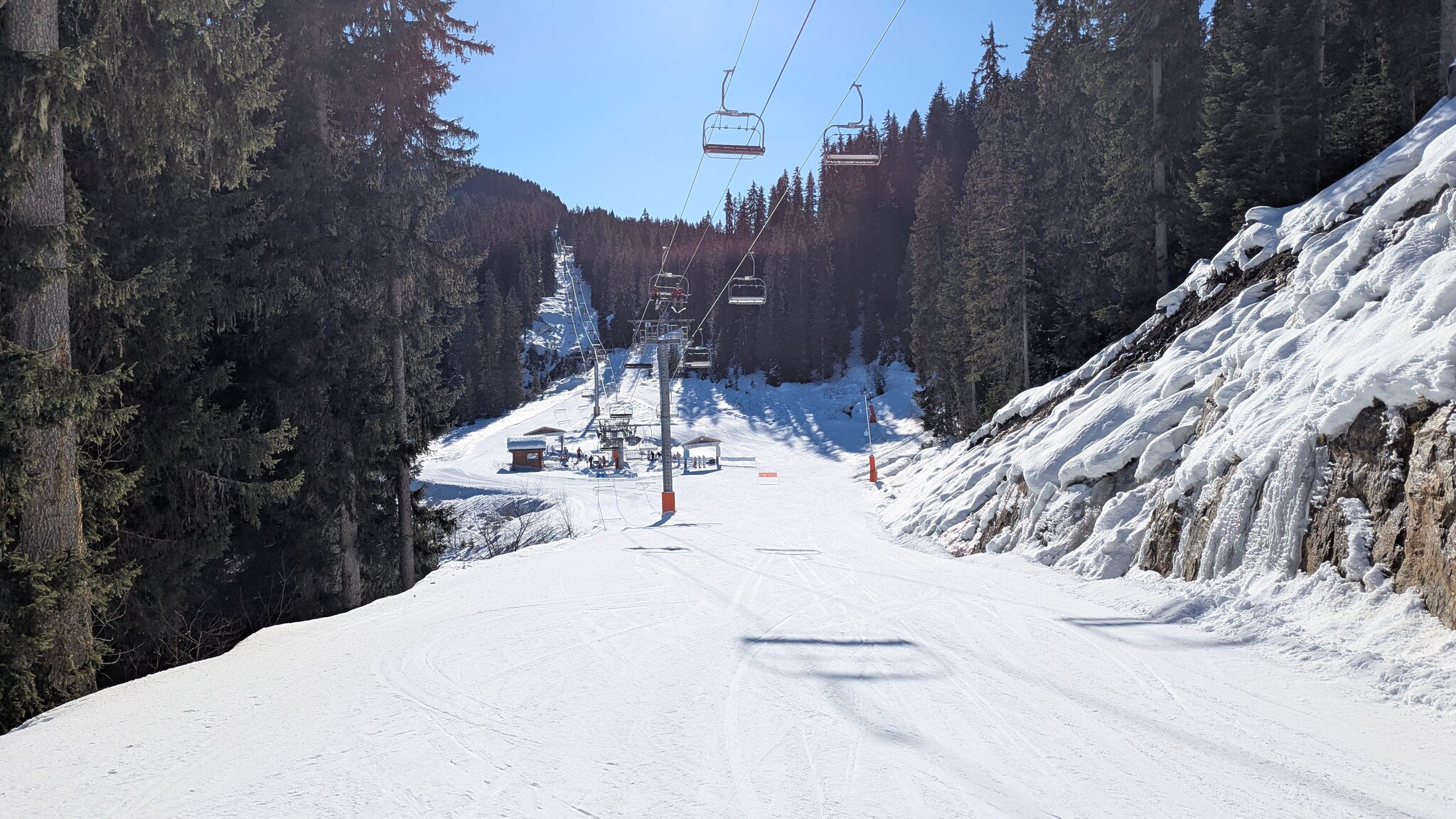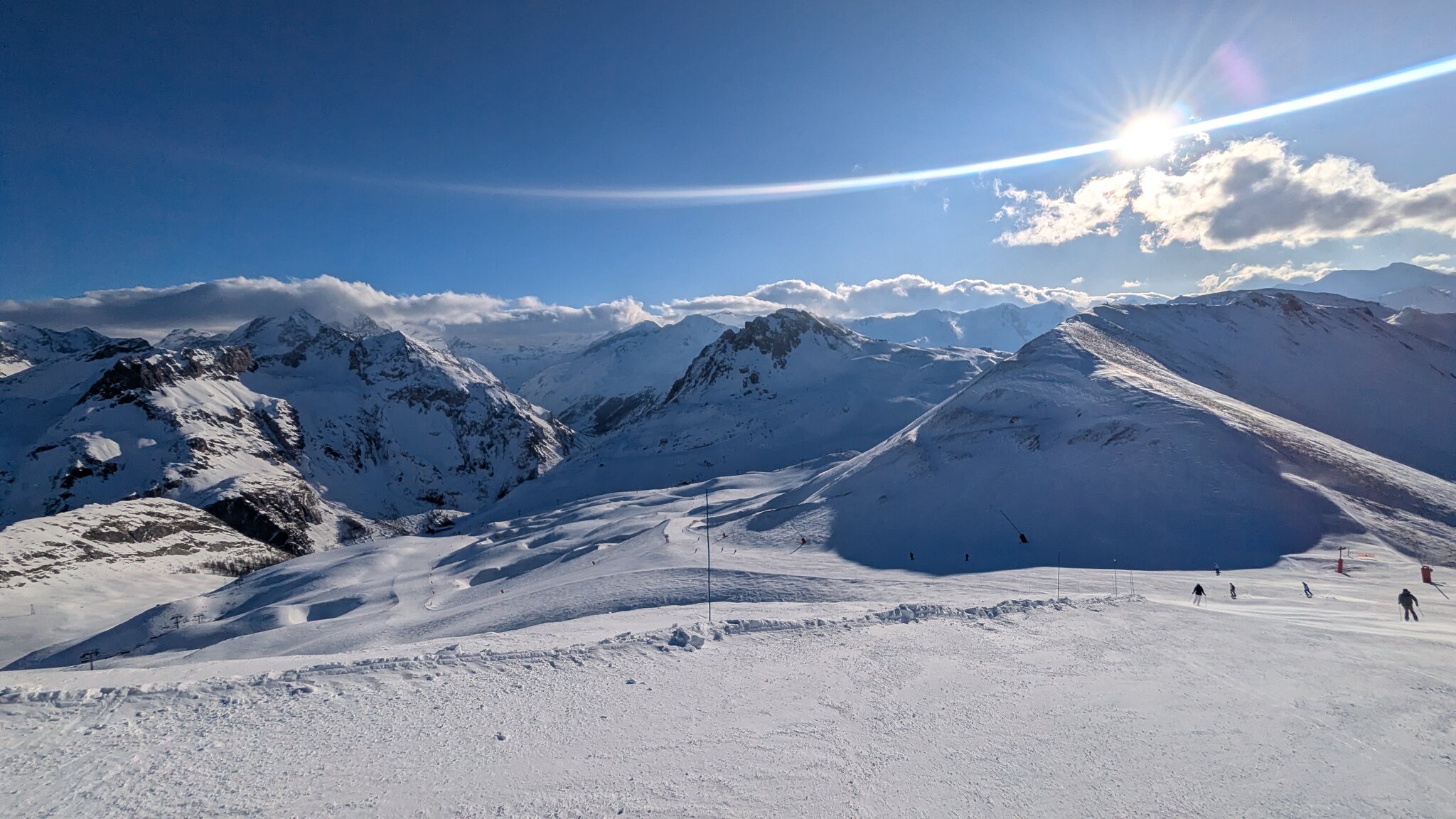 Schnee ist auf den Pisten genug, aber manche Pisten sind auch noch zu. Es gibt ein paar historische Anlagen, aber alles relevante ist top modern kuppelbar. Hauben sind in Frankreich sowieso überall als überflüssig erkannt. Und gefühlt. Alle kuppelbaren Lifte laufen mit ordentlich Speed!