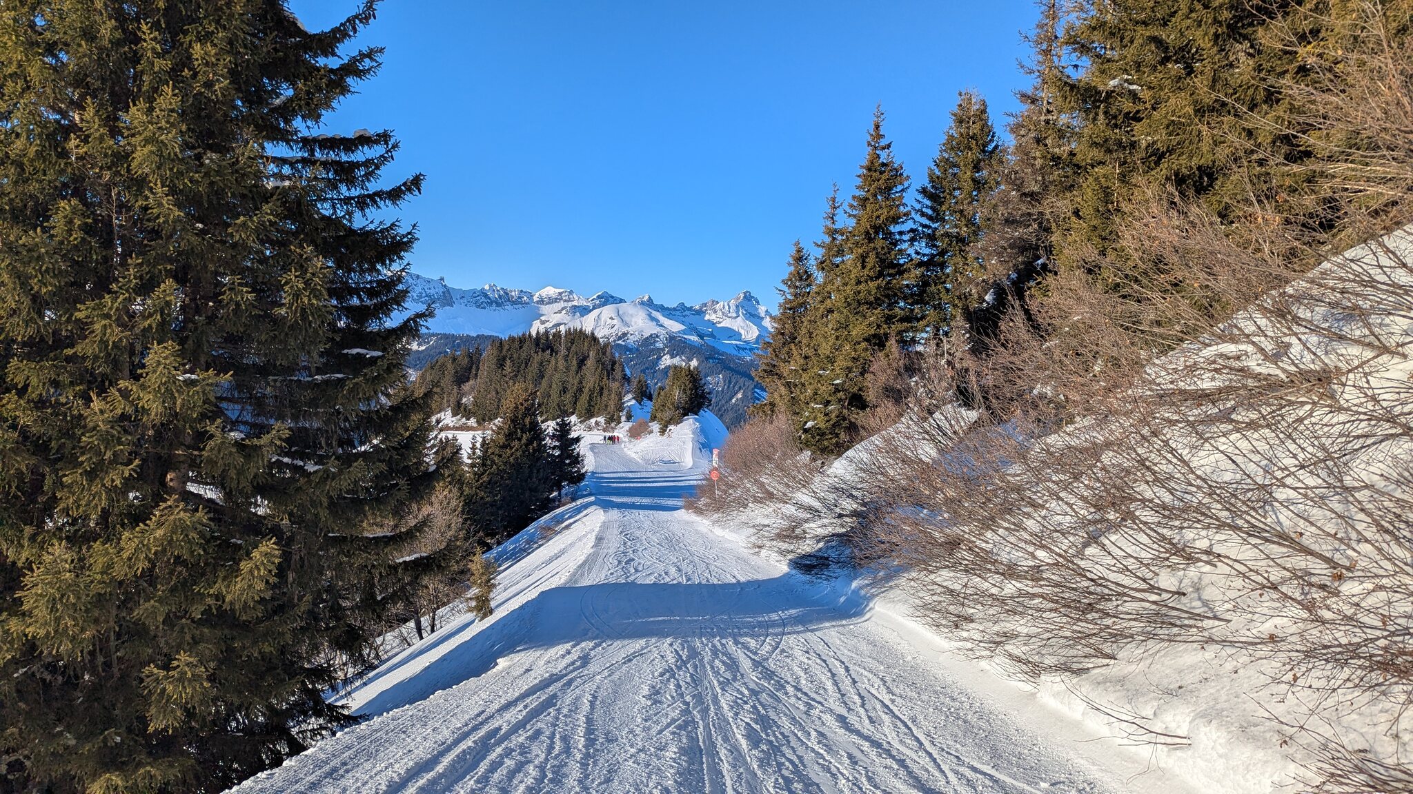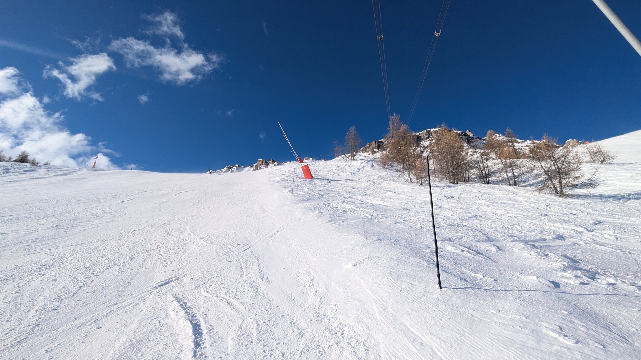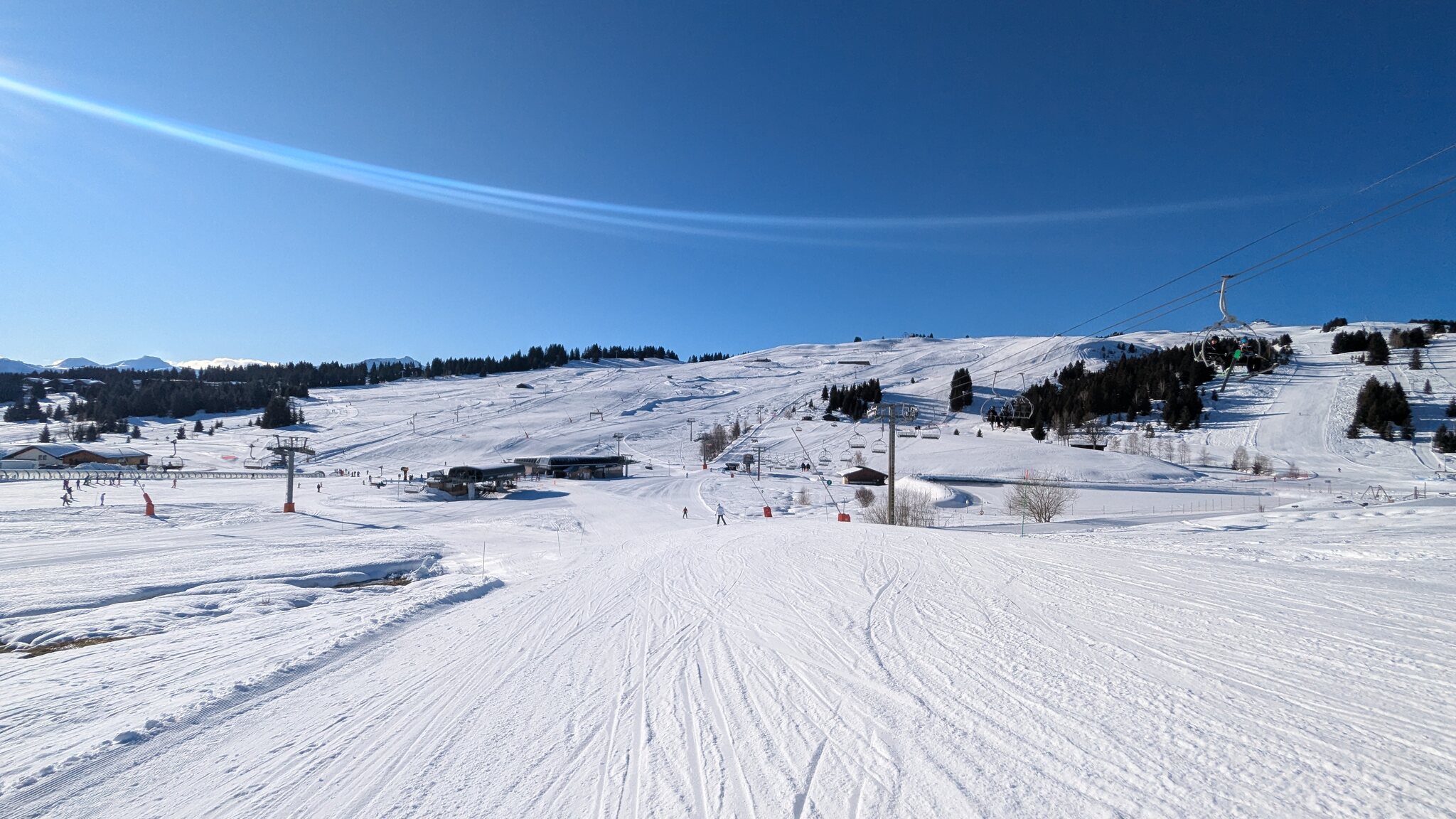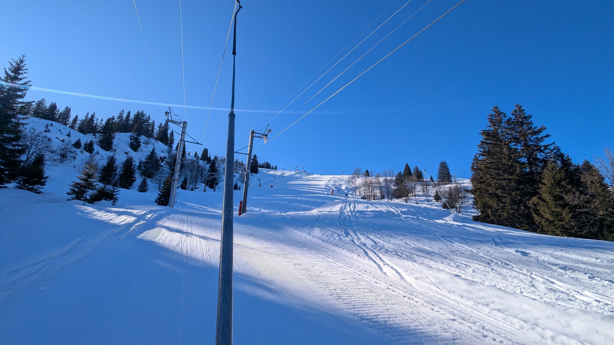 Rote Piste Lanchettes an der gleichnamigen TSF Lanchettes - unten heraus fehlt es deutlich an Schnee, da aber gefühlt keiner auf der Piste unterwegs ist ist das gut zum umfahren