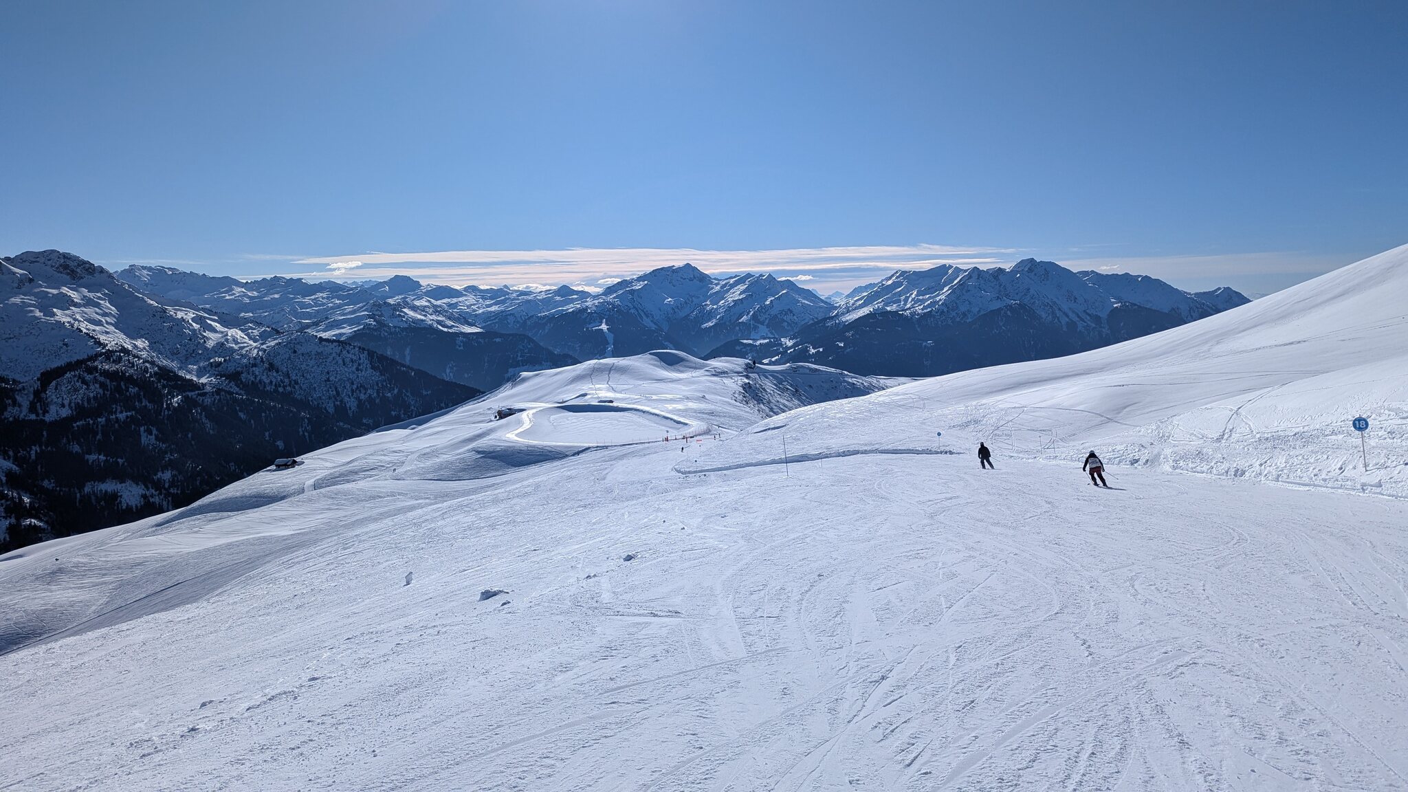 Erfreulich wenig los heute überall, und wie sich am Ende herausstellen sollte tolle Pisten Bedingungen bei traumhaftem Wetter. Ein gigantischer Start in meinen Ski Roadtrip!
