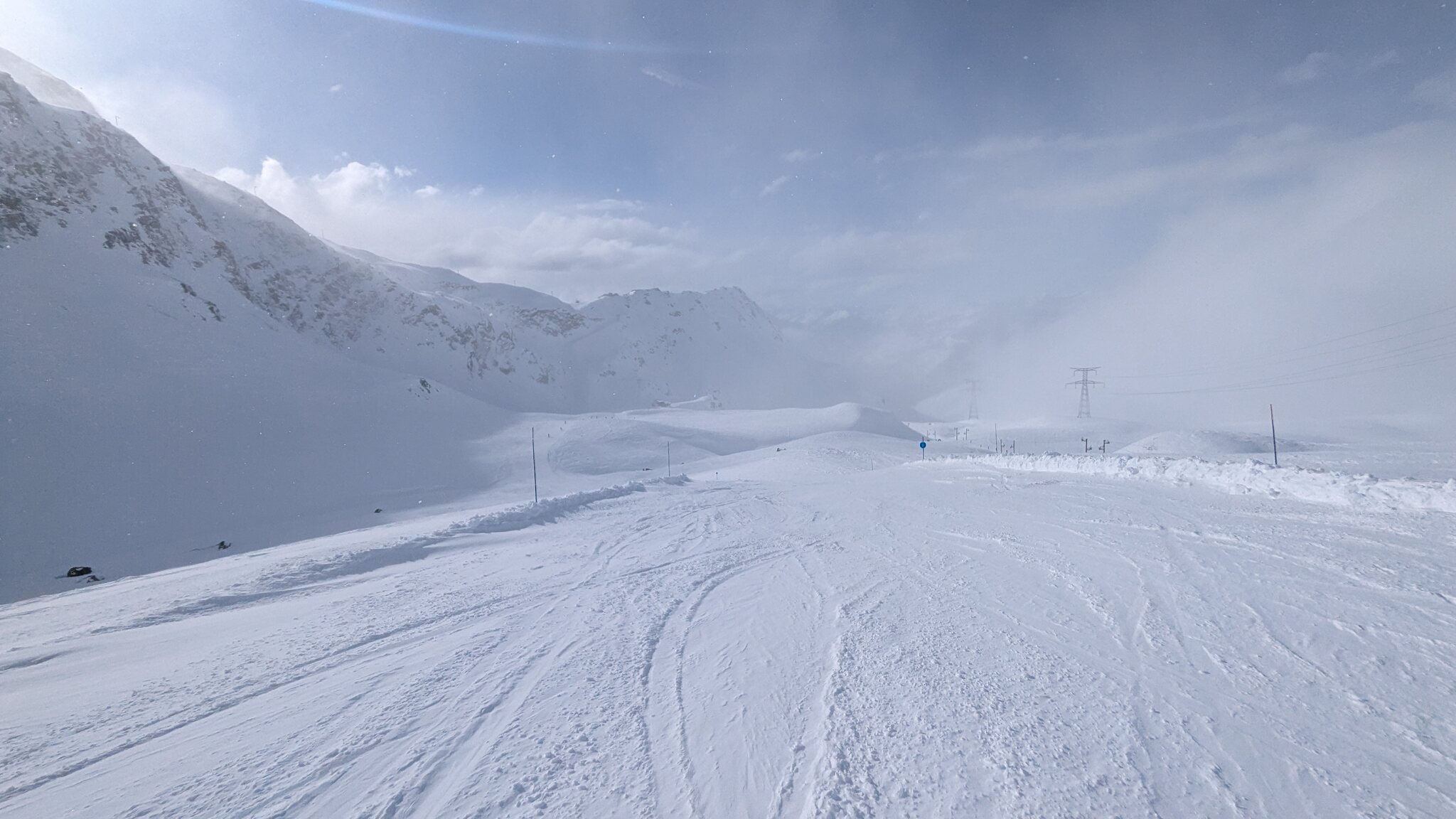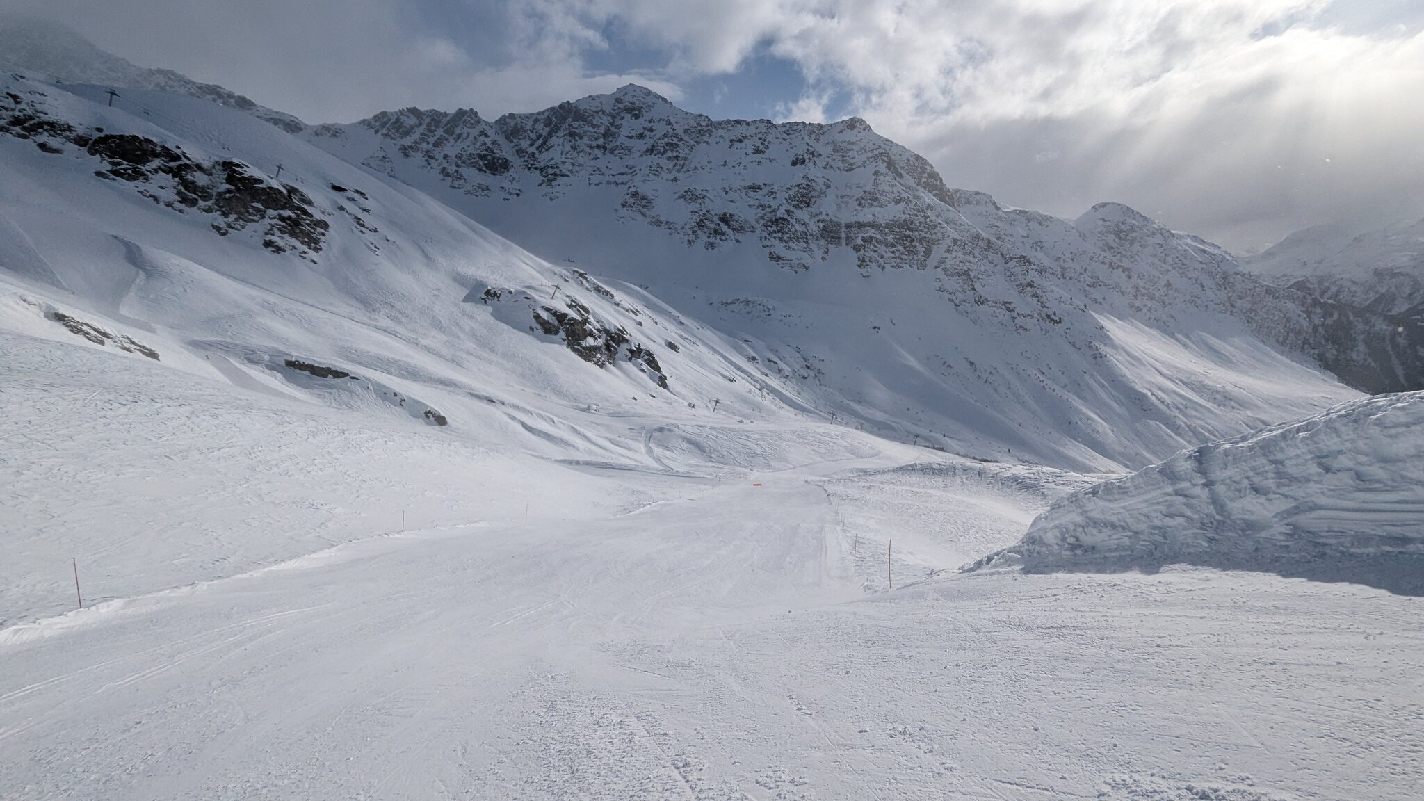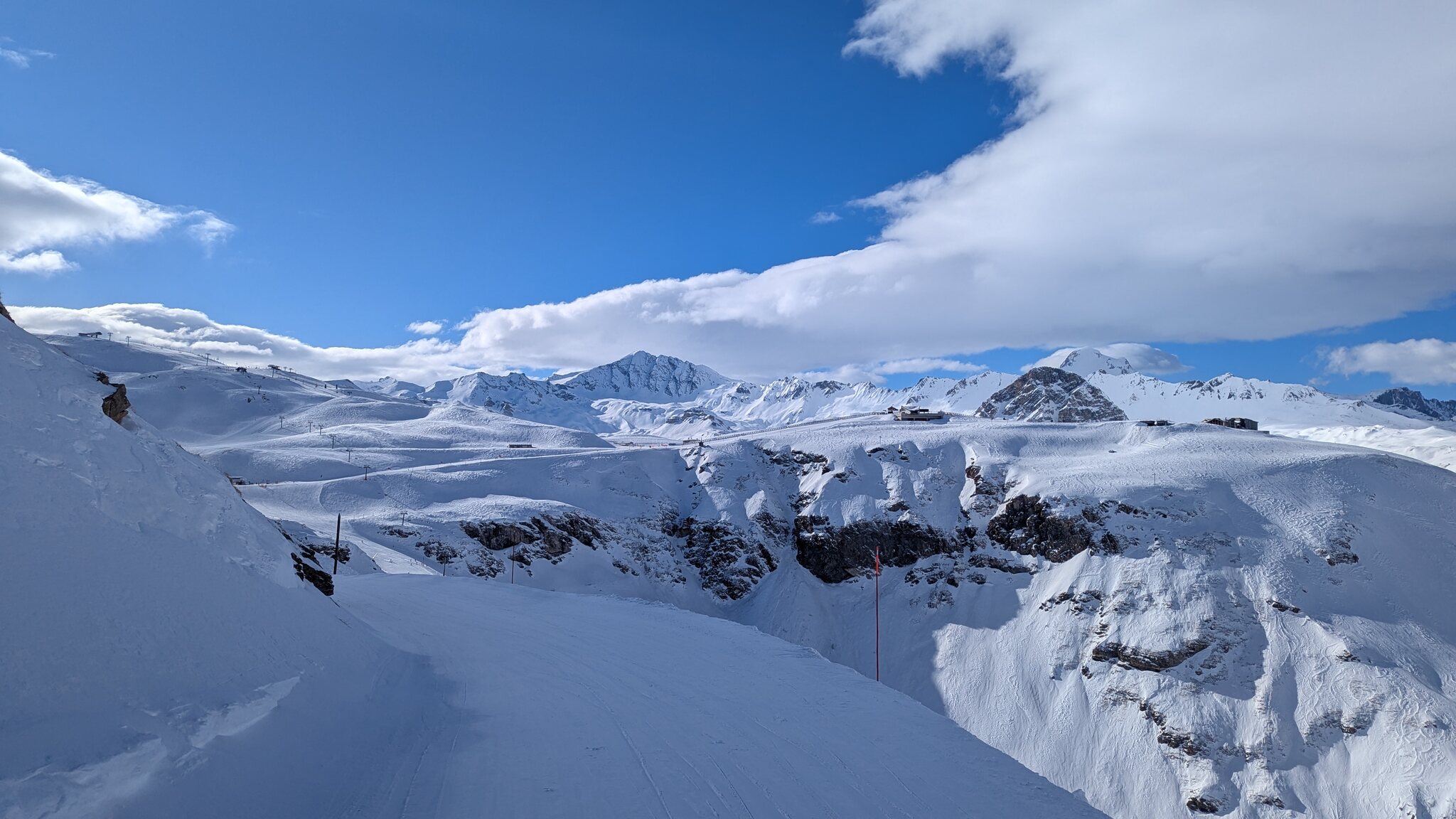 Piste von der Grandes Platières Bergstation nach links "Dessert Blanc", wirkt beindruckend hier oben!