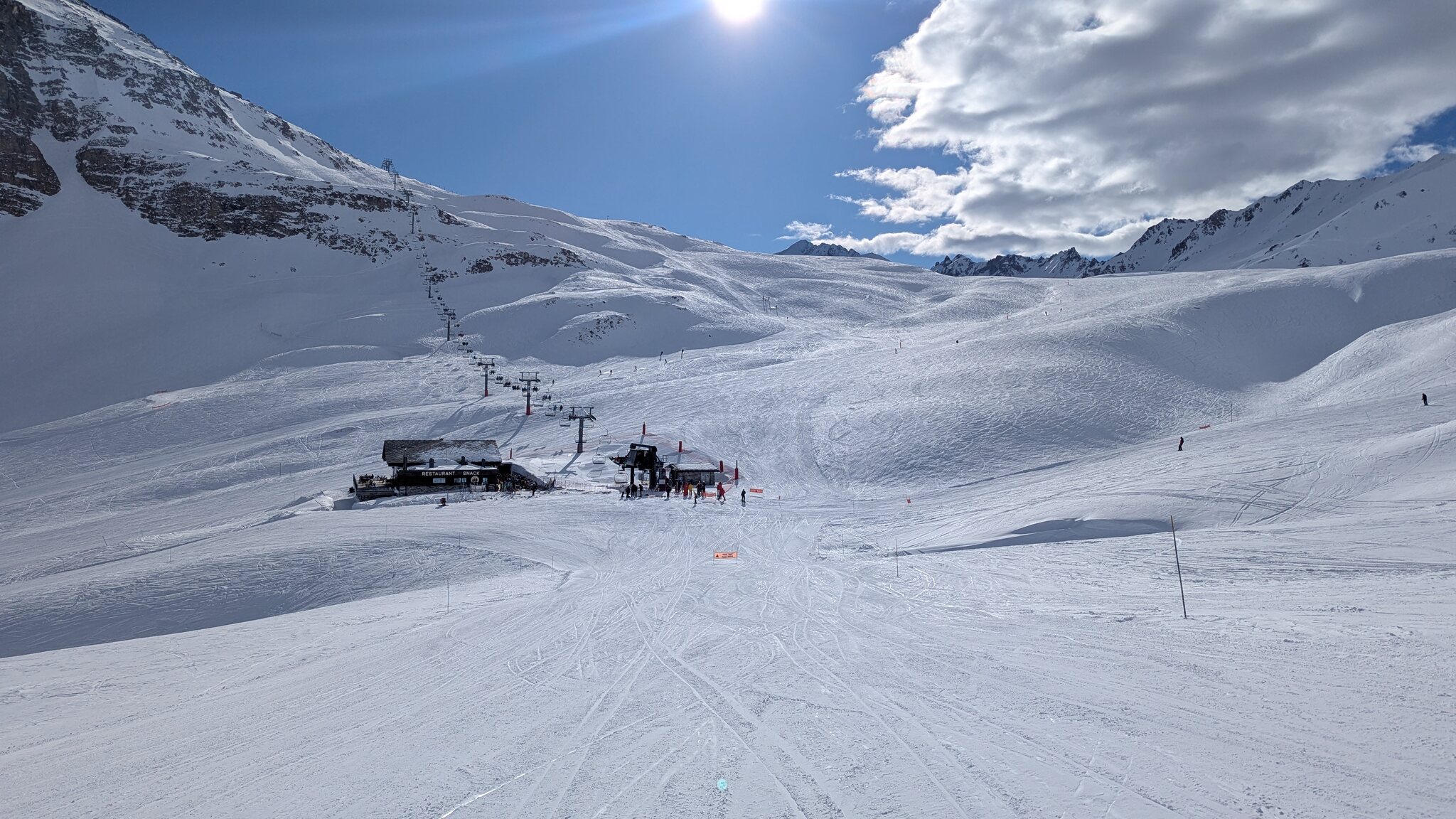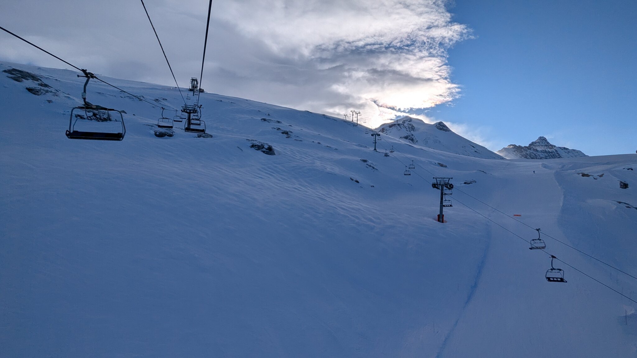 Wirkt toll hochalpin hier oben, gerade im Kontrast zu den anderen Liften!