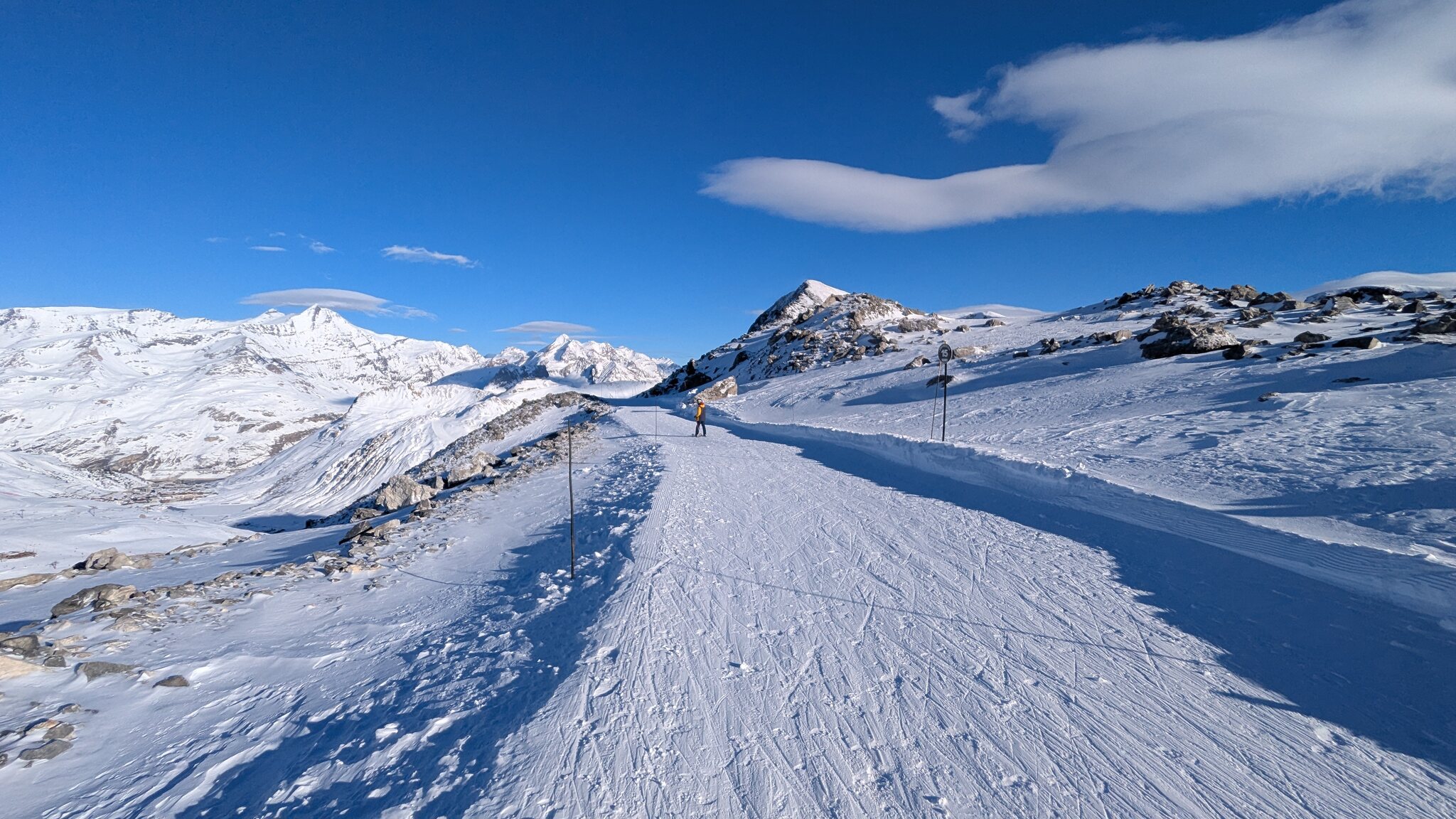 Weitere tolle und angenehm leere Sonnenpisten im Gebiet! Was ein Kontrast zu Les Arcs oder Tignes die letzten Tage! Mir gefällt das Gebiet hier richtig gut! Falls ich demnächst eine Woche nach la Plagne komme, dann muss am Abreisetag nochmal ein Tag La Rosière drin sein!