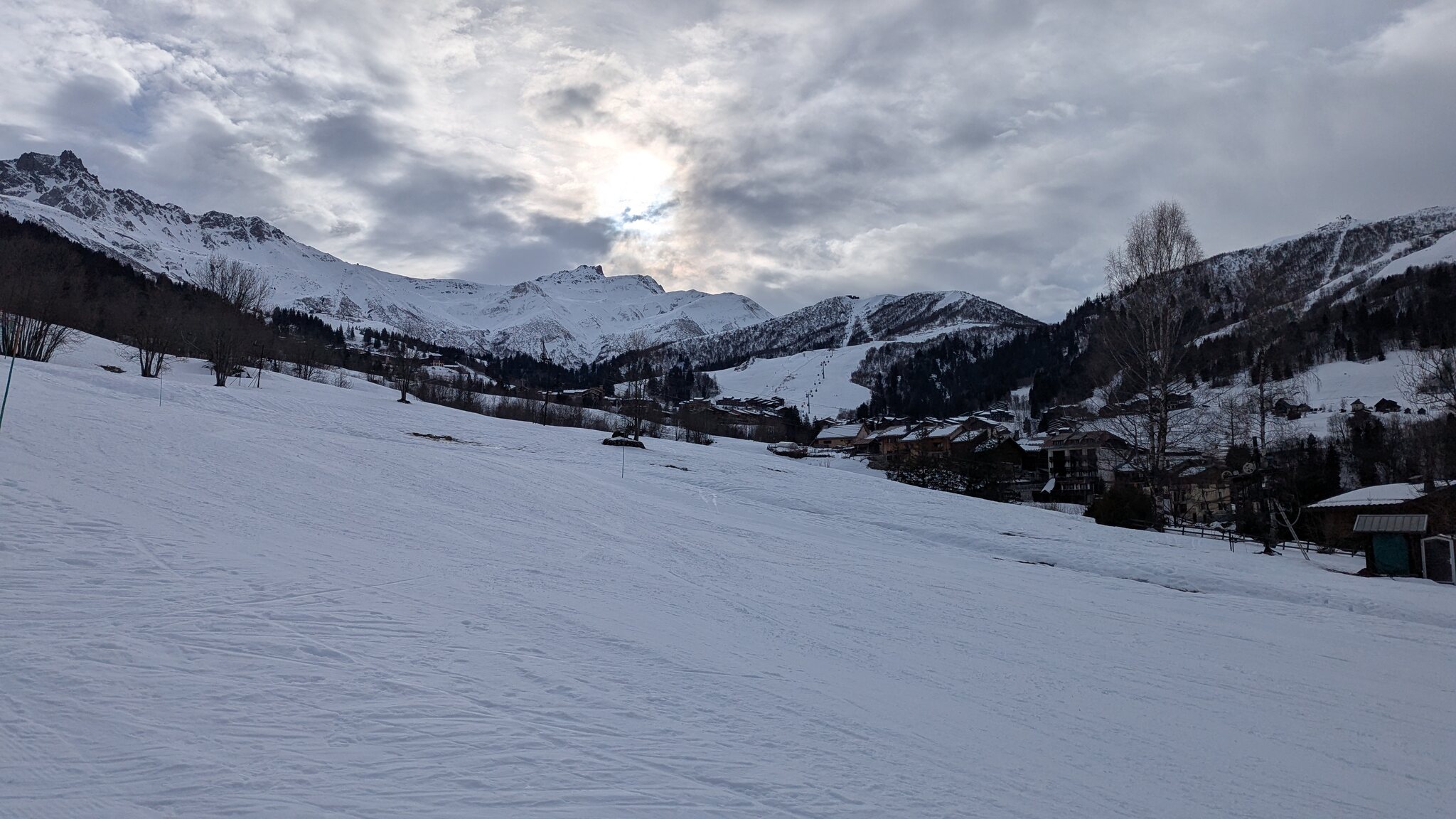 Vorbei erneut an der Telecabine Celliers auf dem Weg nun nach Saint-François-Longchamp, dem anderen Ende des Skigebiets. Im Sommer gibt es hier von Celliers aus eine Passstraße über den Col de La Madeleine, im Winter müsste man über Albertville fahren