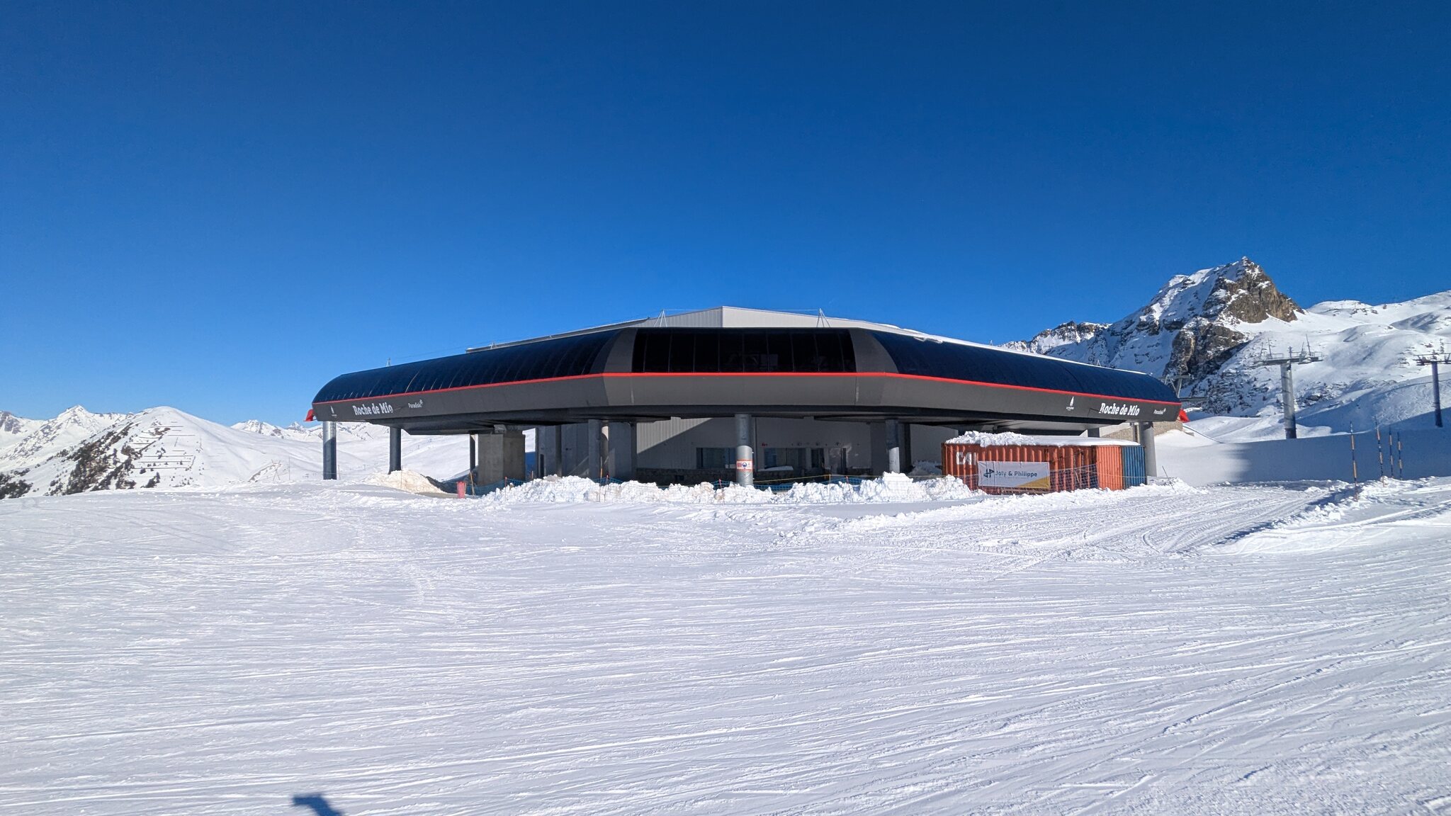 Die neue 10er-Gondelbahn "TCD10 Roche de Mio" hat am 13.12.2025 offiziell den Betrieb aufgenommen. Erste Bilder zeigen die moderne Anlage, die aus zwei Sektionen besteht und eine markante Winkelstation aufweist.