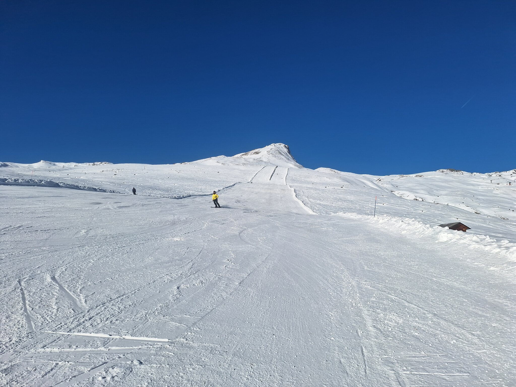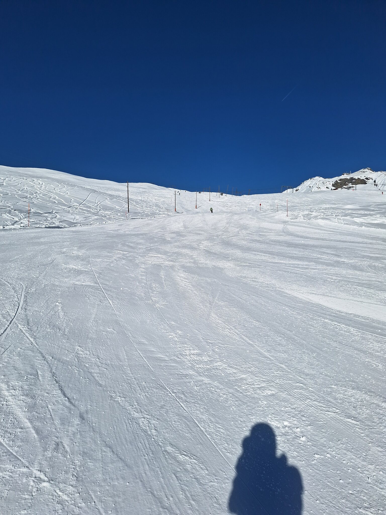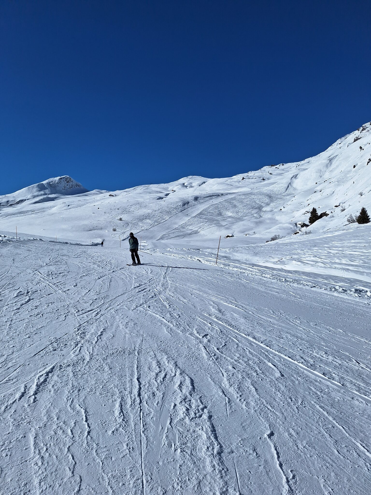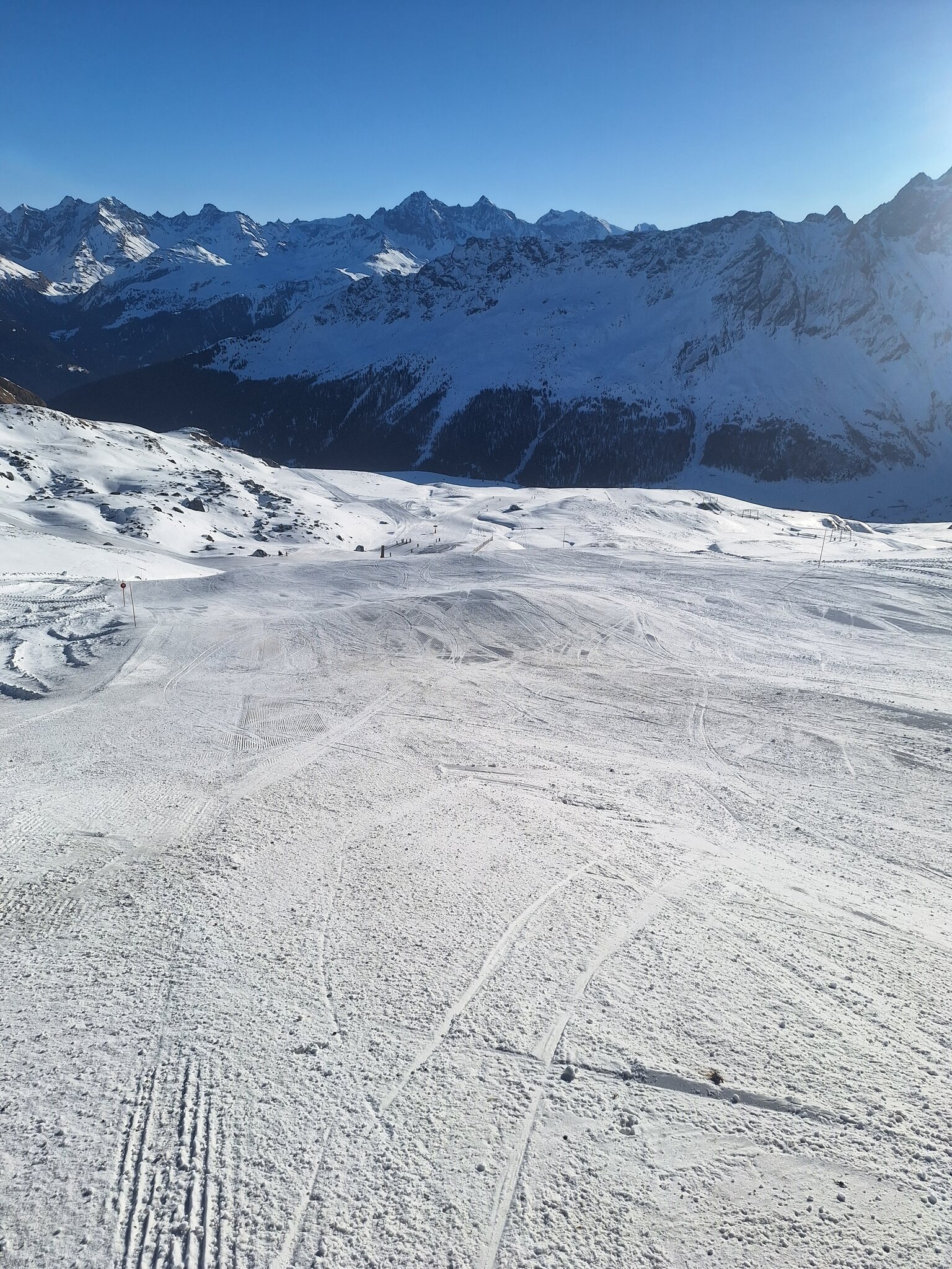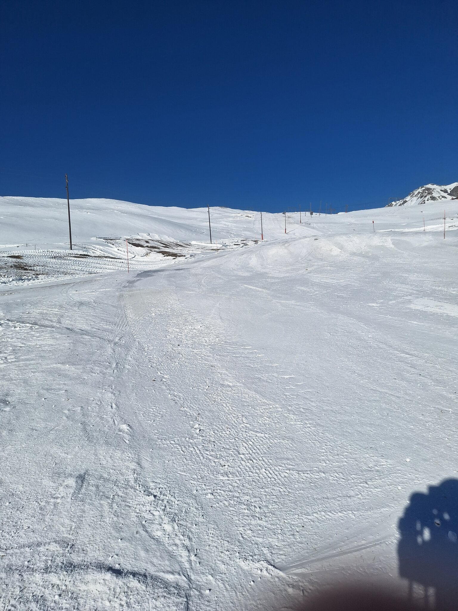 Die offenen Pisten am SL Tua und insbesondere beim SL Al Cant waren sehr steinig, da hätte ich lieber die alten Ski gehabt. Am SL Camon waren die Pisten top präpariert und ohne Steine, ich nehme an dort wurden alle vorhandenen Kanonen eingesetzt. Es hatte fast keine Leute auf den Pisten. Sonne satt.