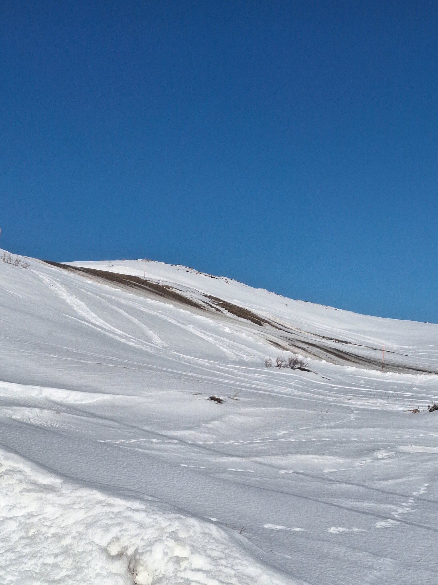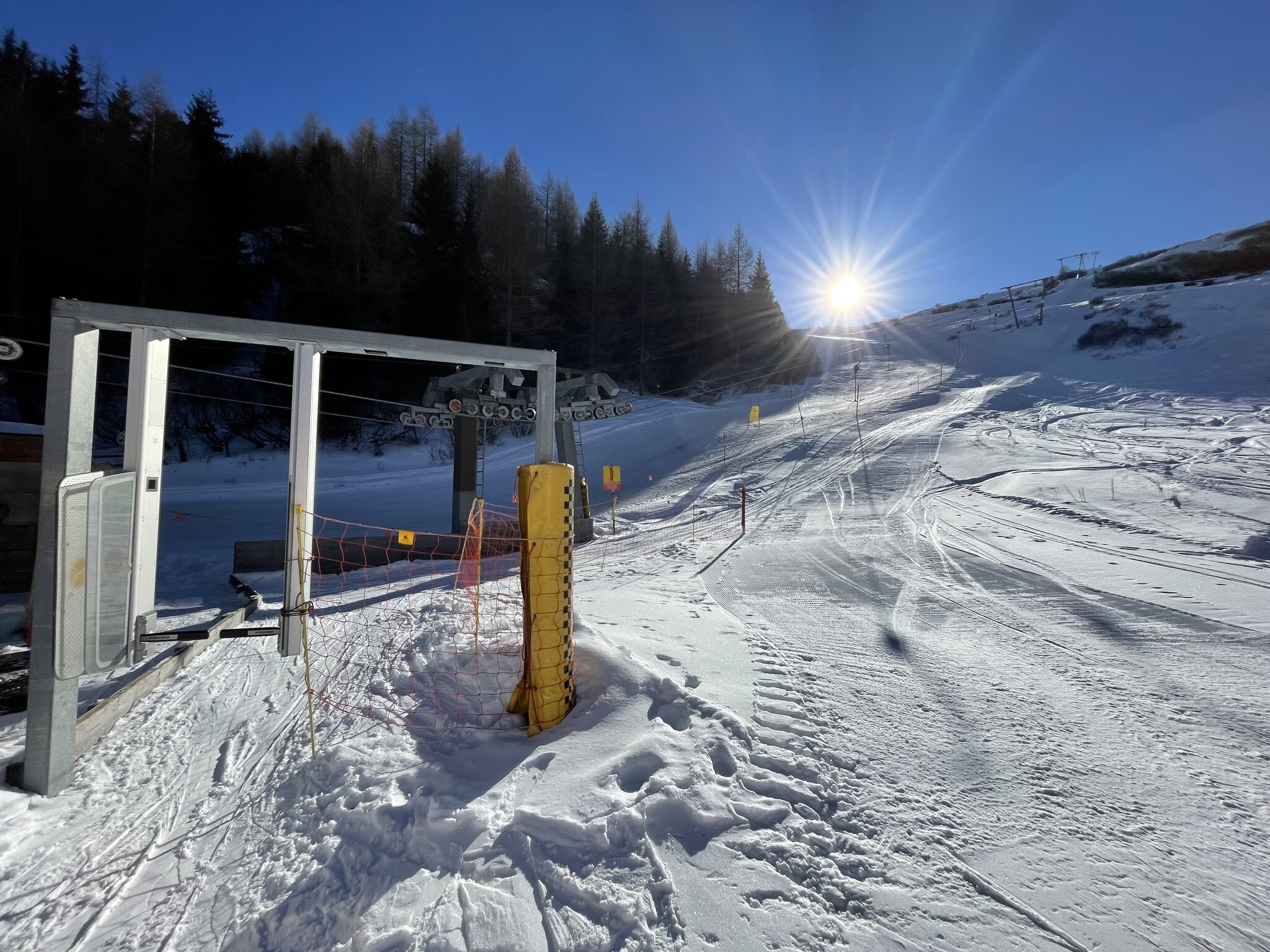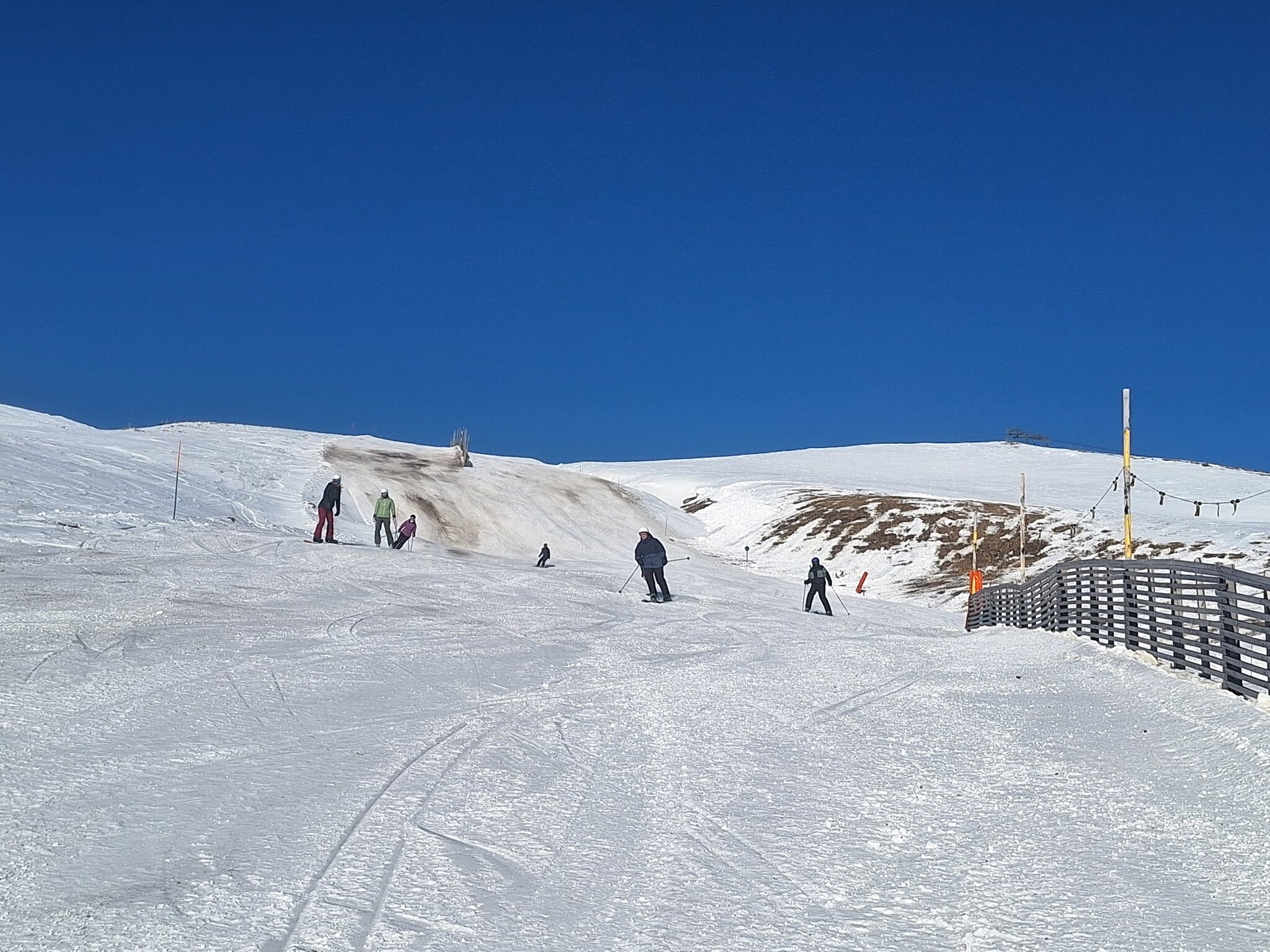 Beim Skilift Tua ging heute frisch auf, gab einige braune Stellen mit Kiesel garniert. Aber es stehen auch Schilder die warnen!