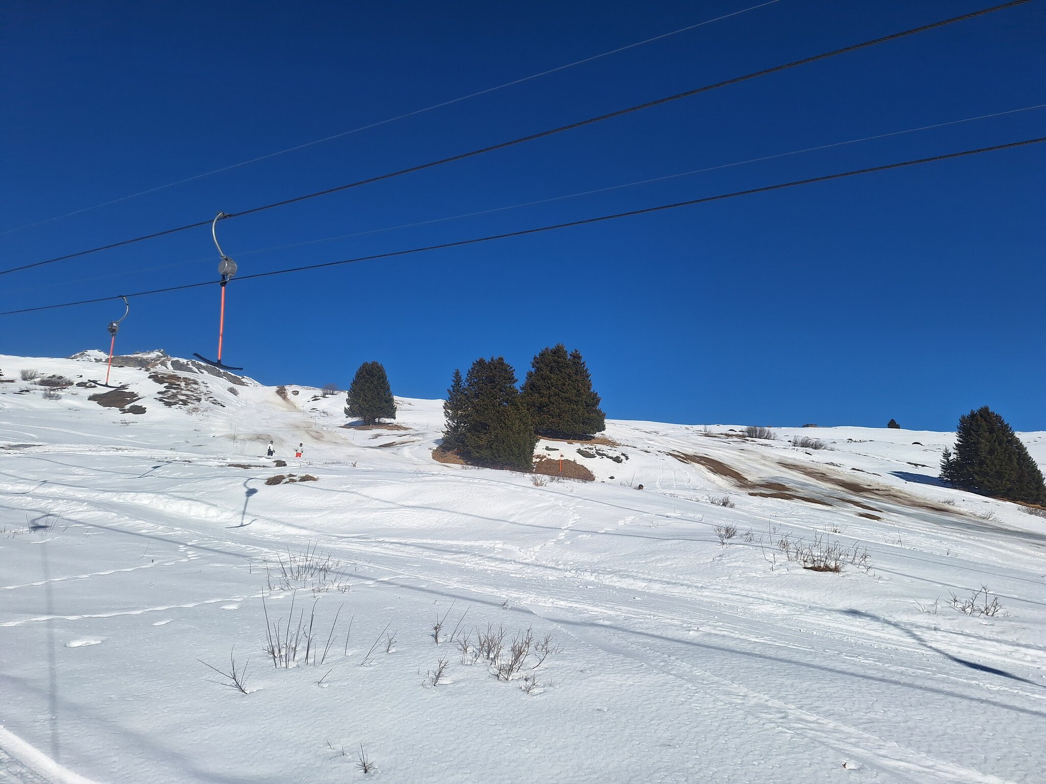 Von der Brücke des Cartas-Lifts bis zur Ebene hat es sehr wenig Schnee.