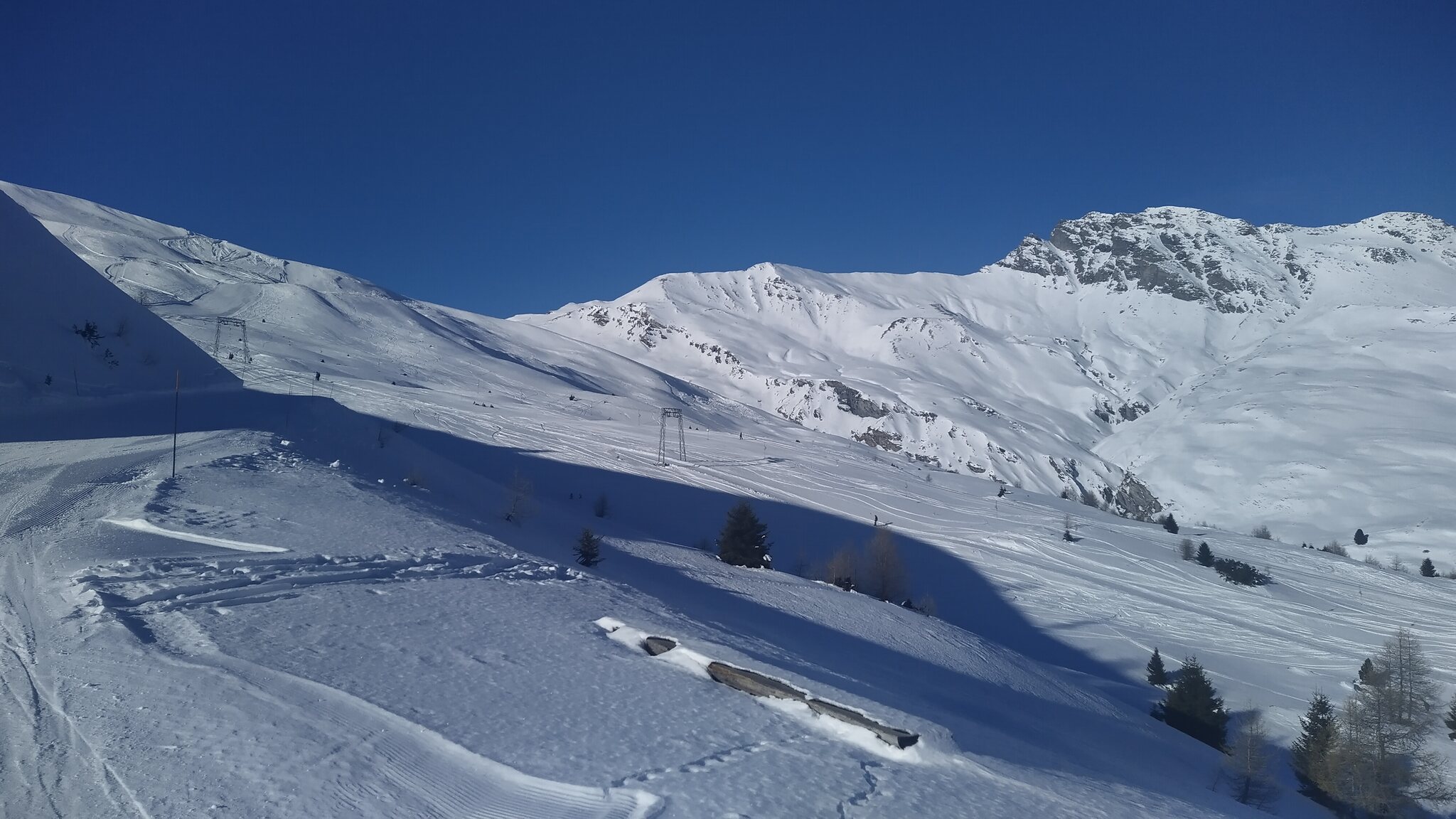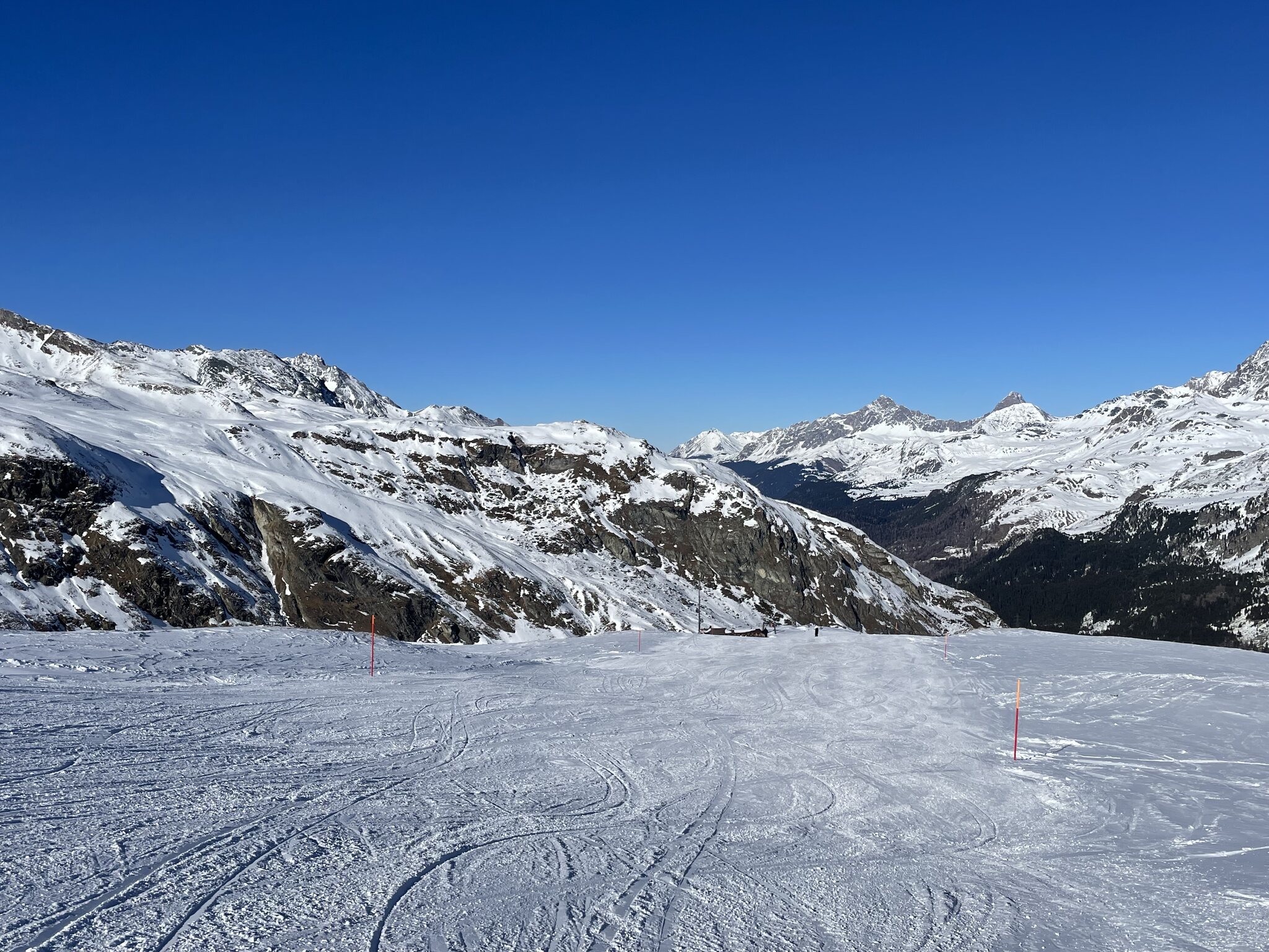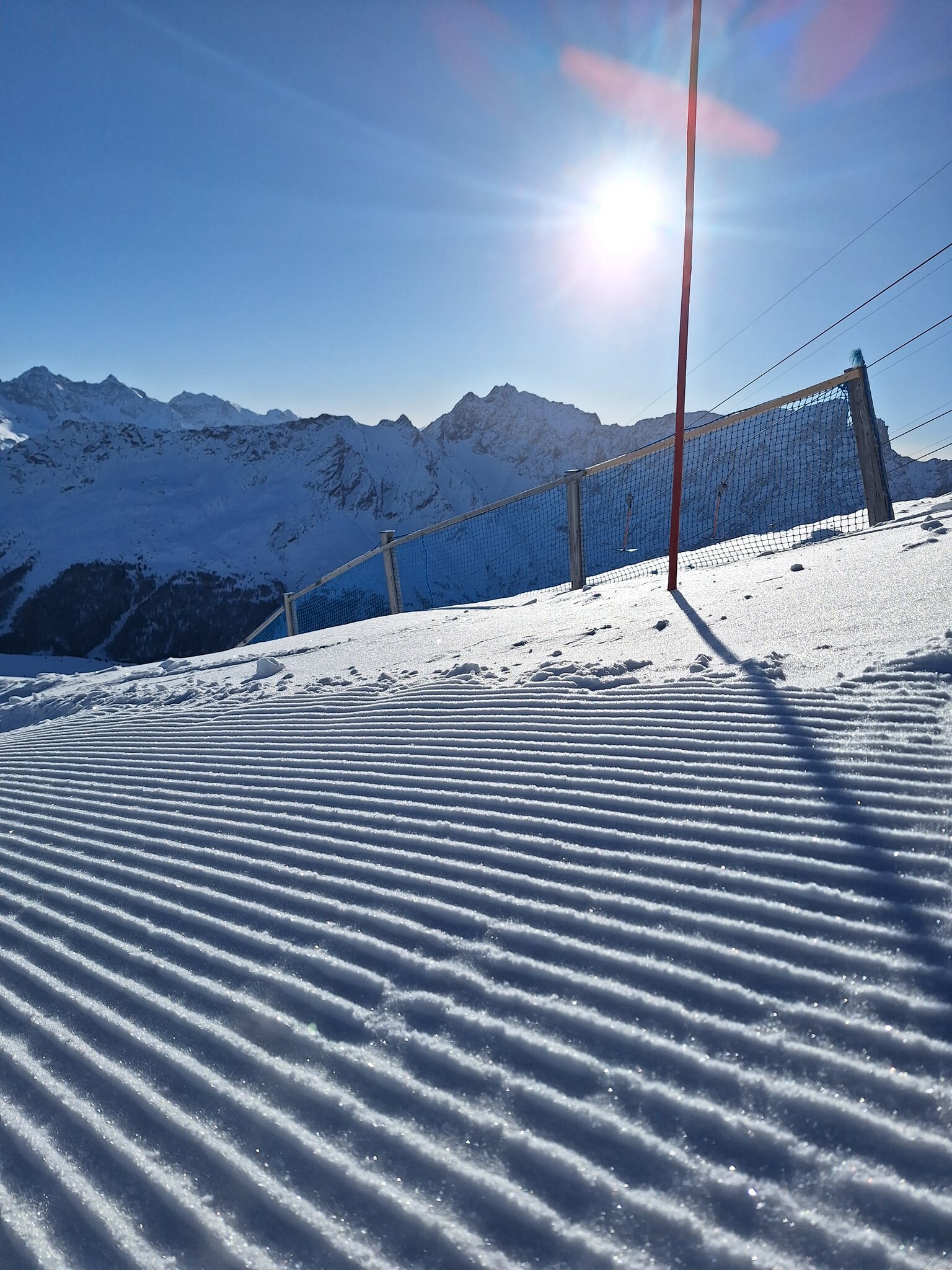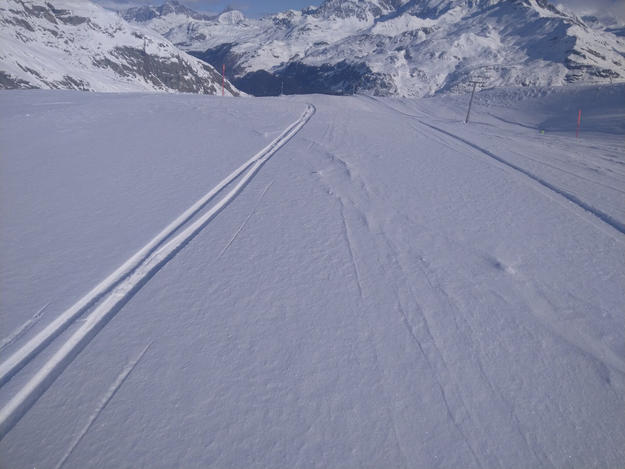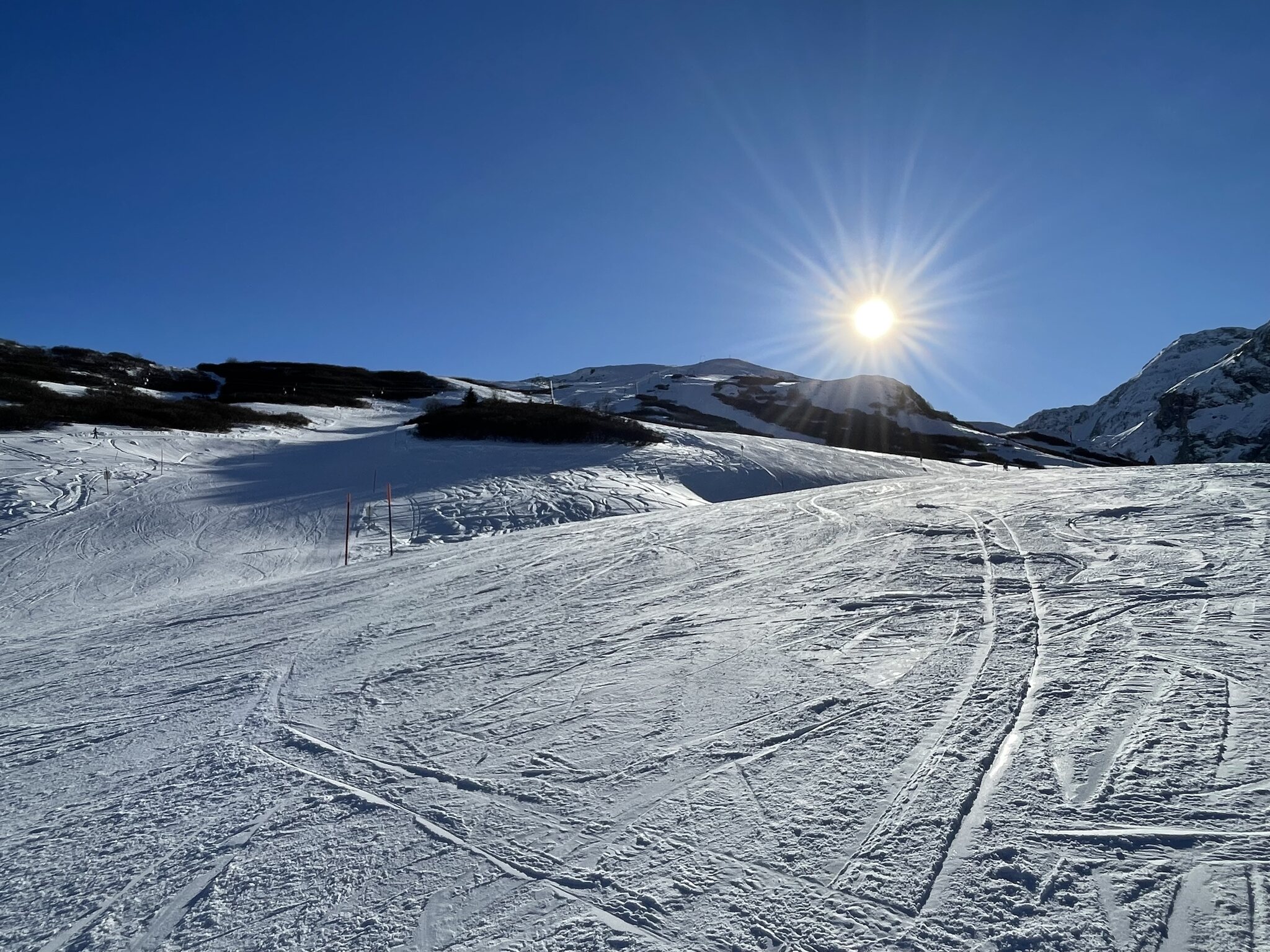 Der Tag war sehr schön und besonders in den zentralen Stunden war der Schnee äußerst angenehm zum fahren. Die Präparierung der Pisten ist äußerst vielfältig und reicht vom Billard der 7er Martegnas bis zum groben Granulat der 10b.