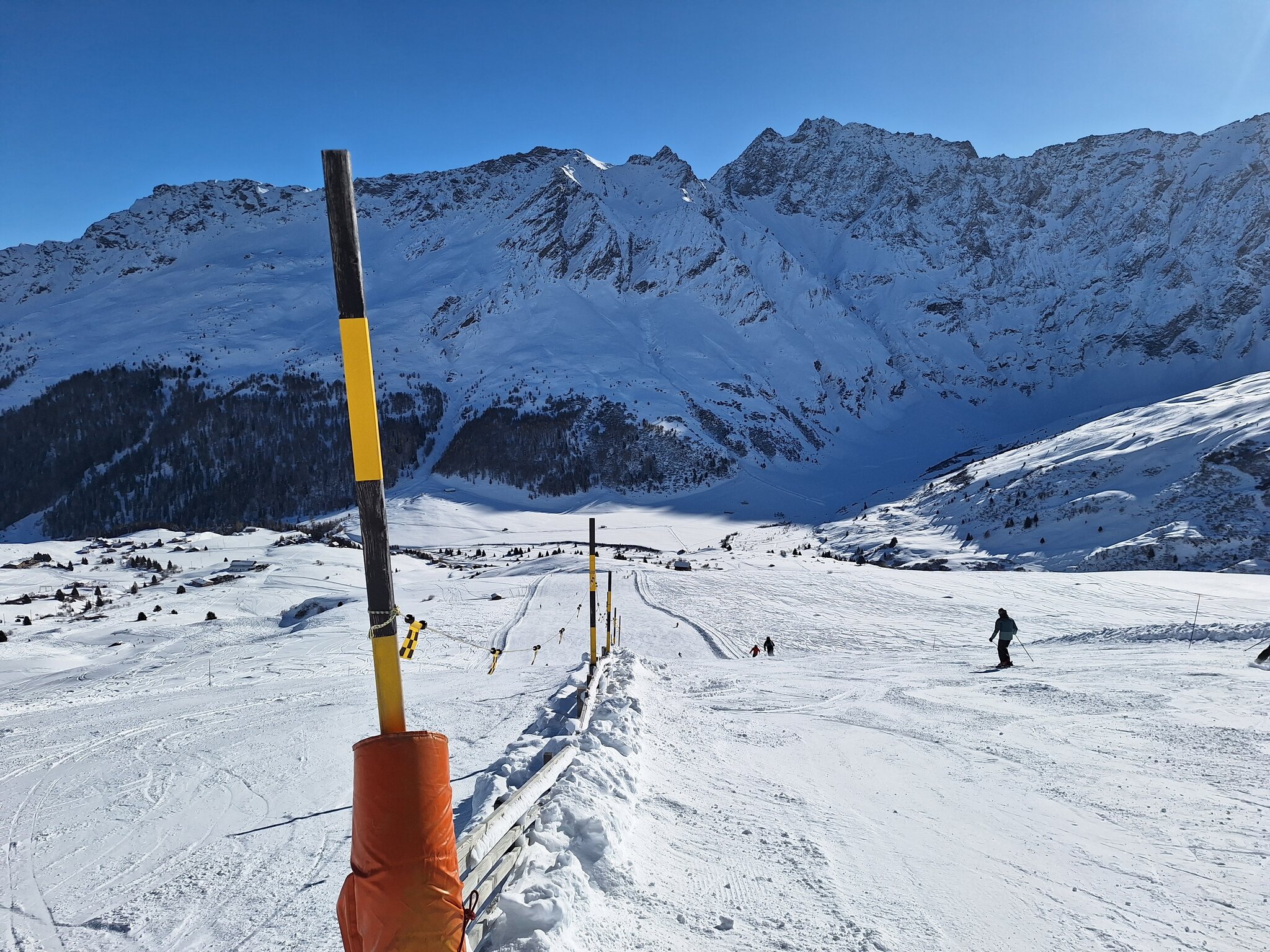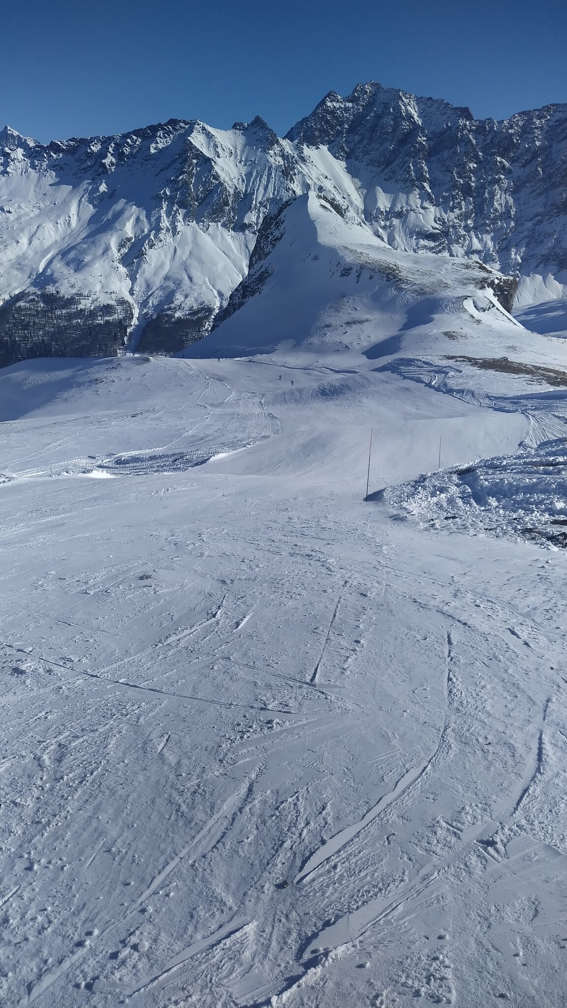 Blaue Piste 17 - Scargneras<br />Da es am letzten Hang keinen Schnee mehr hat, wurde die Piste in die Mulde links verlegt.