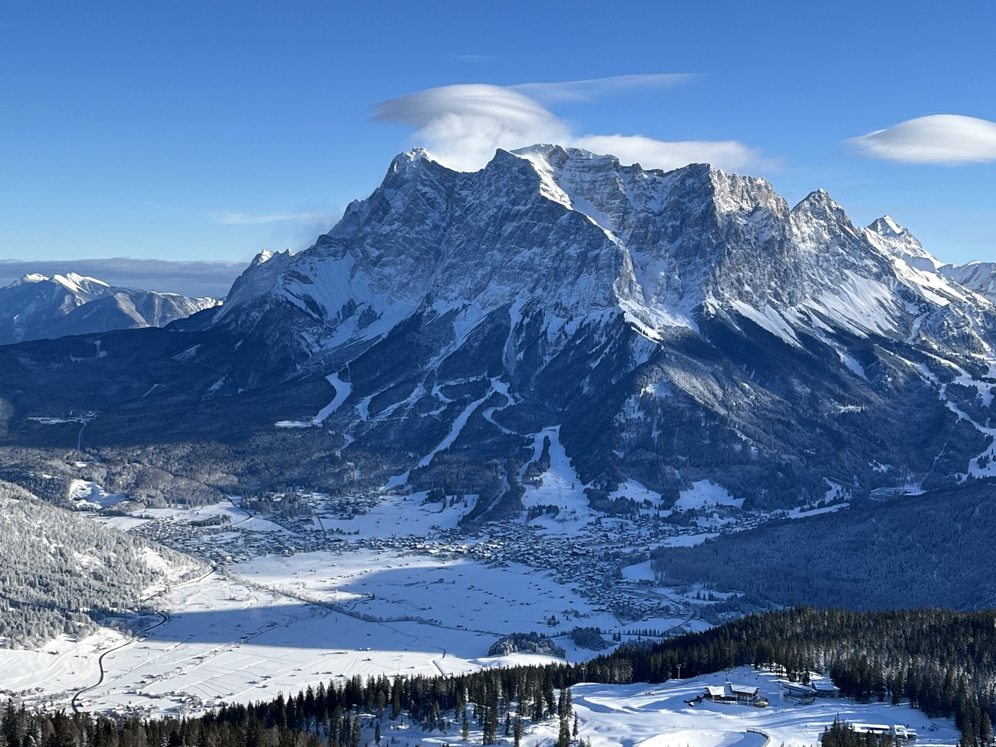 Tolle Föhnlinsen über der Zugspitze, die Cumuli(?) direkt darunter kann ich mir nicht wirklich erklären.