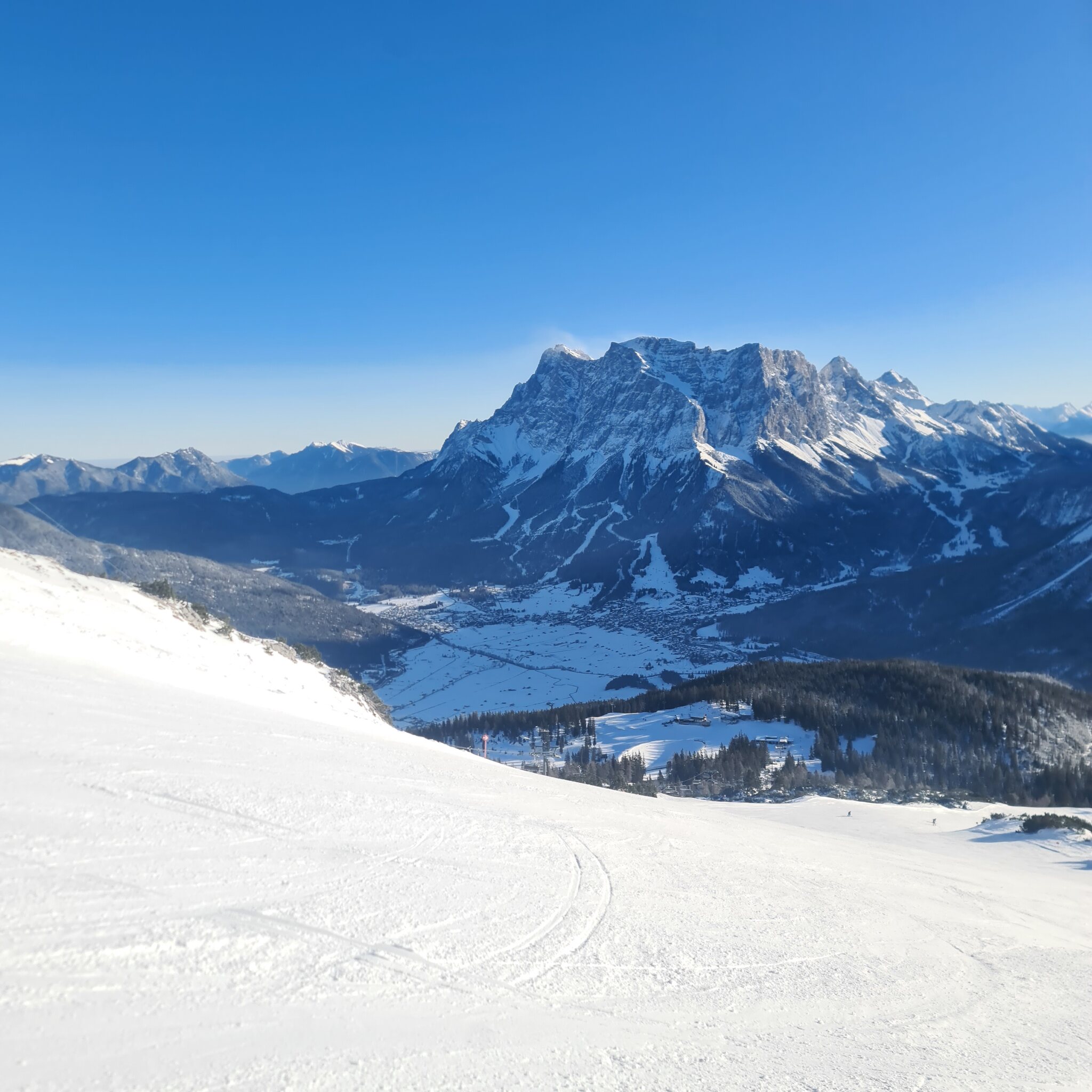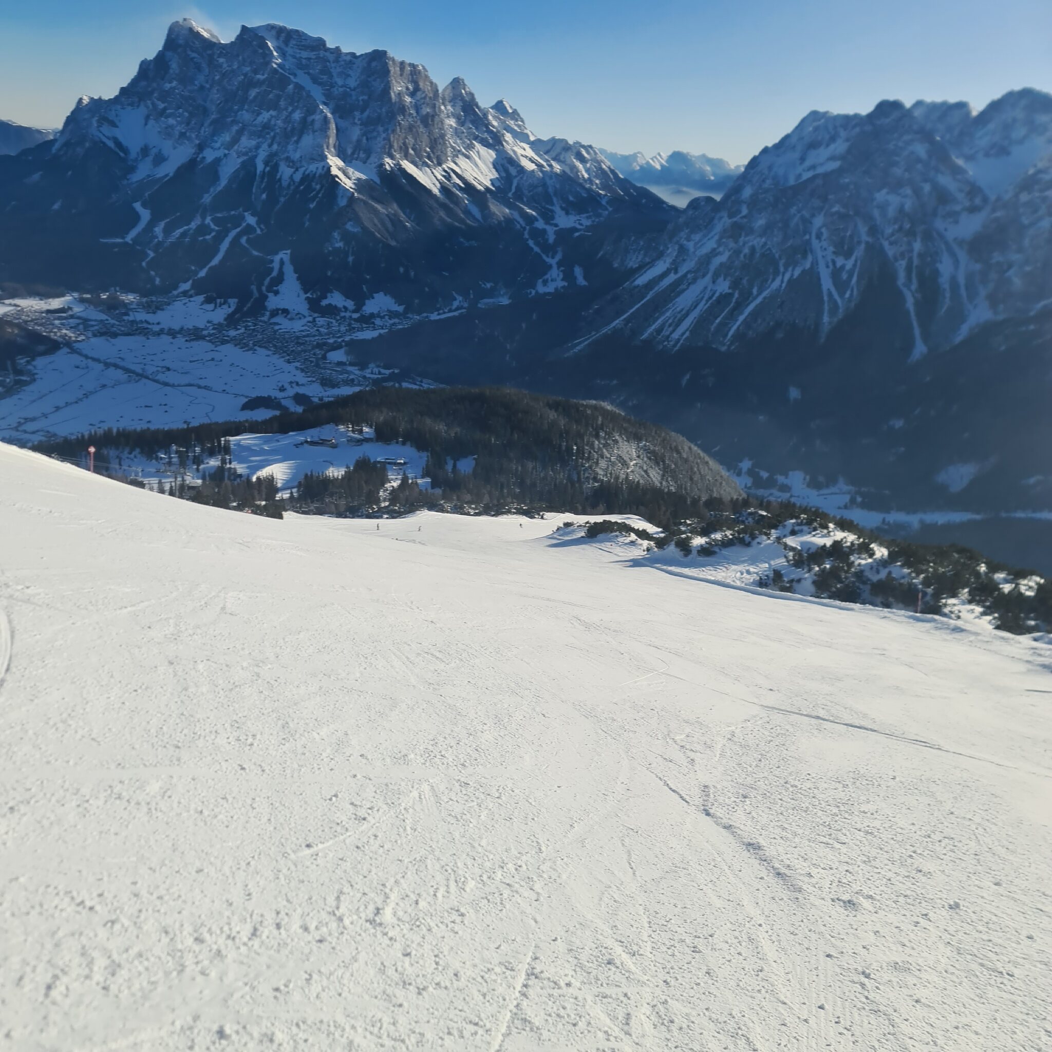 Im Anschluss ging es noch an die Wetterstein-Bahnen und hier war es genial. Alle Pisten in gutem Zustand mit griffig hartem Kunstschnee und dadurch perfekt zum Carven. Wie so oft war auch nichts los! Einzig schade ist, dass der Gamskar diese Saison durch die Mure ja nicht läuft.