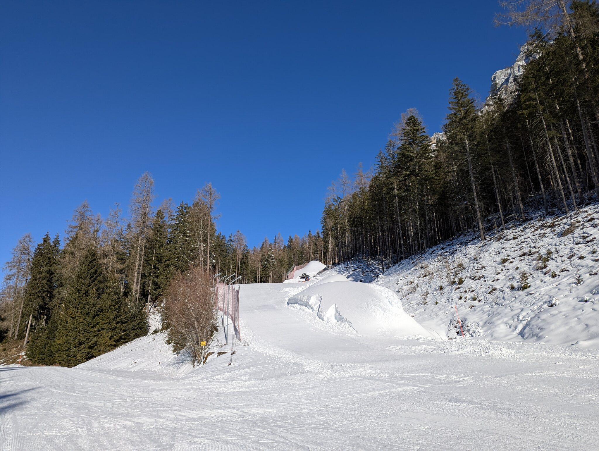 Aus dem letzten Winter haben sie gelernt und viel nun noch auf Depot beschneit. Racing S ist noch zu, hat aber riesige Haufen die heute teils verschoben wurden.