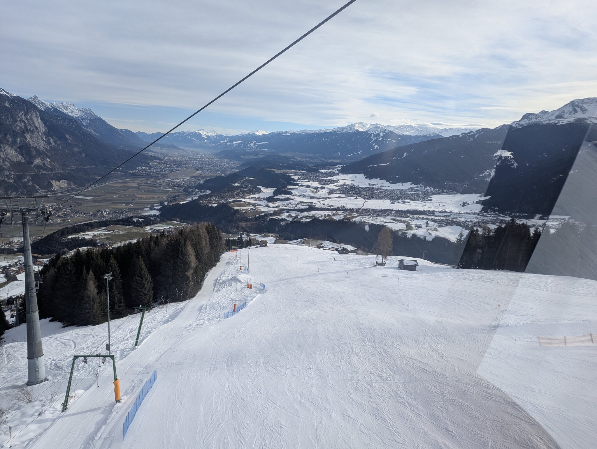 Auch damals oben schon wenig präperiert als früher üblich, und statt der Ruhe im SL jetzt die üblichen 6/8er Gefäße die man sich dann meist mit Mitfahrern teilen muss (an dem Tag zumindest nette), und zudem ist der neue Lift auch noch kürzer. Das letzte Stück war zwar recht flach, aber eigentlich immer nett um die Geschwindigkeit aus dem steileren Hang schön "auszucarven". Bei mir ist der Rangger Köpfl auf der Liste der netten kleinen Skigebiete rund um Innsbruck damit weit nach unten gerutscht. Die breite Masse sieht das aber eventuell nicht so, bei meinem Besucht war für einen Wochentag außerhalb der Ferien erstaunlich viel Betrieb.