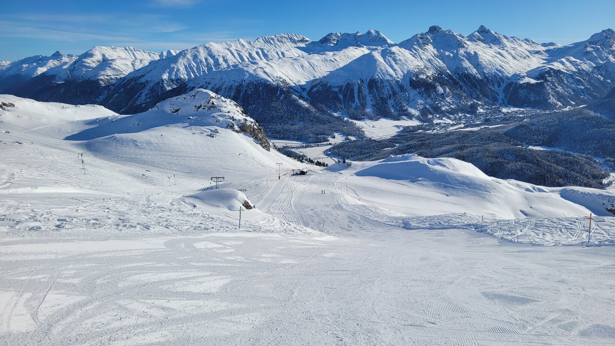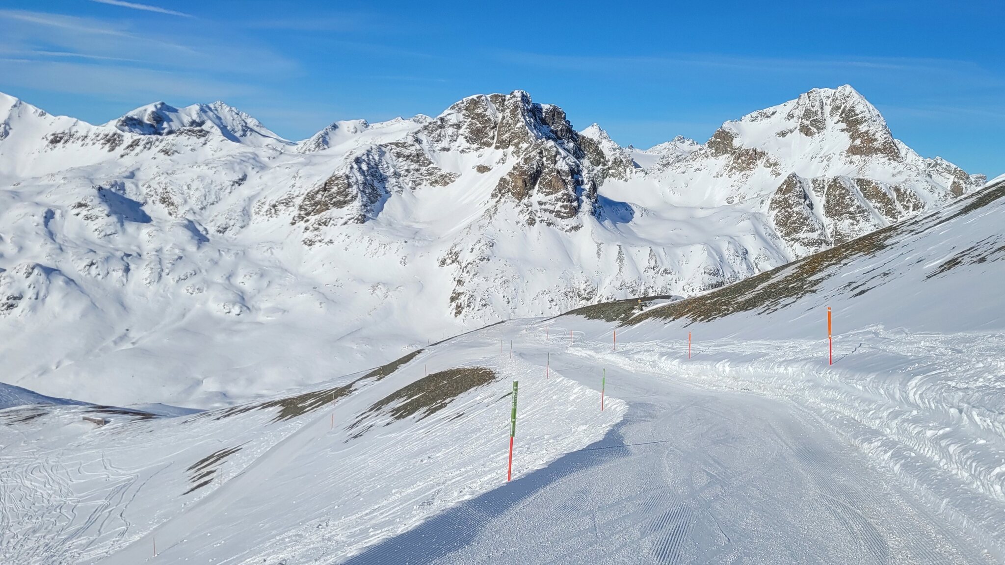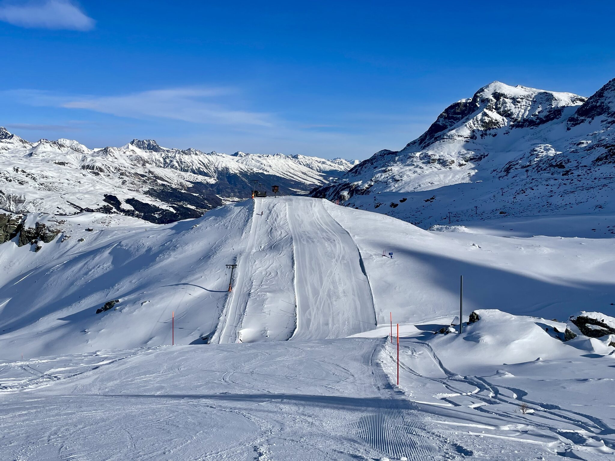 Auf Diavolezza ist nun die Verbindungspiste offen. Und am Corvatsch ist nun der Murtel Skilift offen, bislang aber nur mit der roten Piste.