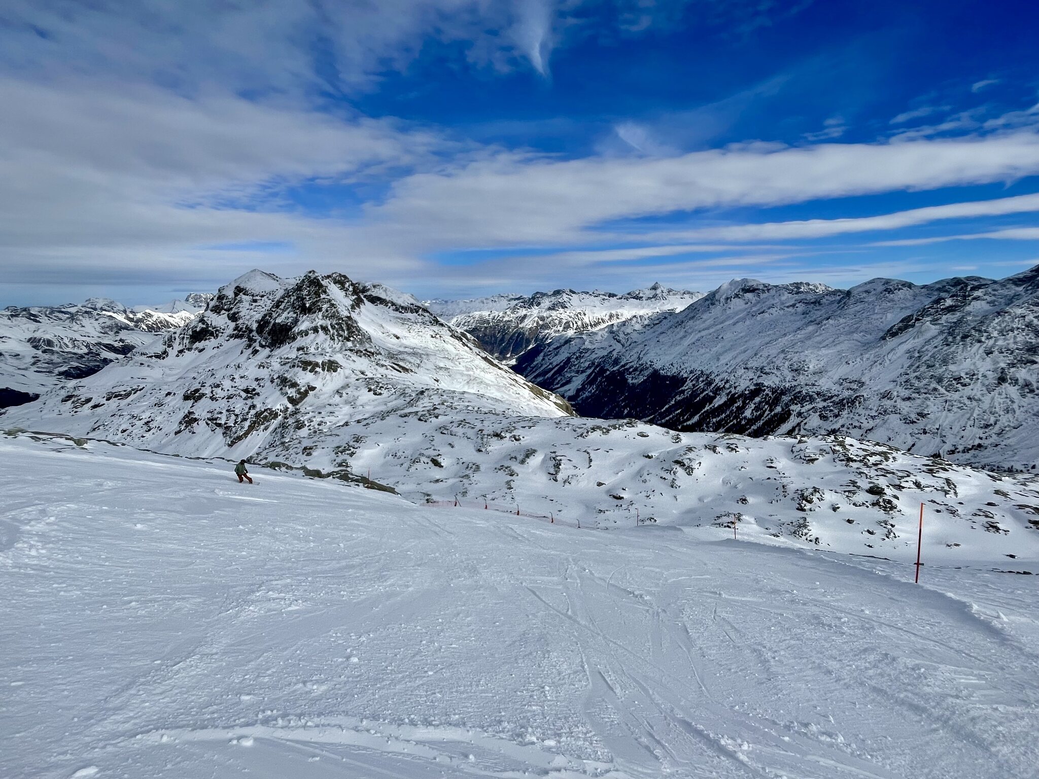 Die Pisten ohne Makel, höchstens am späten Nachmittag mal ein mini Fleckchen braun. Neben den Pisten so gut wie keinen Schnee, alles verblasen. Verstehe allerdings nicht weshalb die Kanonen bereits demontiert sind. So dick sahen die Pisten nicht aus. Piste 9 war noch geschlossen.