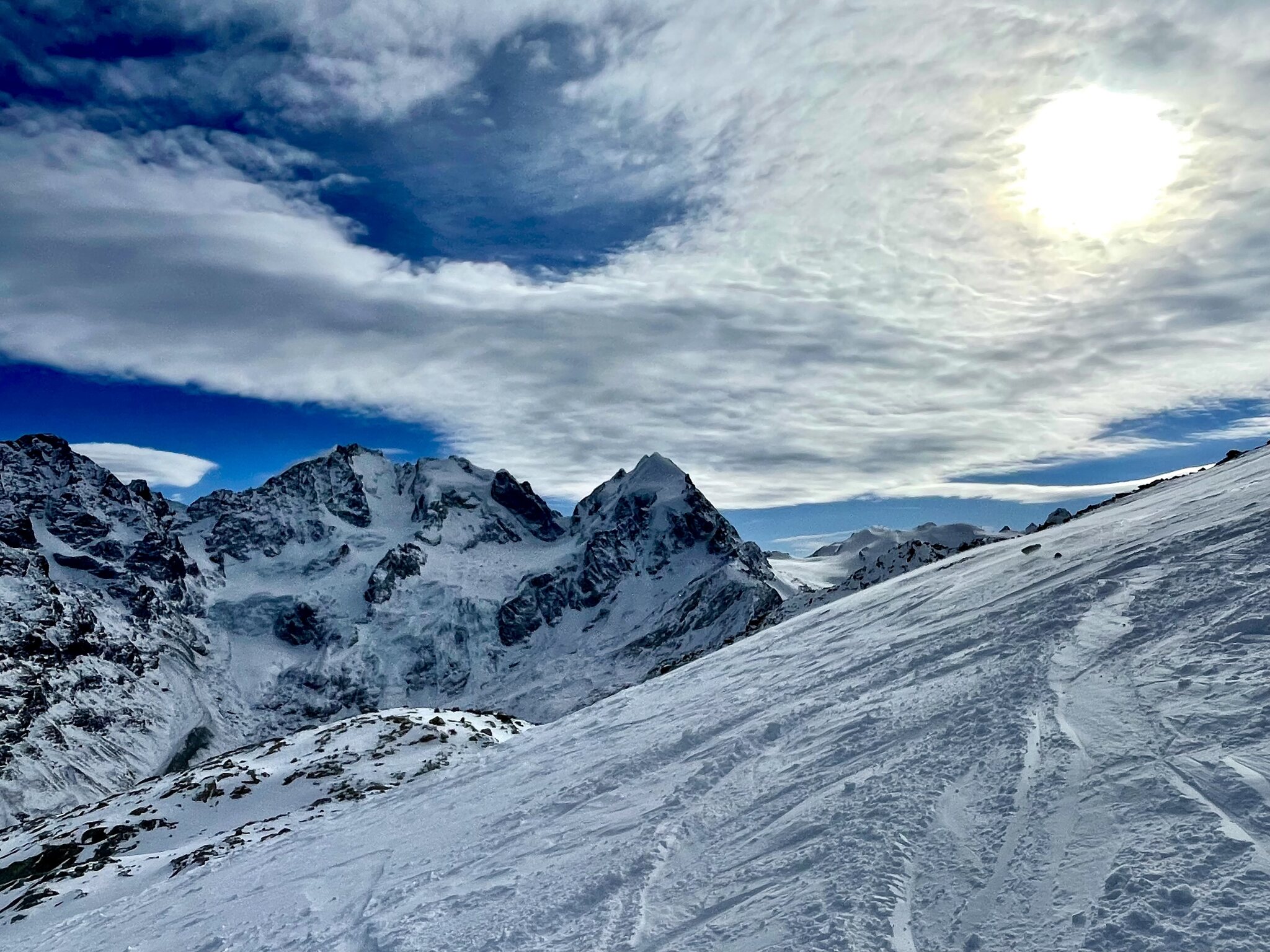 Mein Erstbesuch im Gebiet heute, ausführlicher Bericht folgt dann wie gewohnt sobald Zeit vorhanden. Kurz zu den Schneebedingungen und Verhältnissen. War wieder ein Top-Tag heute. Zuoz gestern allerdings besser. Einziger „Kritikpunkt“ heute war die etwas weicheren Piste und bei der KSB auf der Diavolezza im steilen aufgehaufter Schnee. Somit 9/10. Aber das ist meckern auf hohem Niveau. Denn Andrang war fast keiner, Kaiserwetter und frische 5cm Pulver über Nacht. Verbindung zwischen Lagalb und Diavolezza immer noch zu. Nur je eine Piste an den Luftseilbahnen offen.