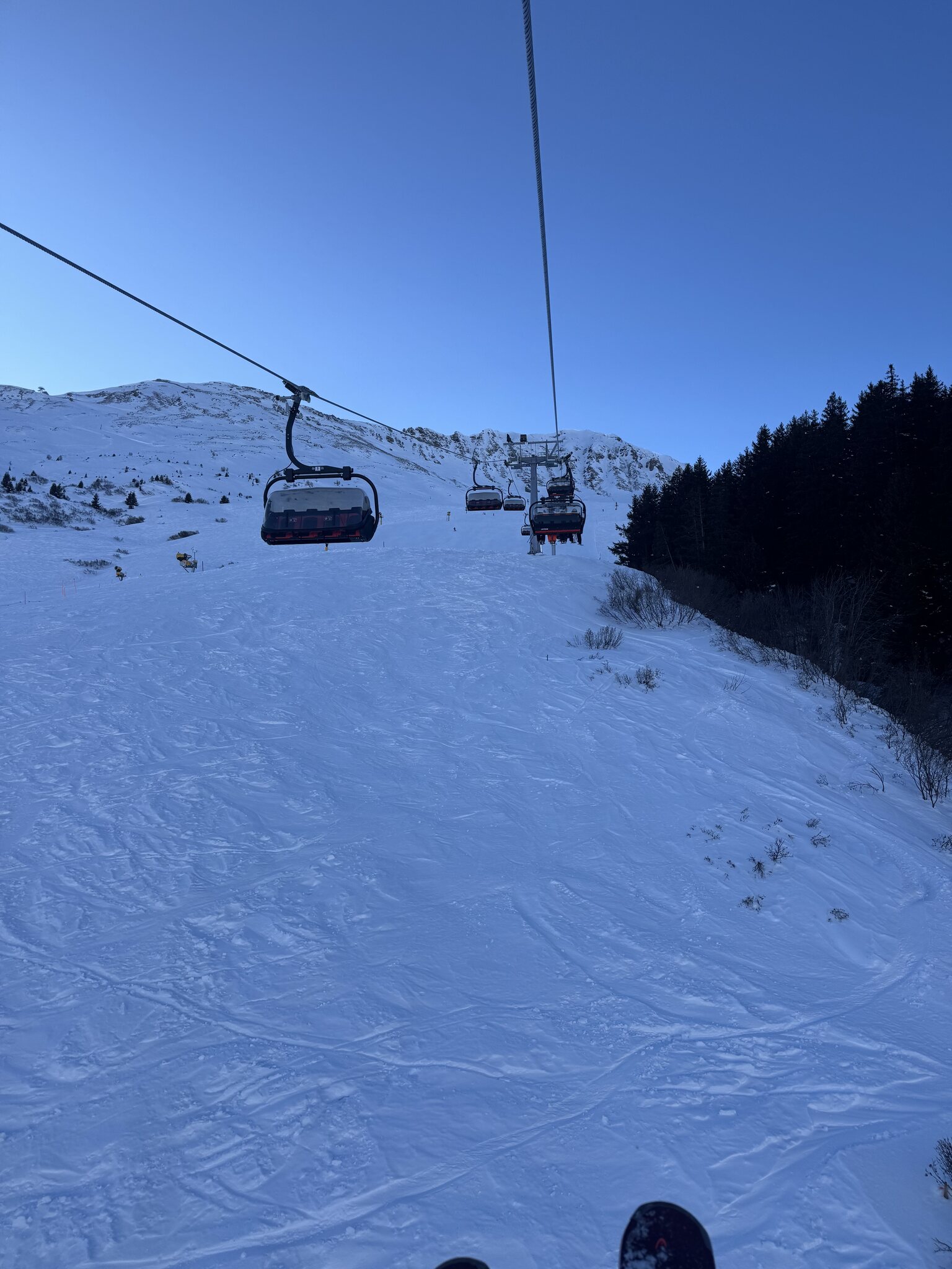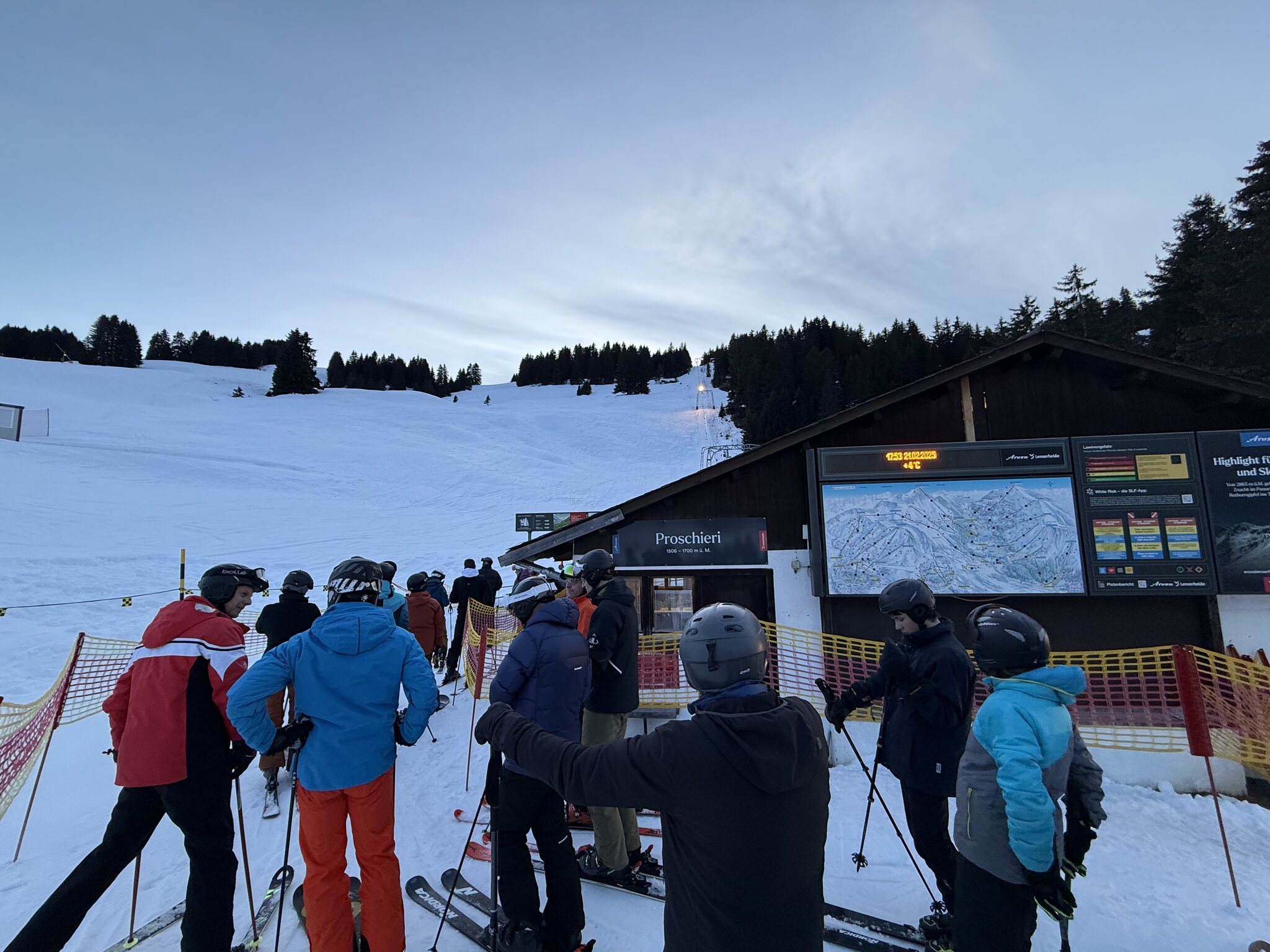 Yep, schrieb ich in meinem Update dann auch. Am Schluss war ich fast alleine. Um 19.30 aber 5-6min am Sessel. Und zu volle Pisten.