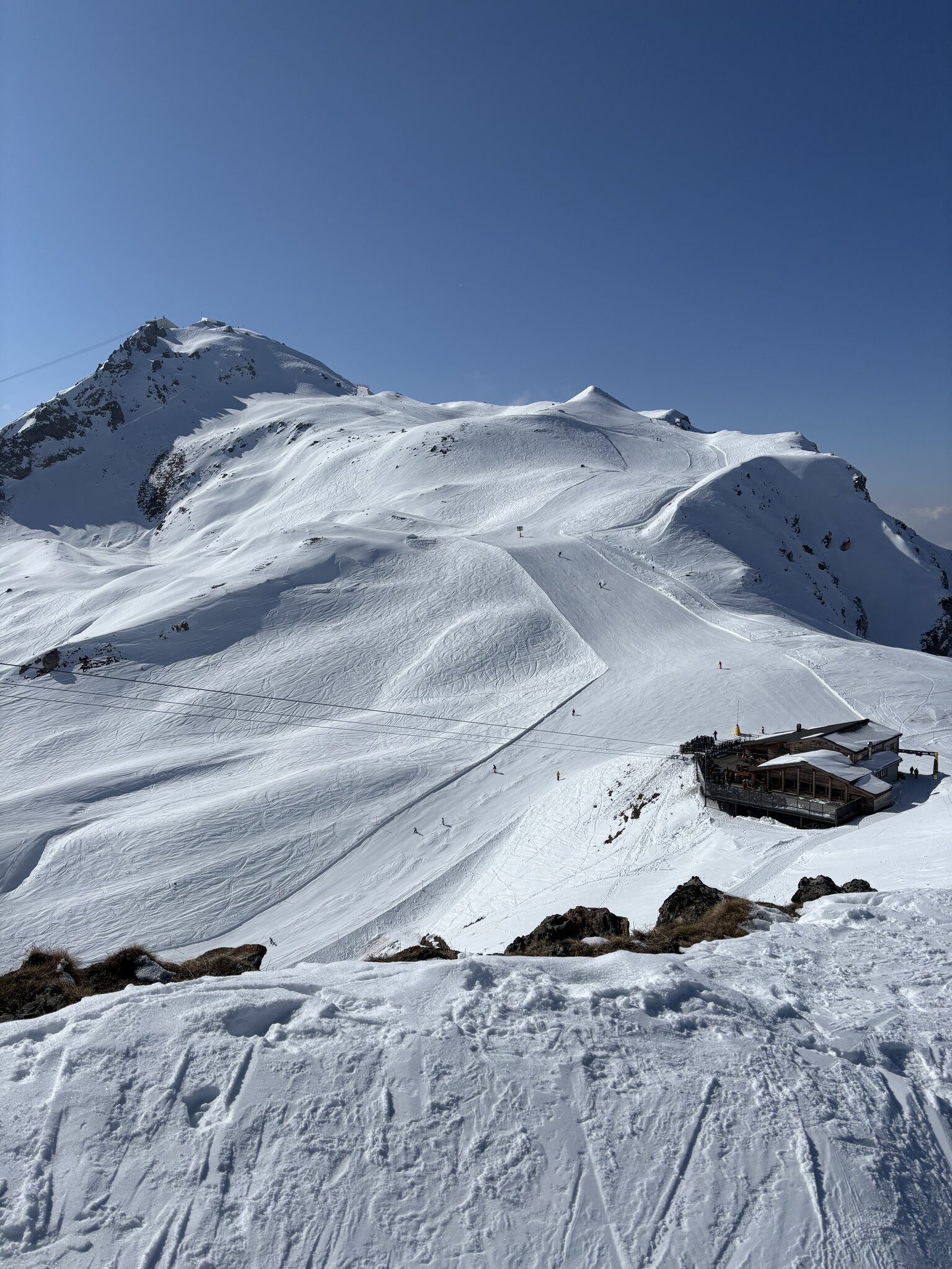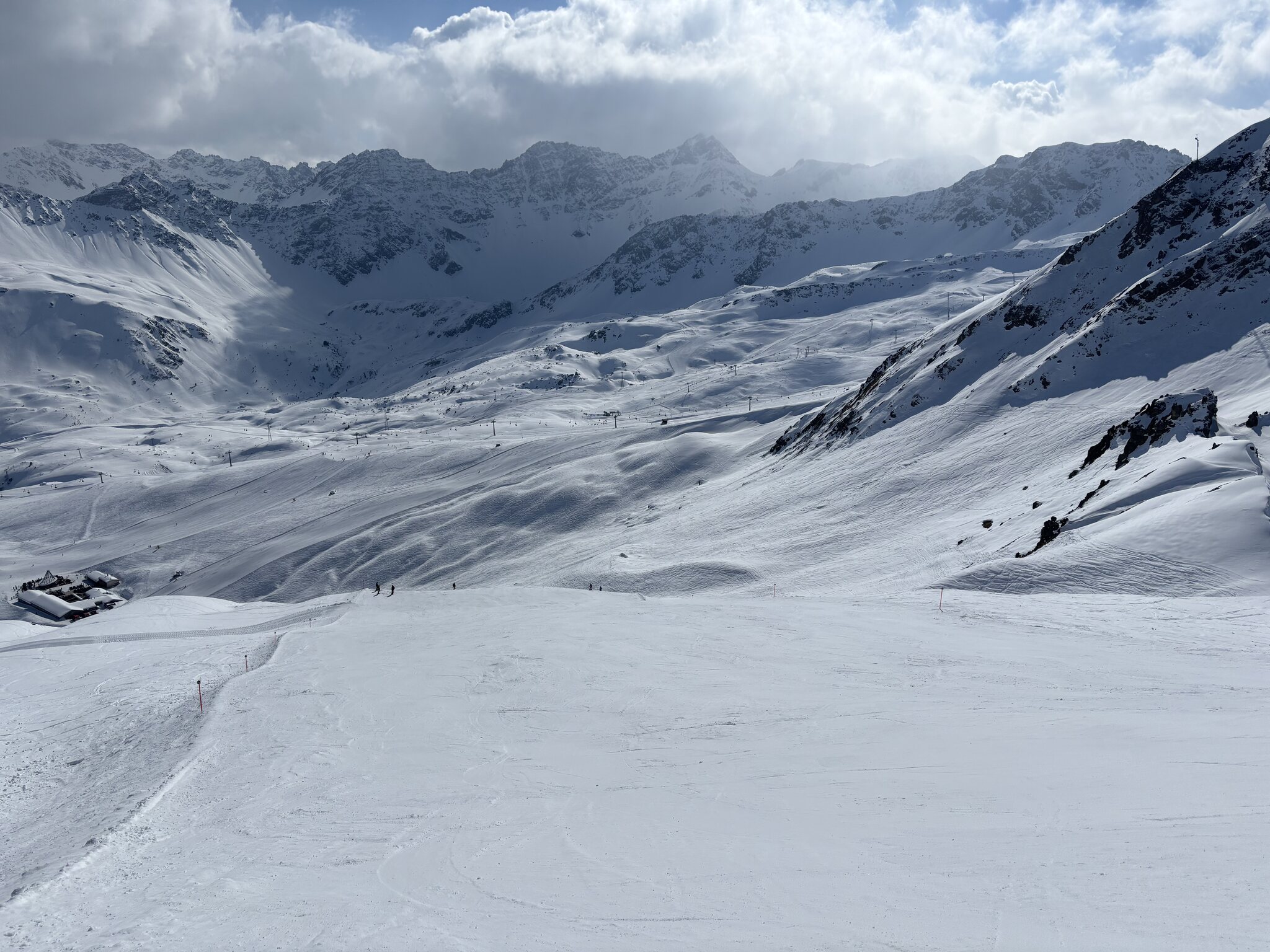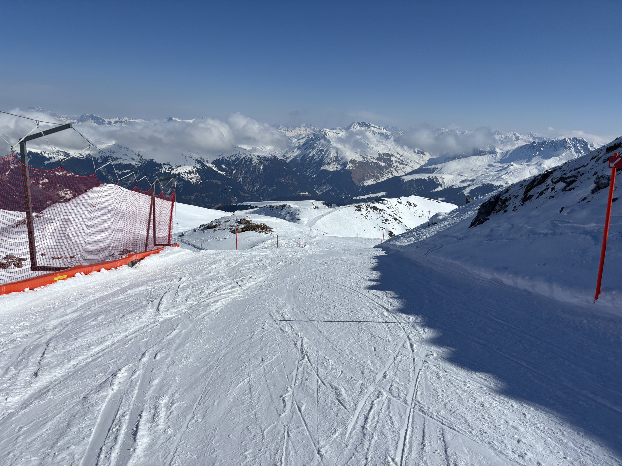 Nach dem Wechsel auf die Ost-Seite aufgrund der vielen Leute auf der West-Seite. Die Pisten sind mittlerweile in der Sonne aber oftmals ziemlich knollig und unruhig.