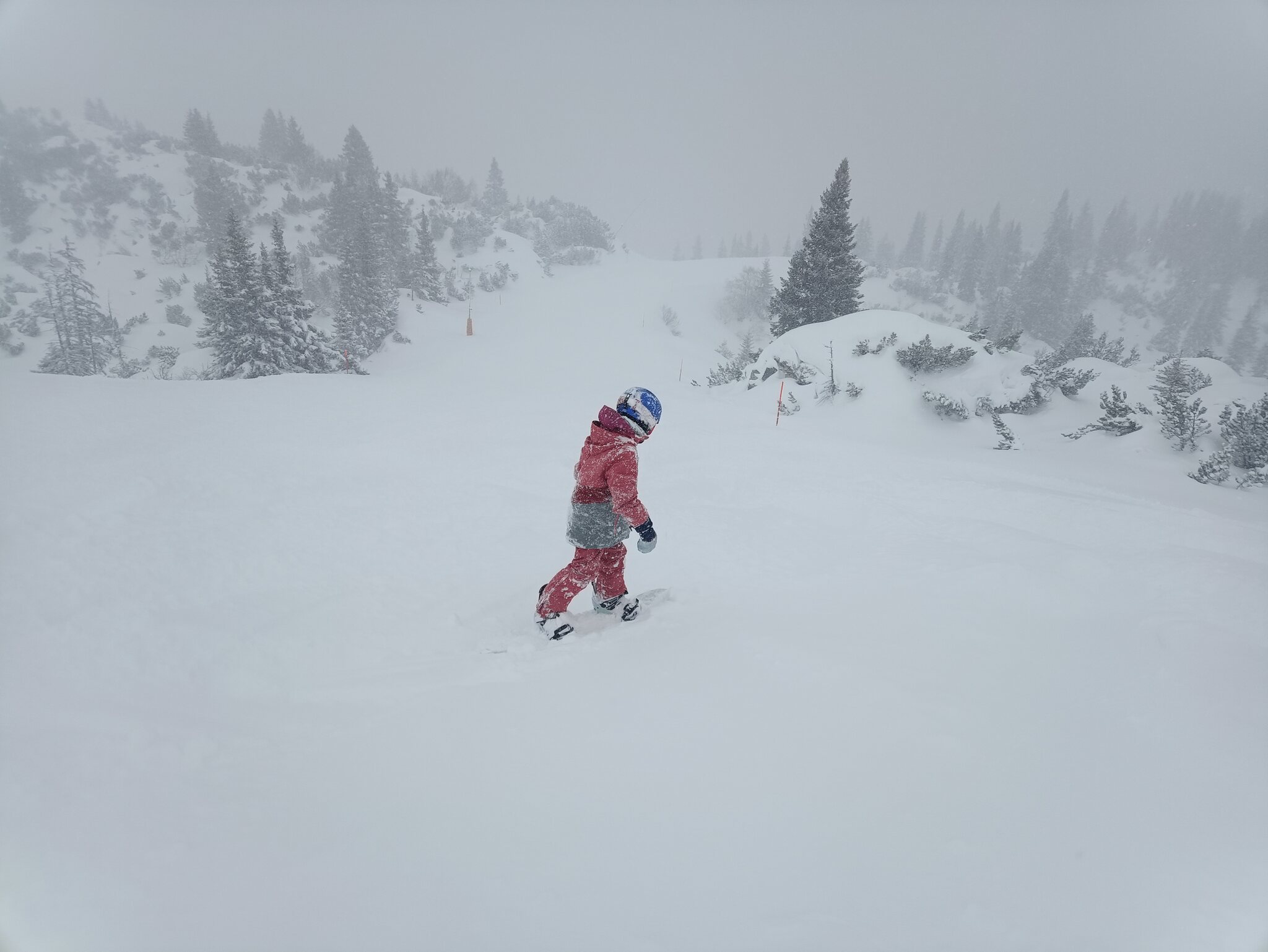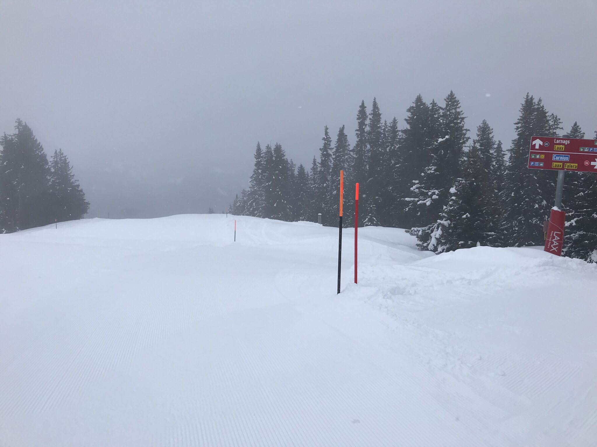 Fette Ladung Neuschnee, oben Sturm, Segnes Geheimtipp, komplett leer, während auf CSG alle Skischulen sind