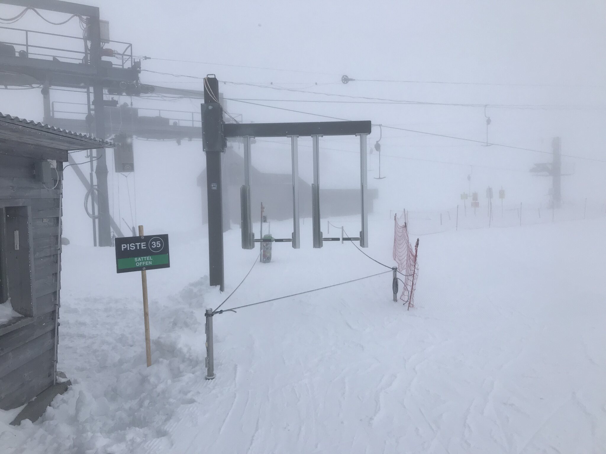 Bin also rüber nach La Siala wo die Sicht aber inzwschischen total zugezogen hat. Man konnte nur ein paar Meter weit schauen. In der Bergstation von La Siala stand dann das Schild "Sattelpiste geschlossen".