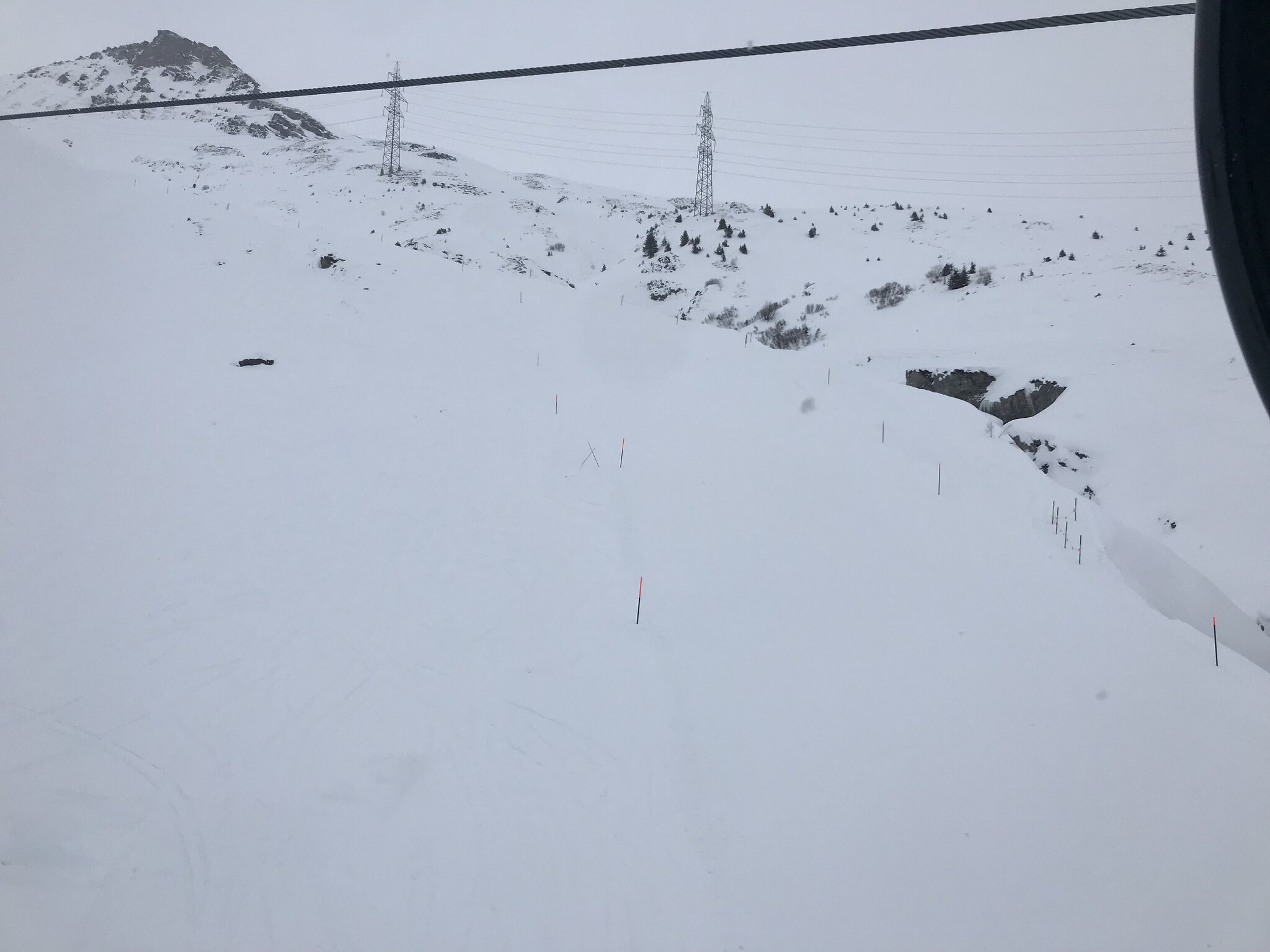 Lavadinas hat heute erst gegen 10 Uhr geöffnet wegen verzögerter Betriebsaufnahme. Ich gehe stark davon aus, dass dieser Herr die gesperrte Piste am Morgen ignoriert hat oder durch den Tiefschnee dort runter gefahren ist.