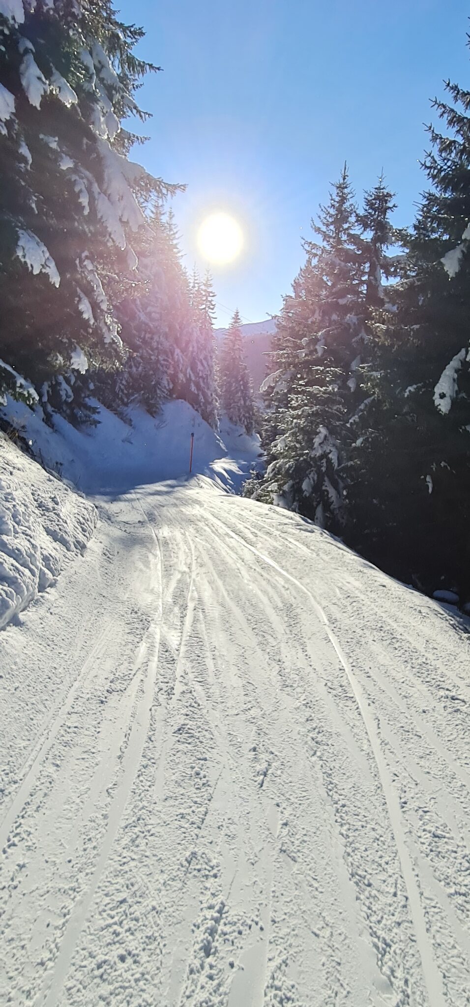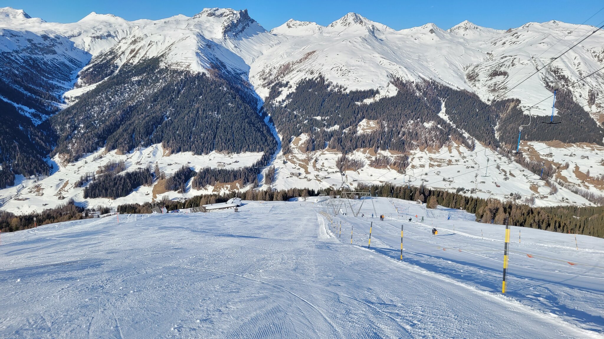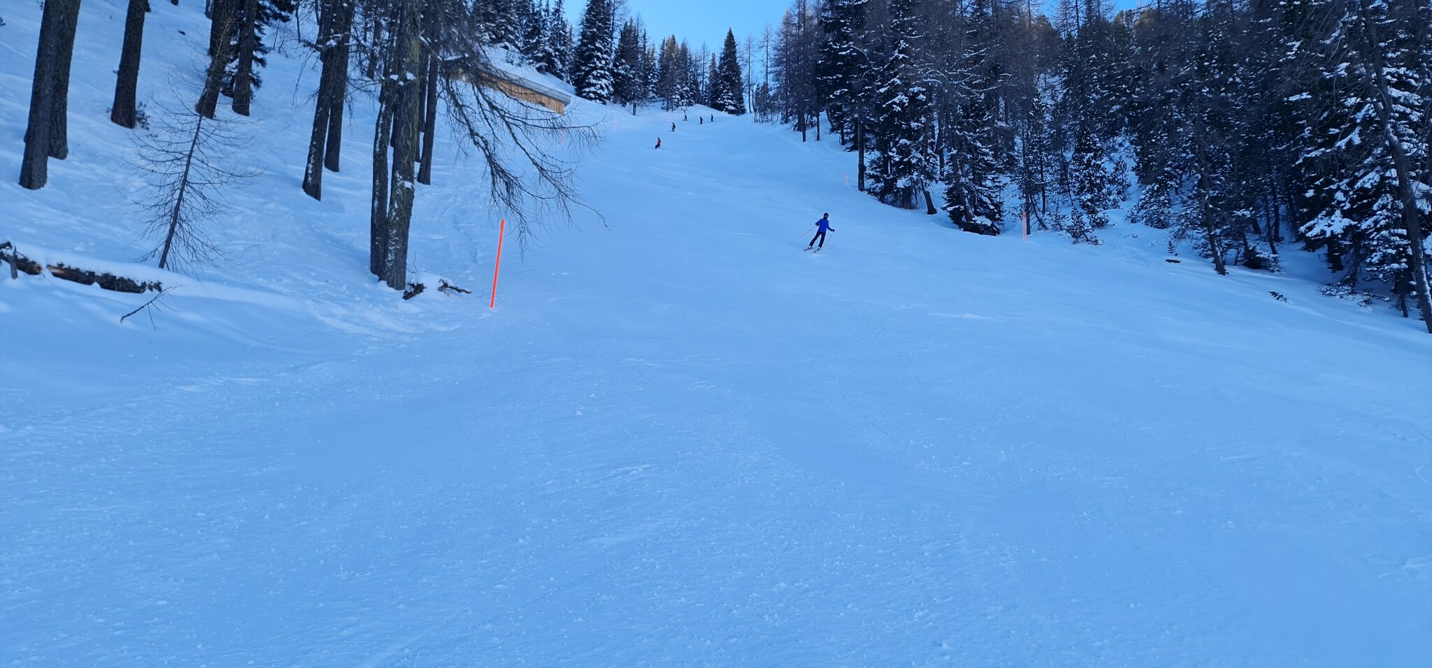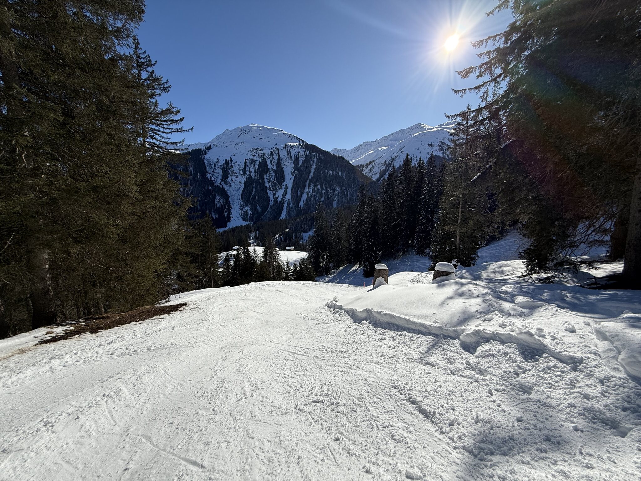 Die Talabfahrt-Variante Piste 2 ist auch gut, und mittlerweile ist es sehr sonnig: