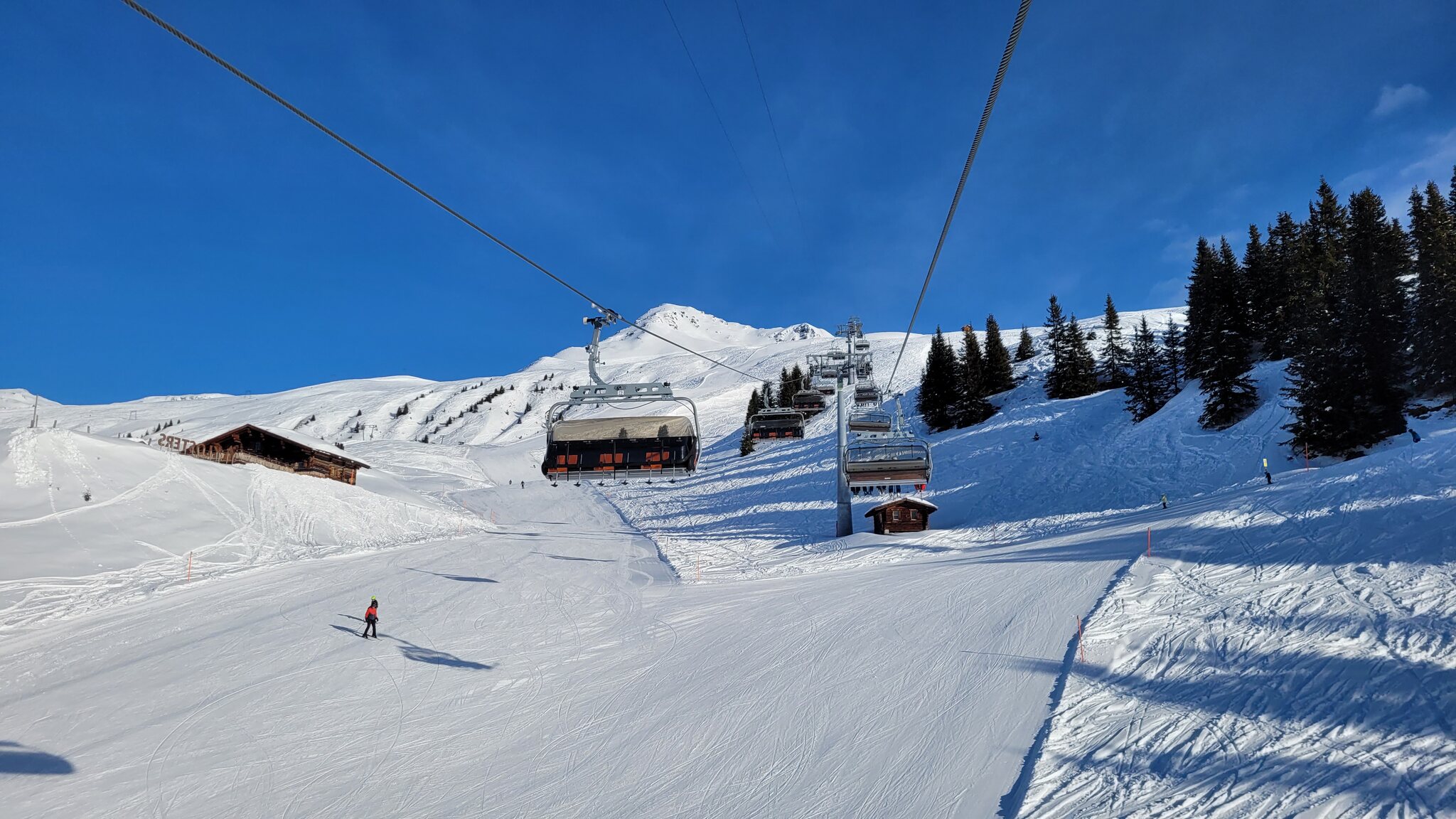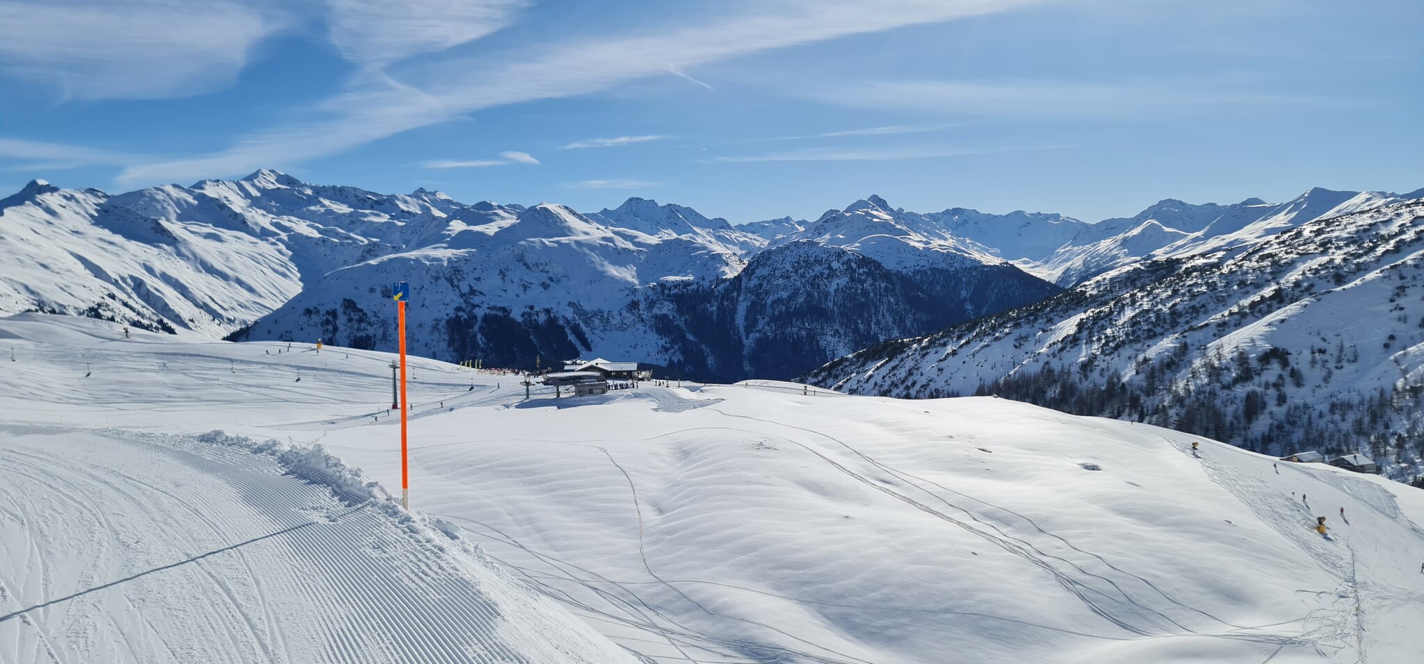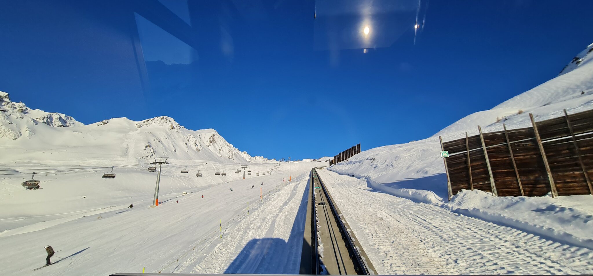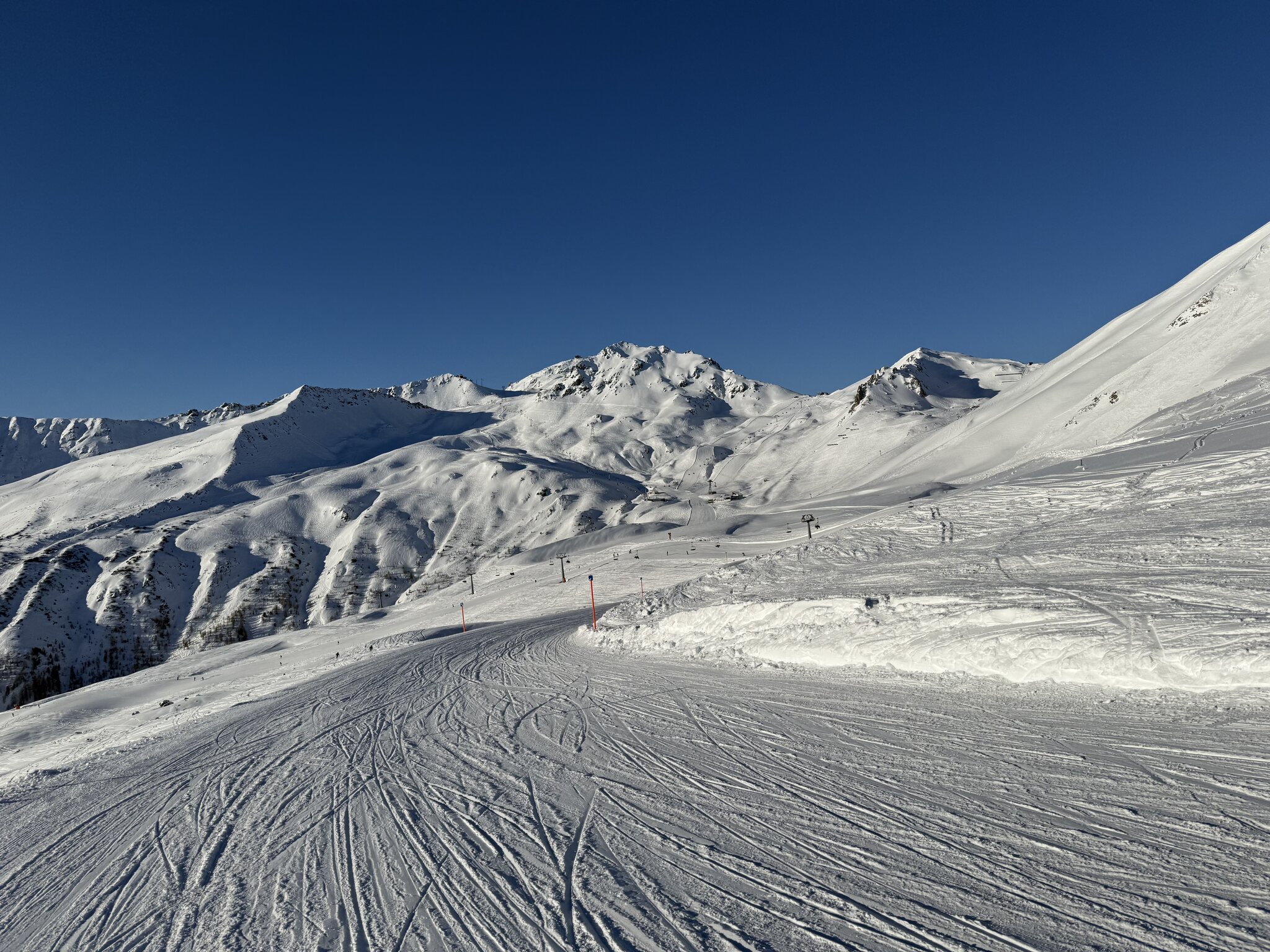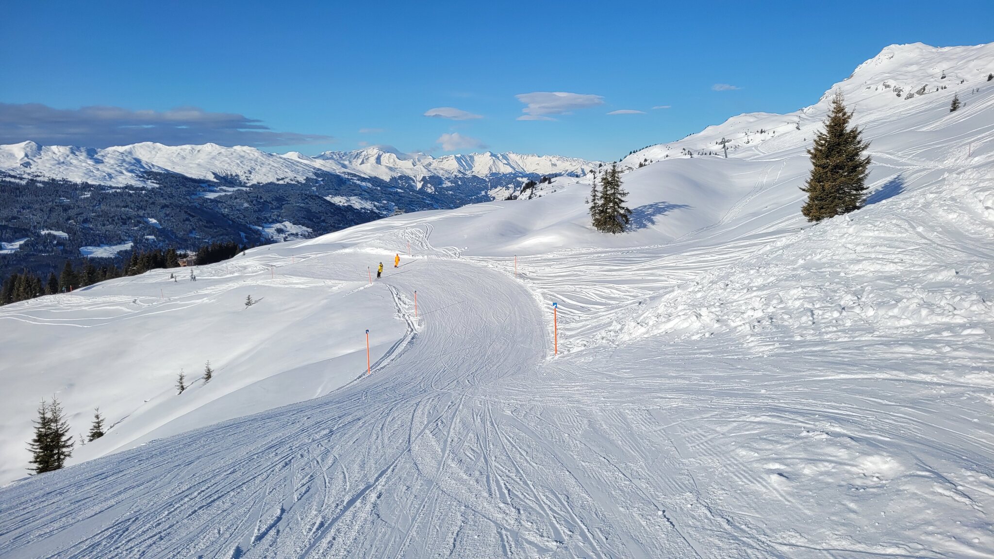 Die Talabfahrt-Variante Piste 2 ist auch gut, und mittlerweile ist es sehr sonnig: