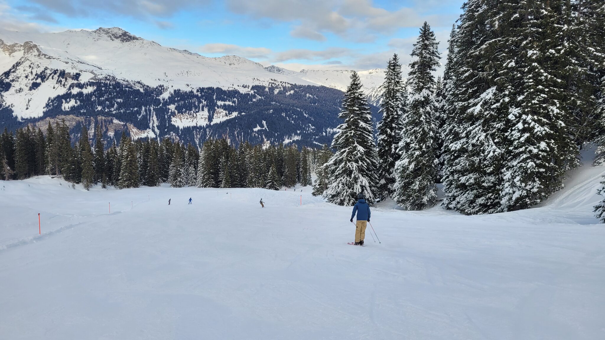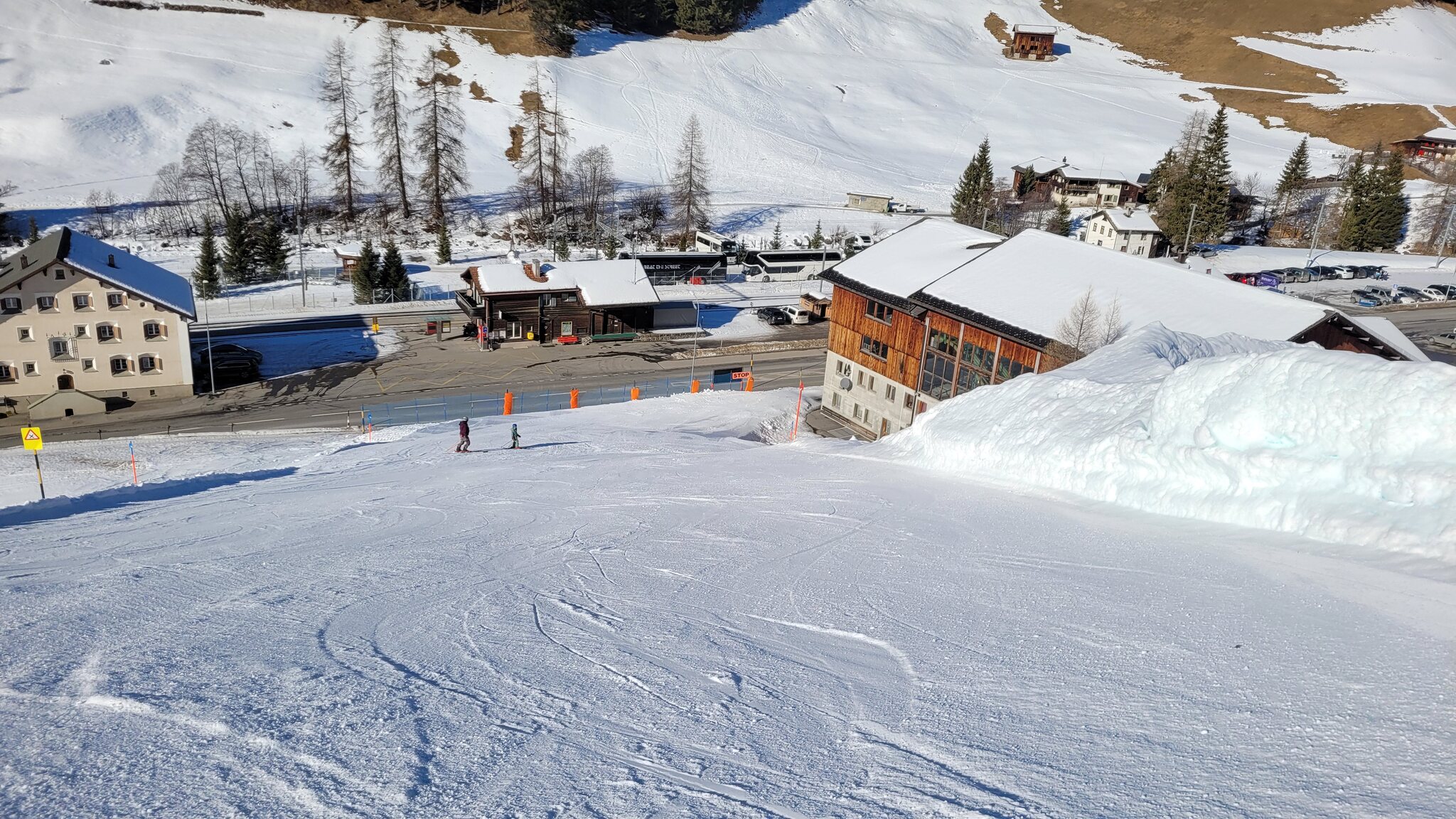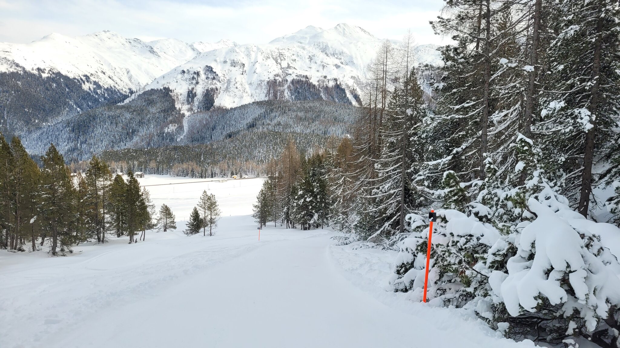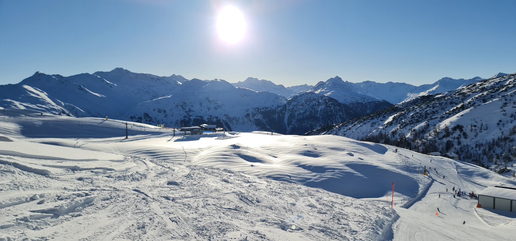 Die Talabfahrt-Variante Piste 2 ist auch gut, und mittlerweile ist es sehr sonnig: