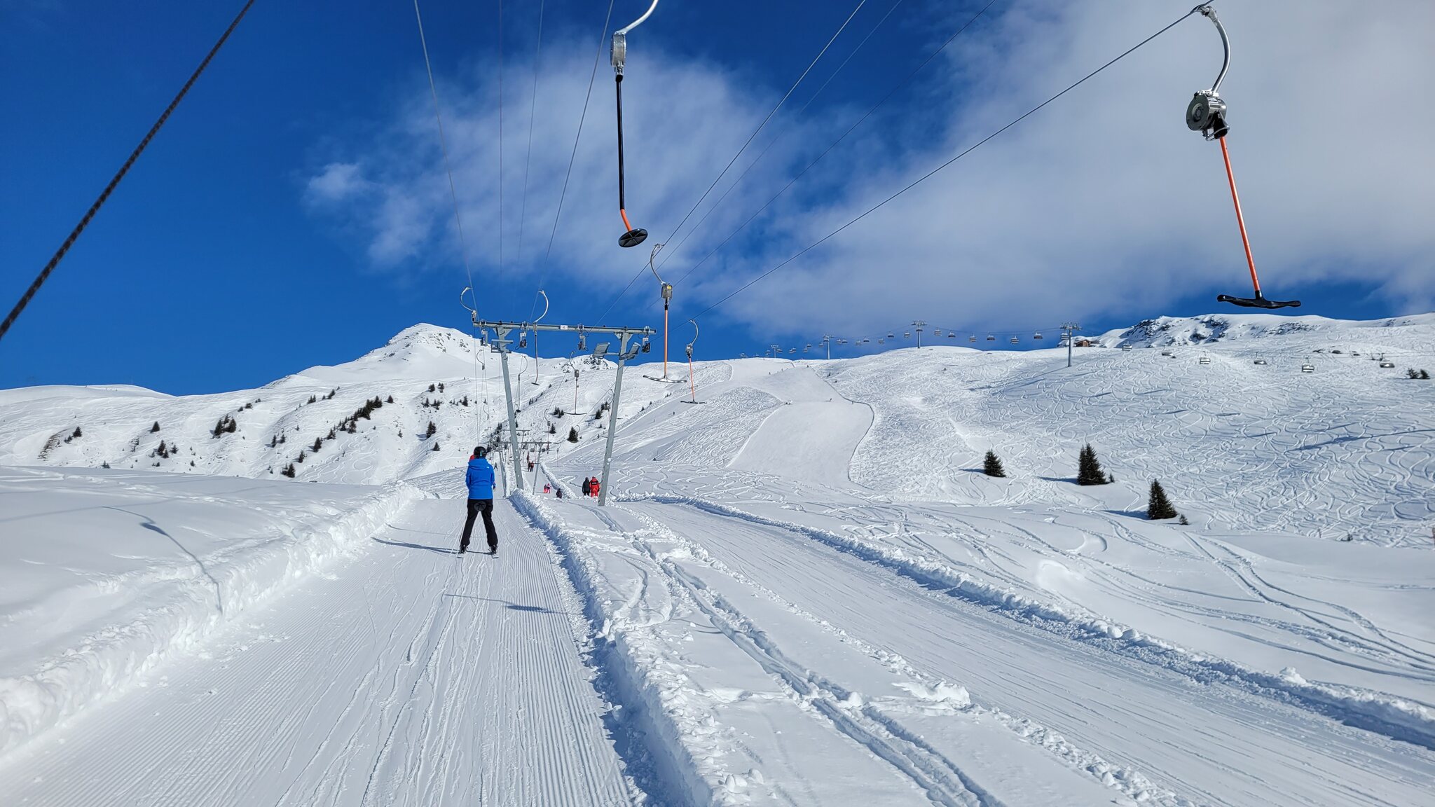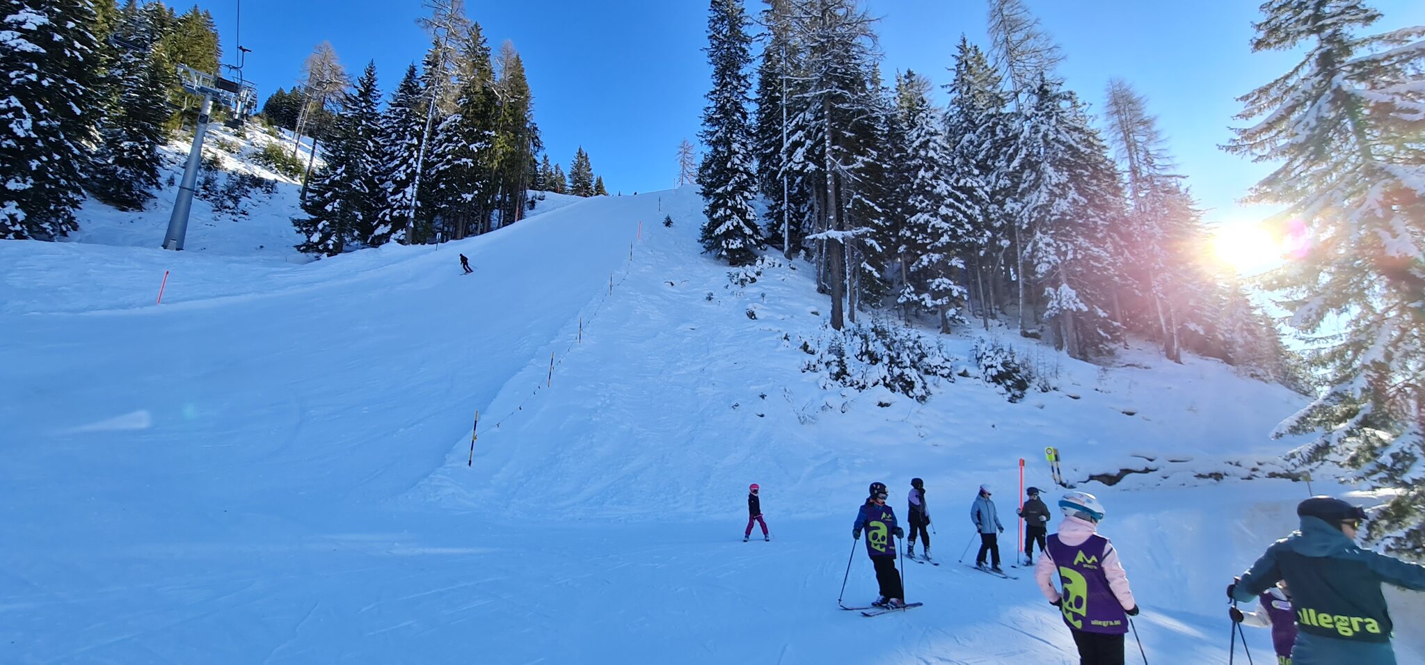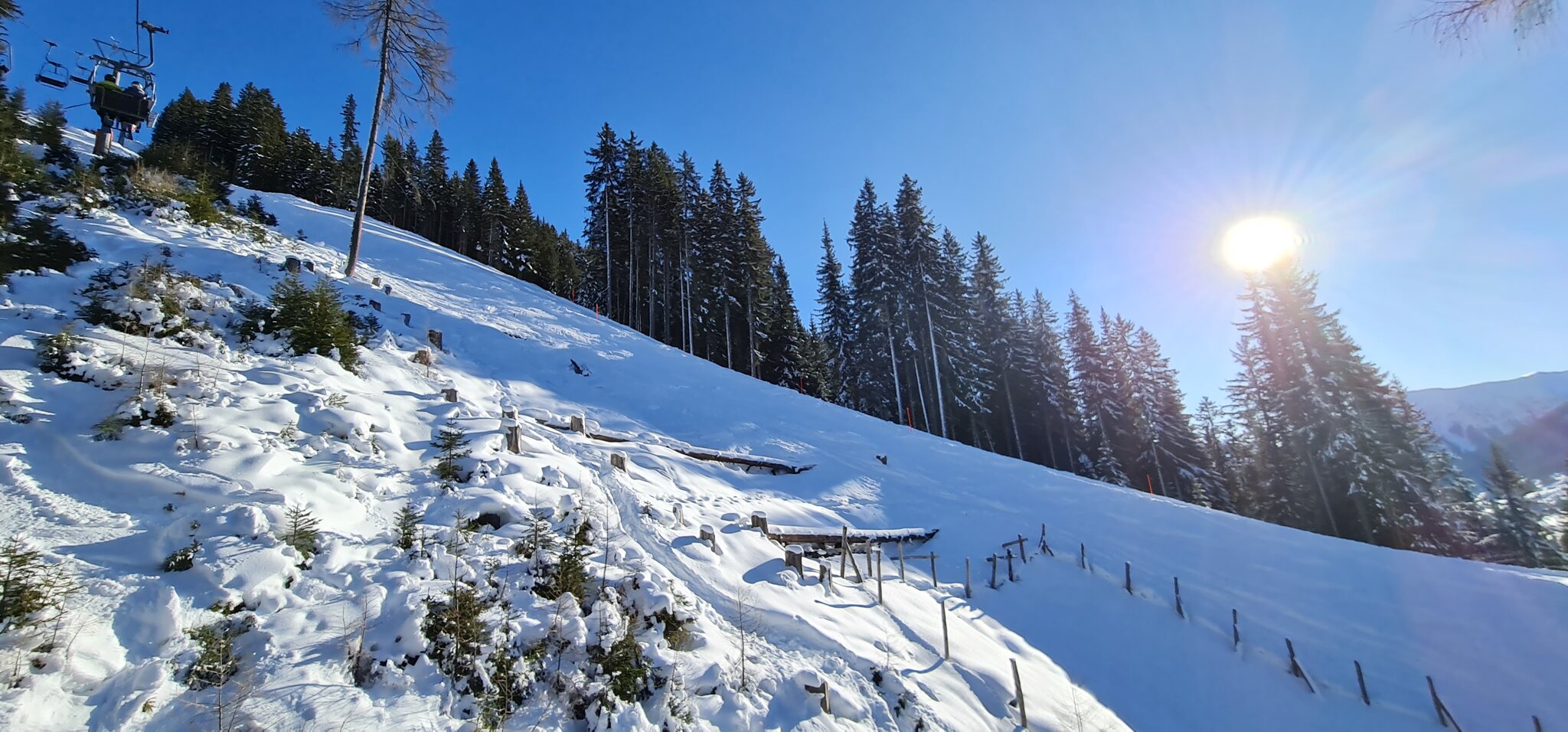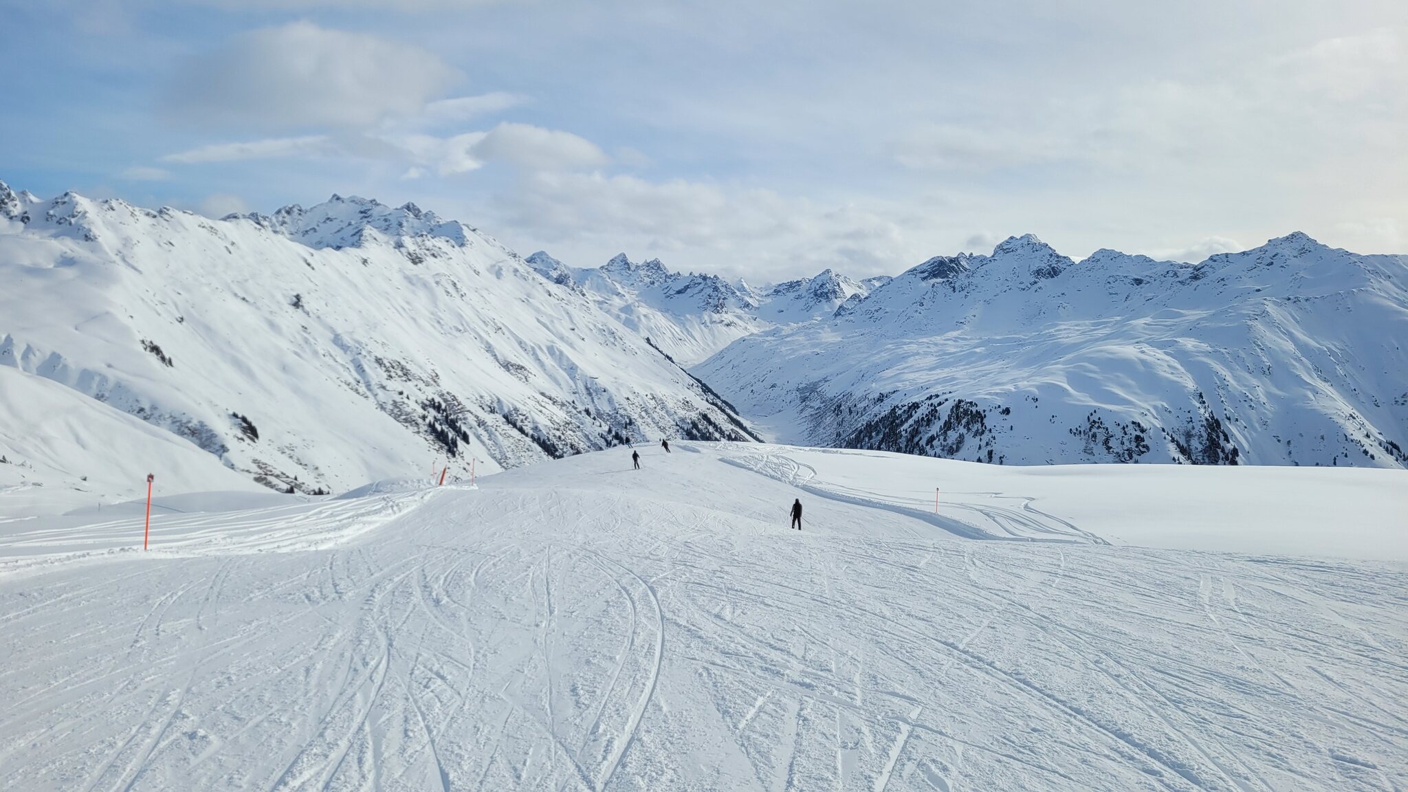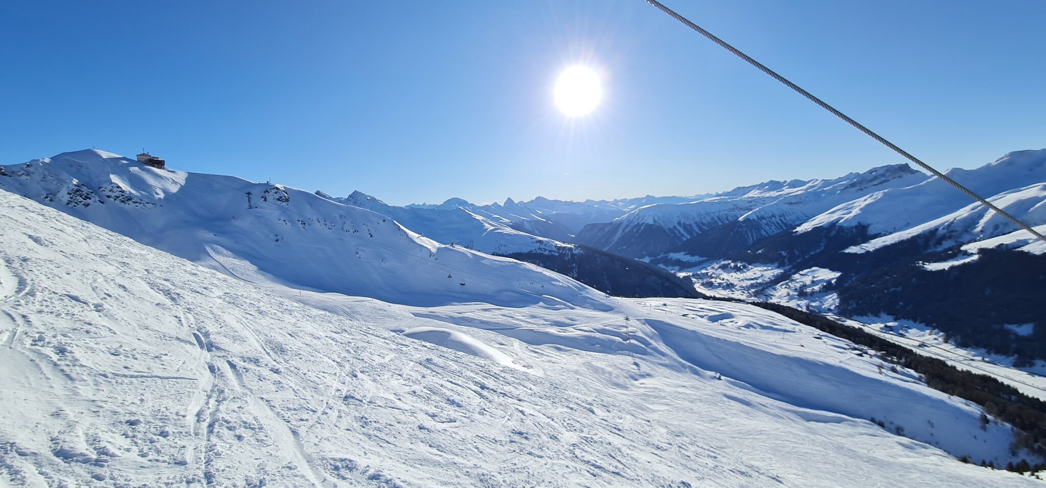 Die Talabfahrt-Variante Piste 2 ist auch gut, und mittlerweile ist es sehr sonnig: