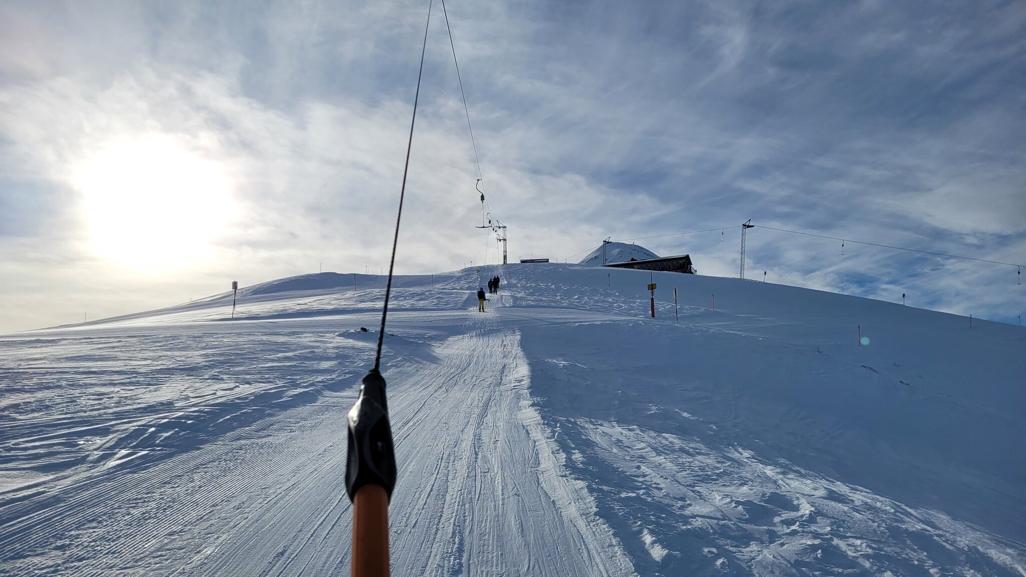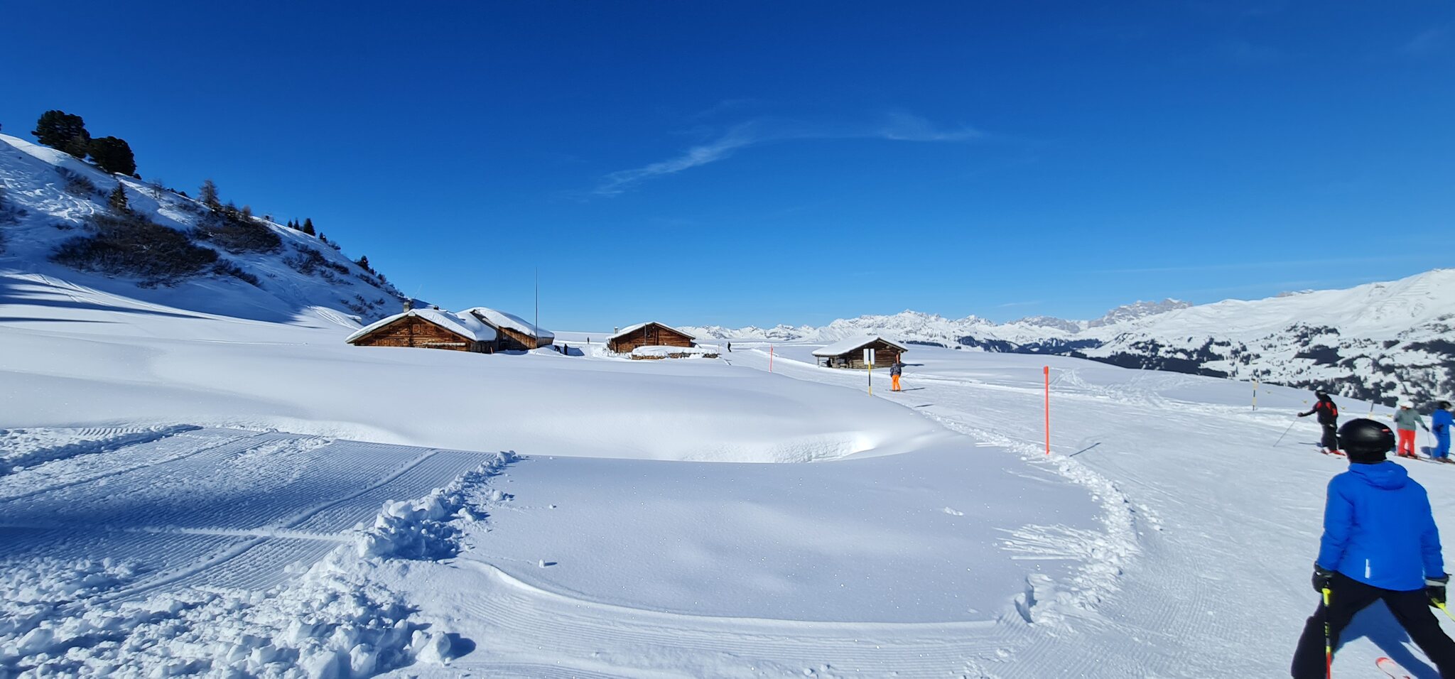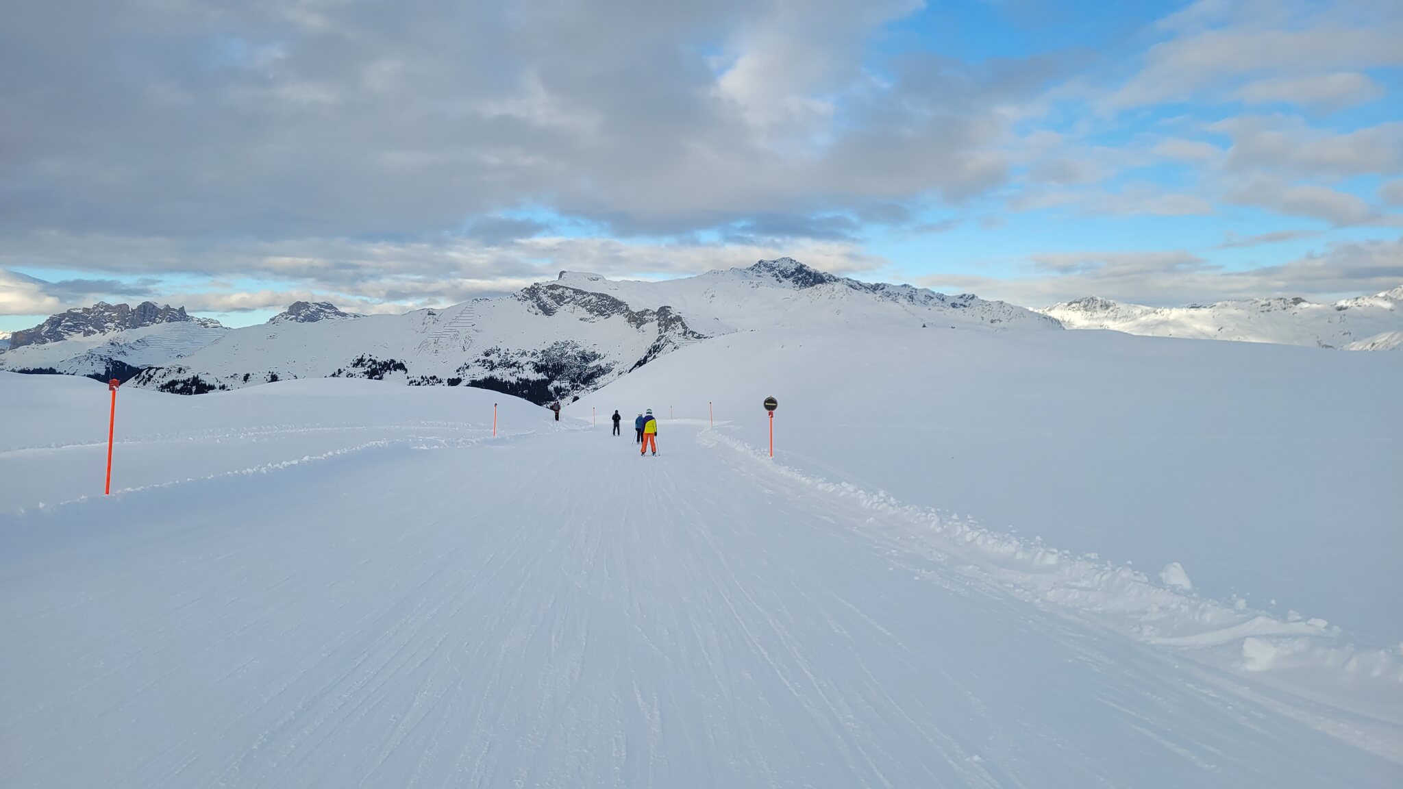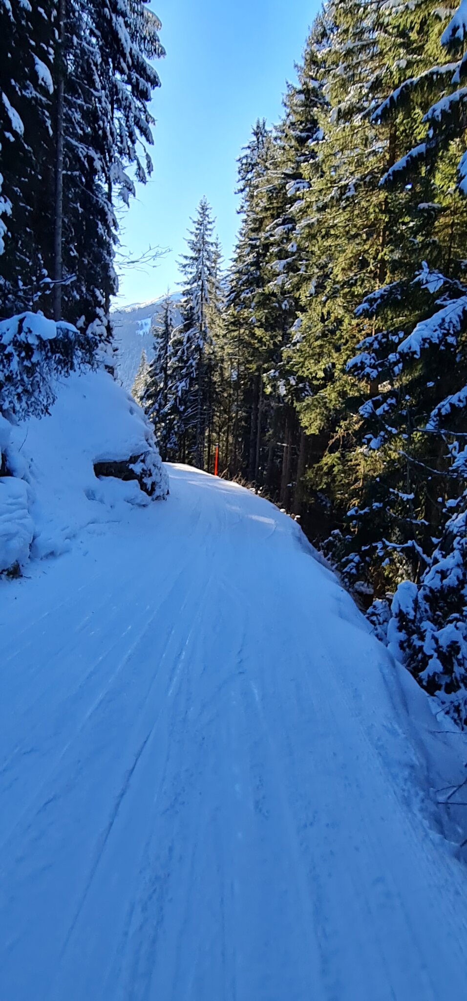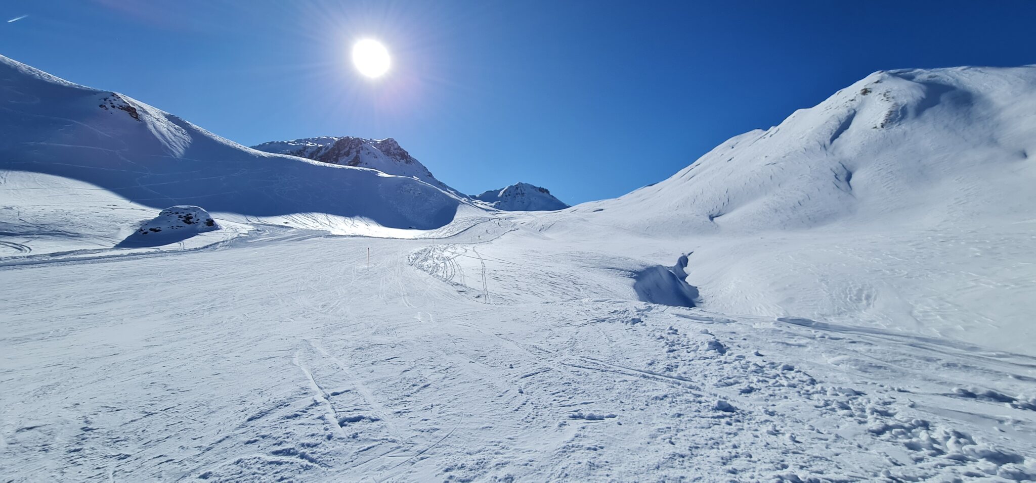 Die Talabfahrt-Variante Piste 2 ist auch gut, und mittlerweile ist es sehr sonnig: