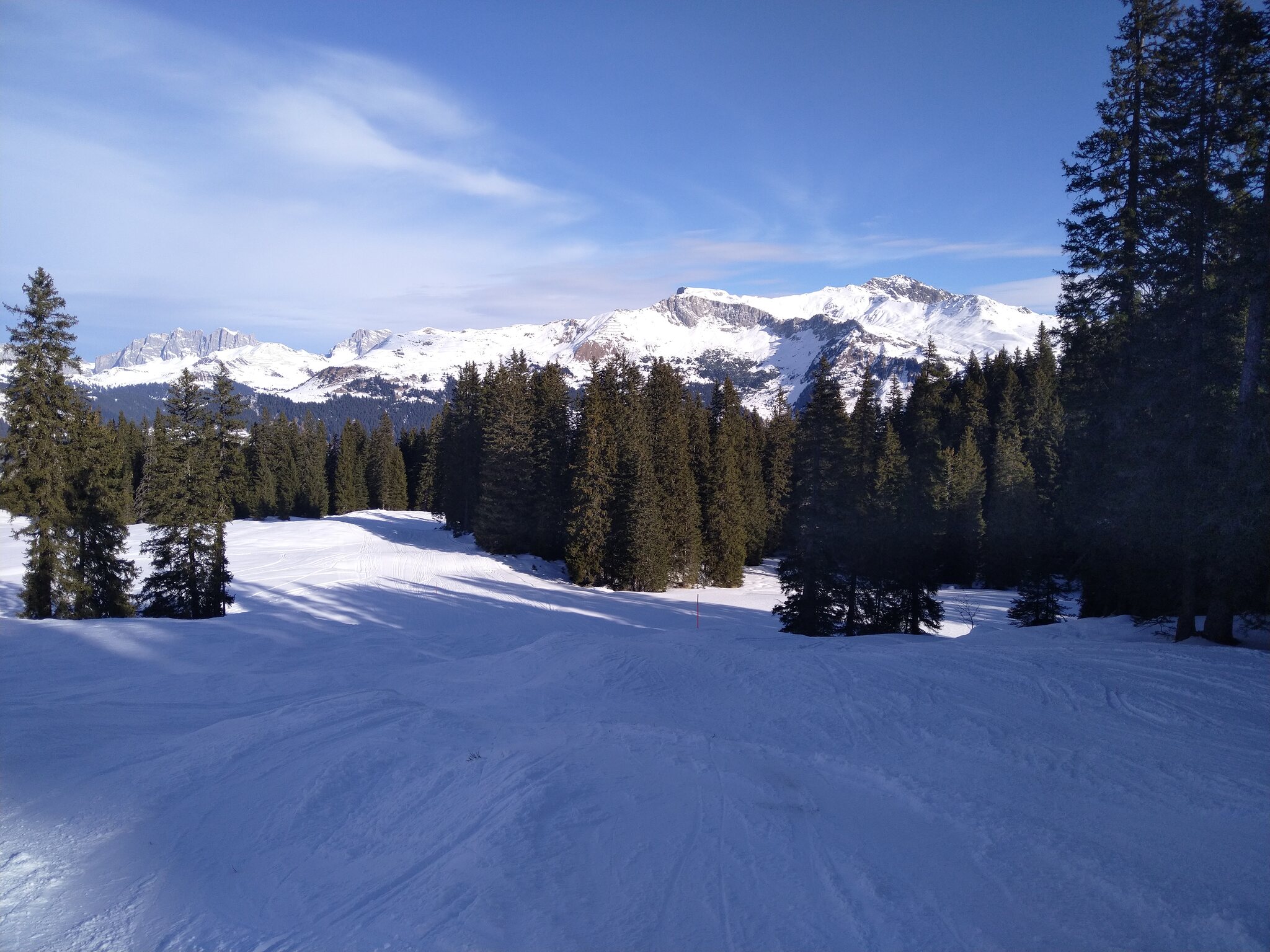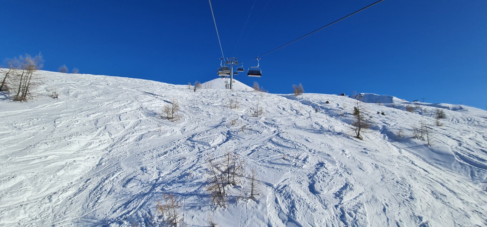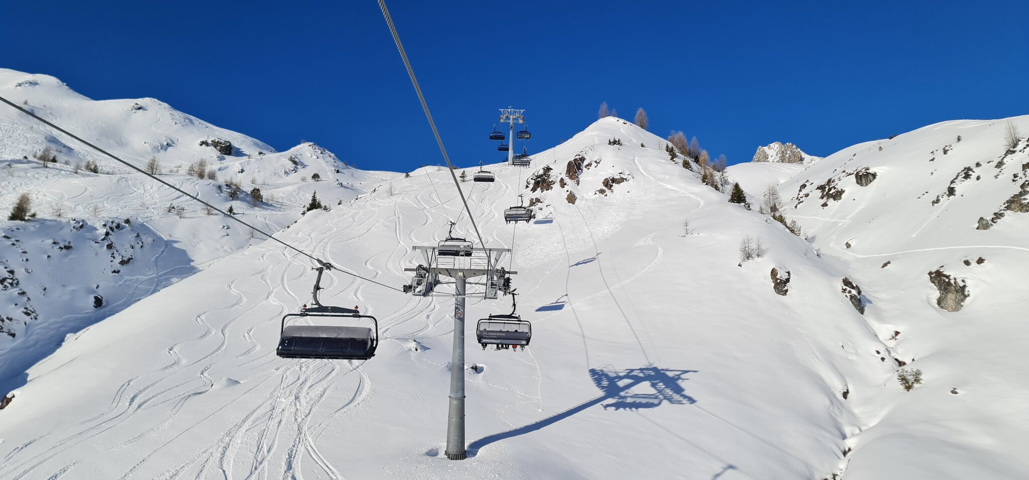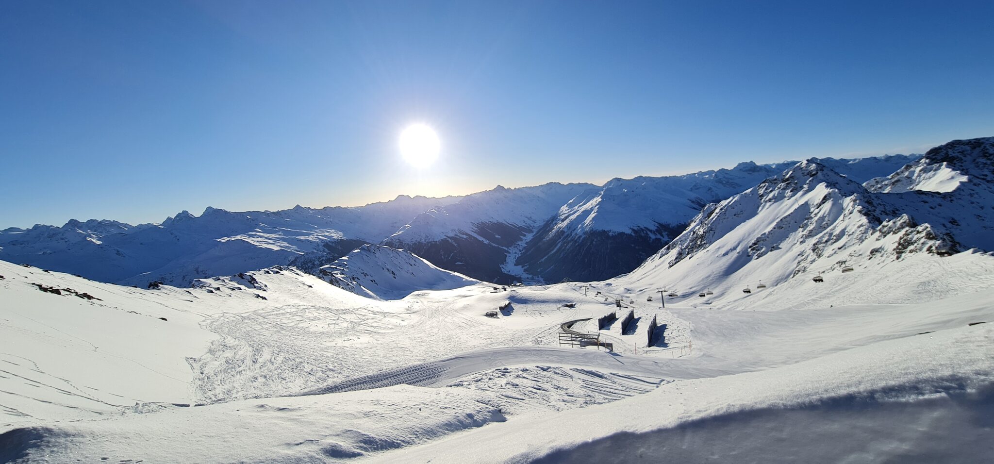 Die Talabfahrt-Variante Piste 2 ist auch gut, und mittlerweile ist es sehr sonnig: