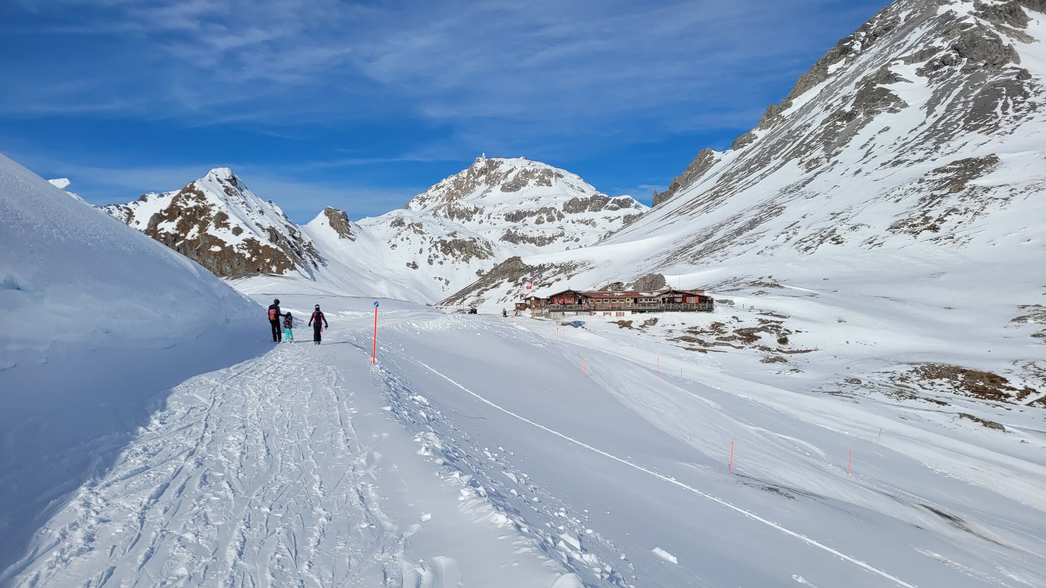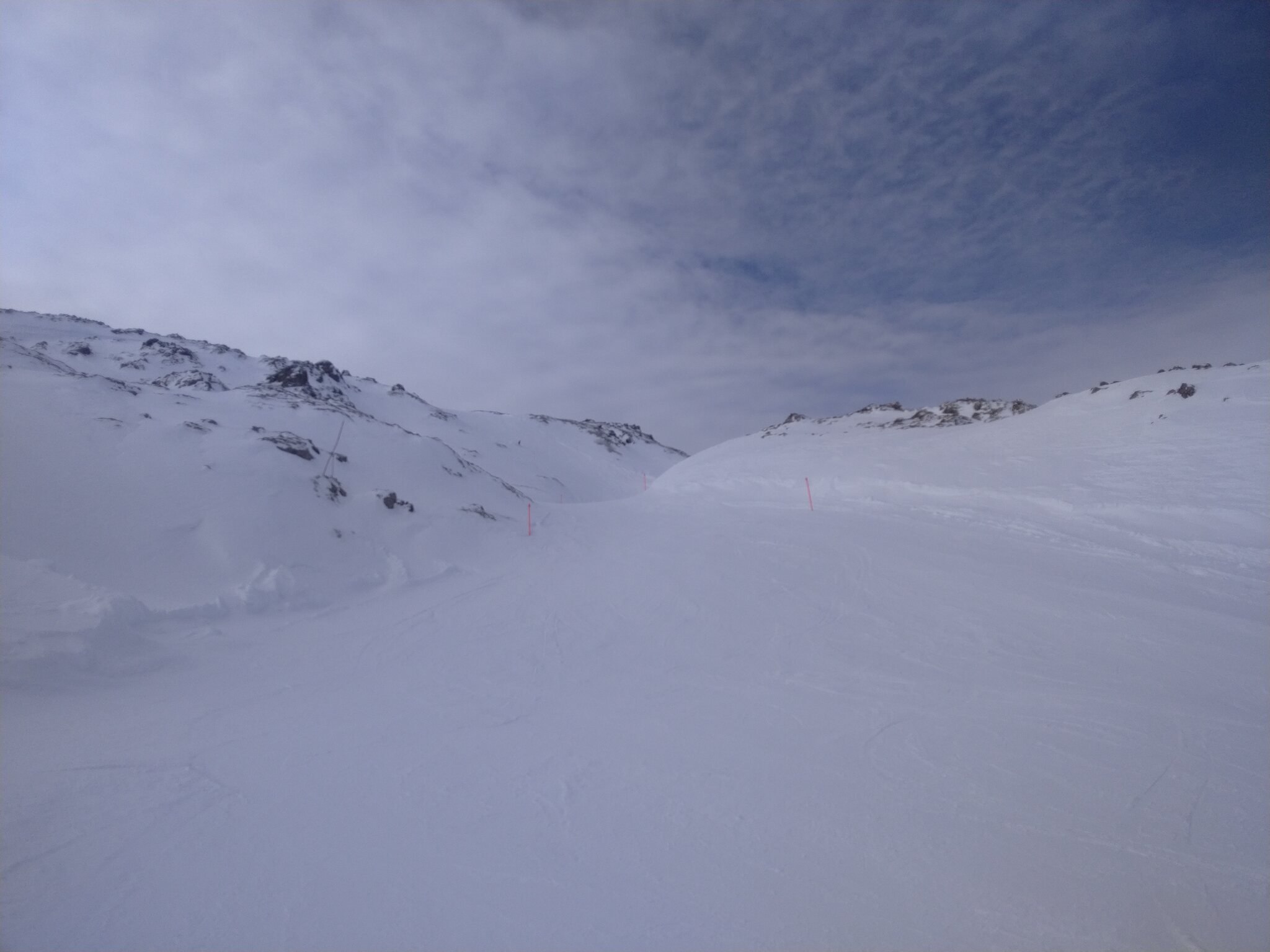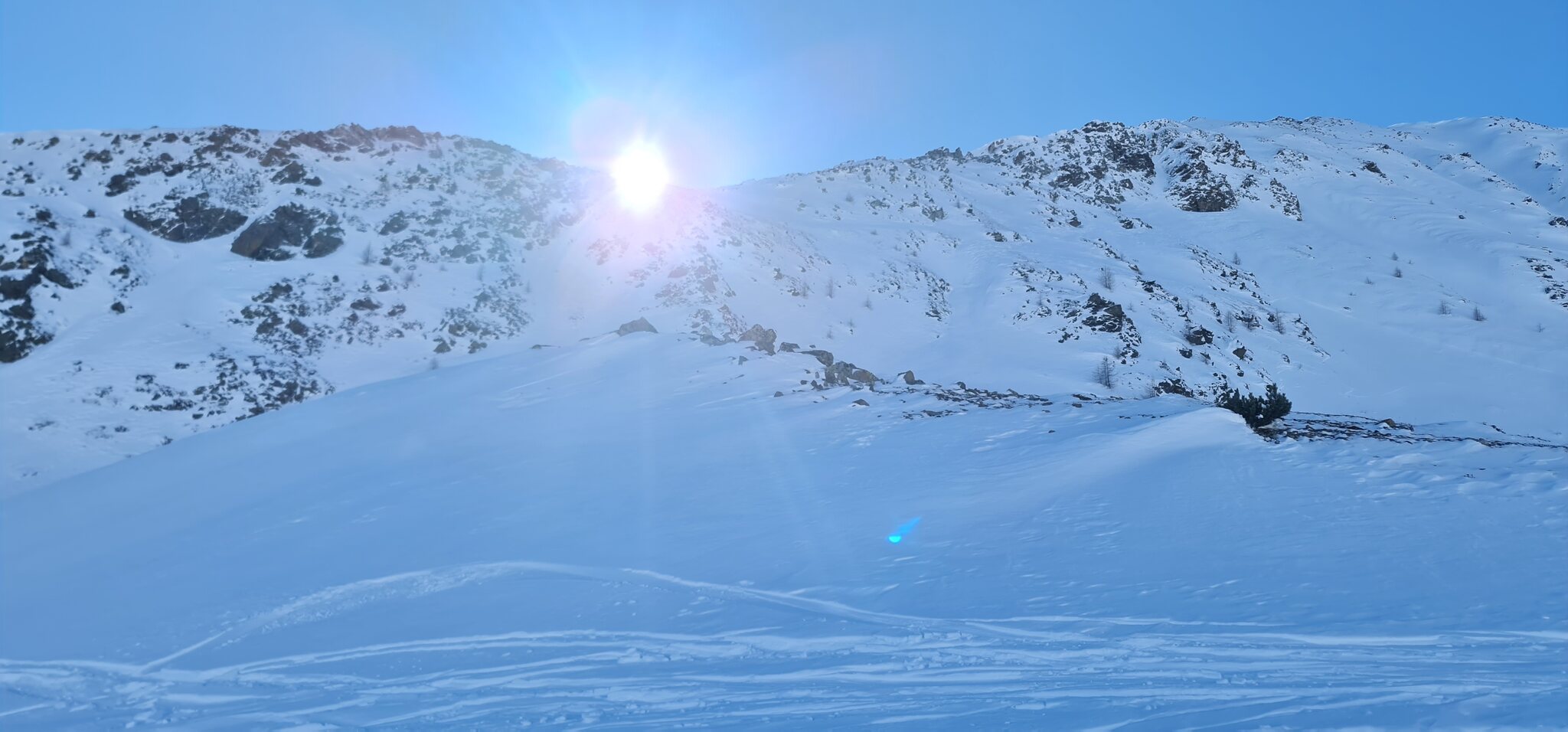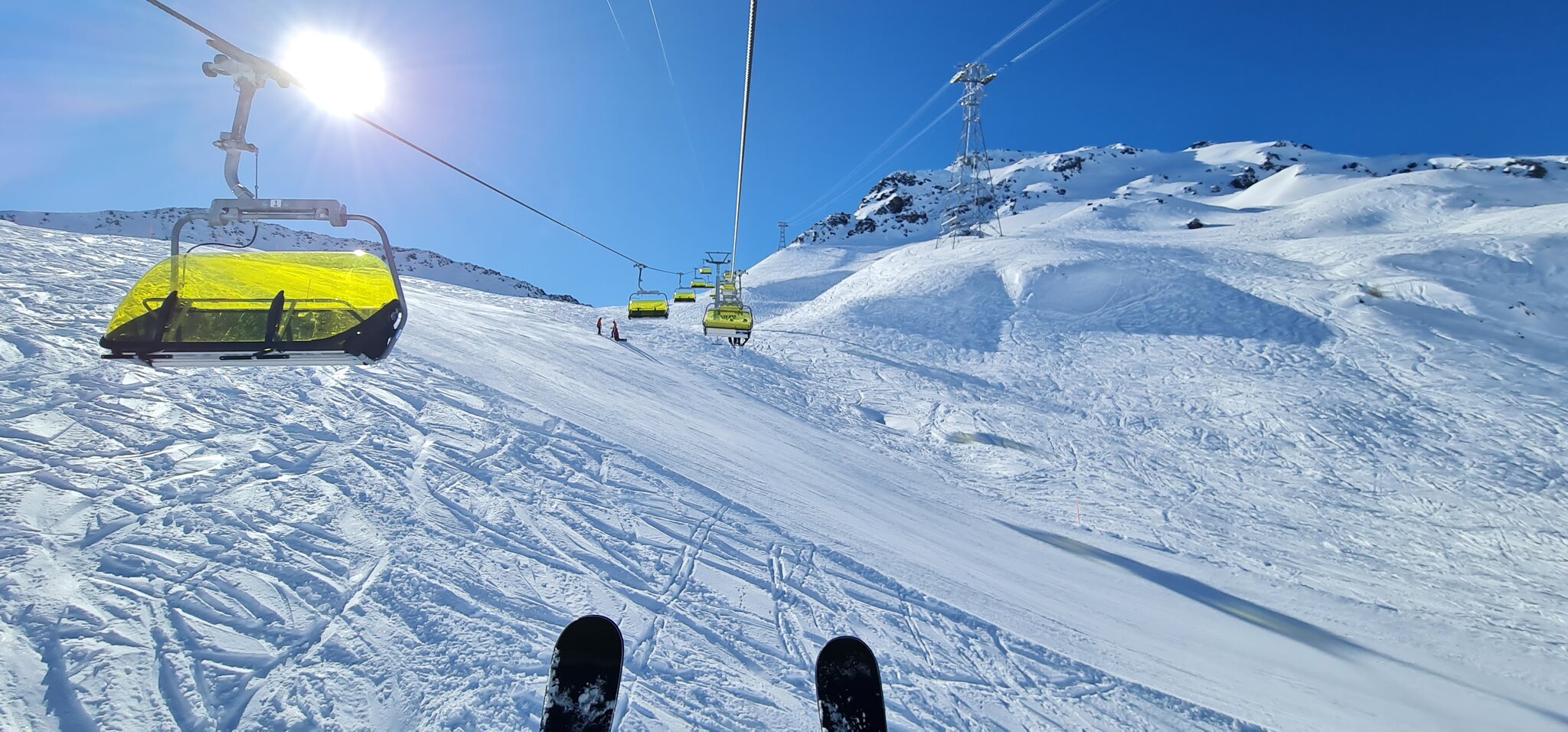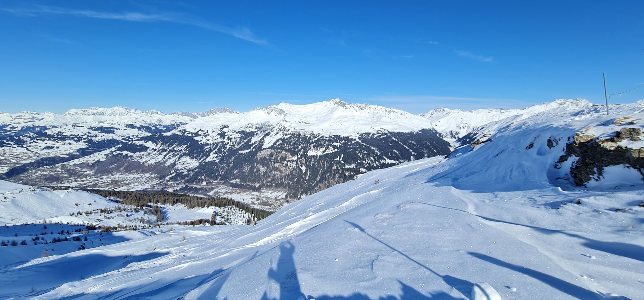 Die Talabfahrt-Variante Piste 2 ist auch gut, und mittlerweile ist es sehr sonnig: