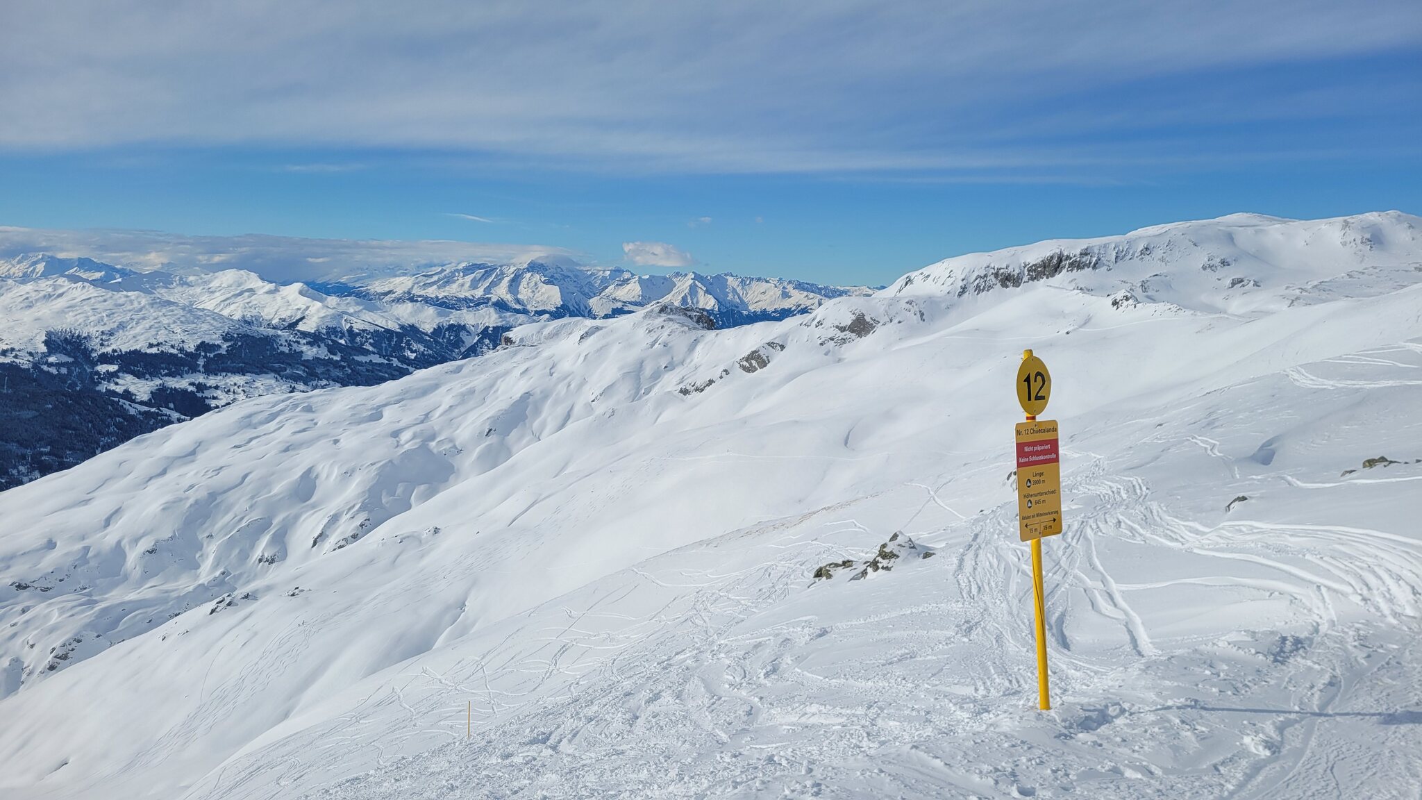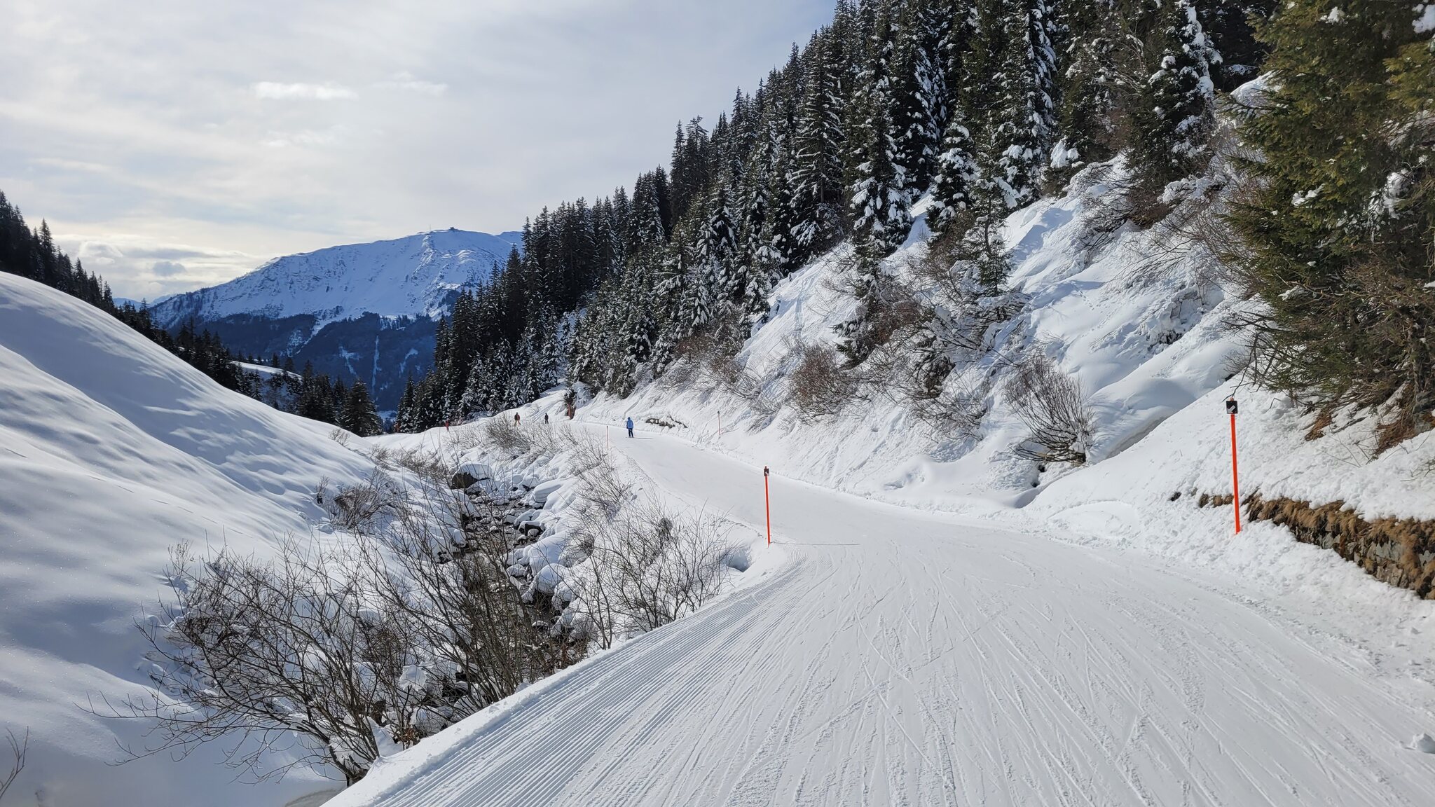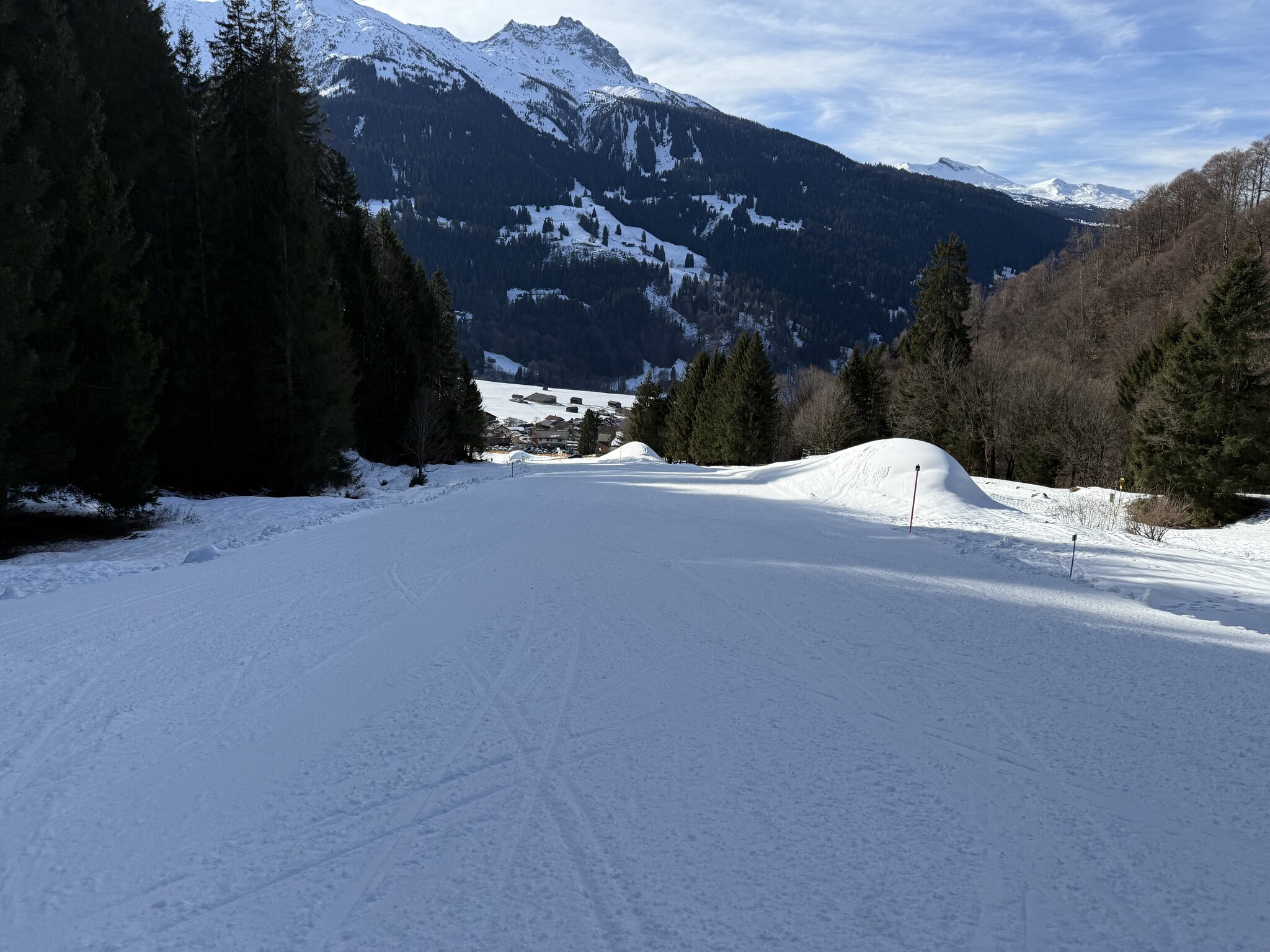 Auch die als Route ausgeschilderte Gauder Schifer heute gut zu fahren. Besser, als die als offene Pisten ausgeschilderten Talabfahrten am Hochwang letzte Woche.