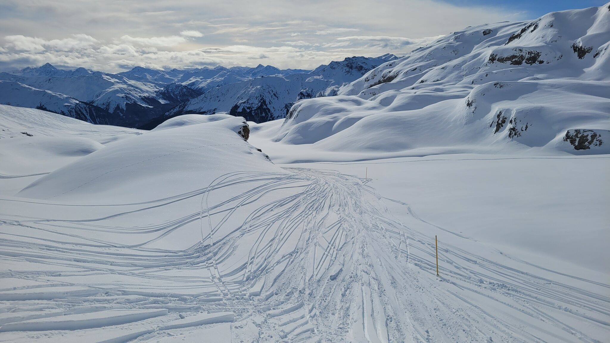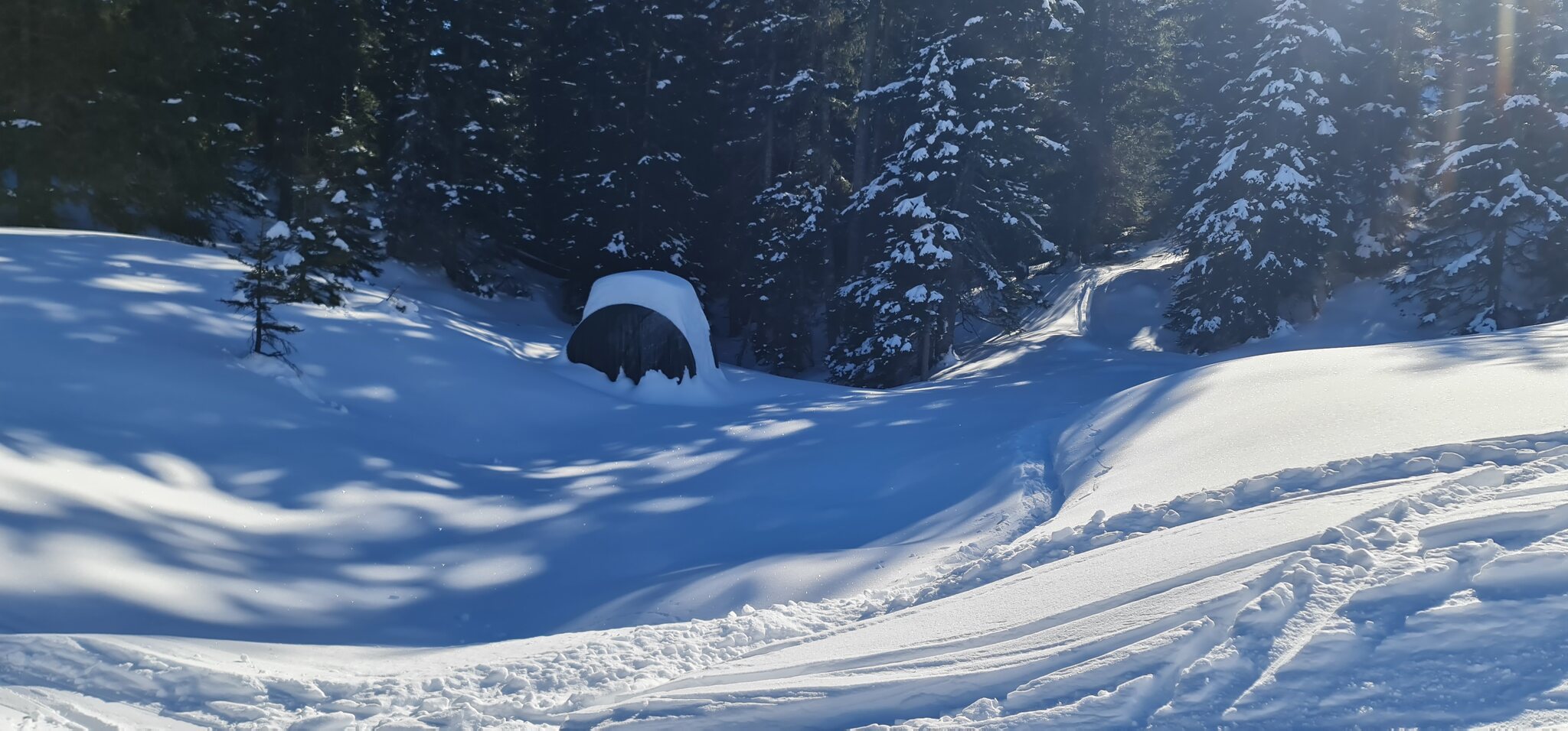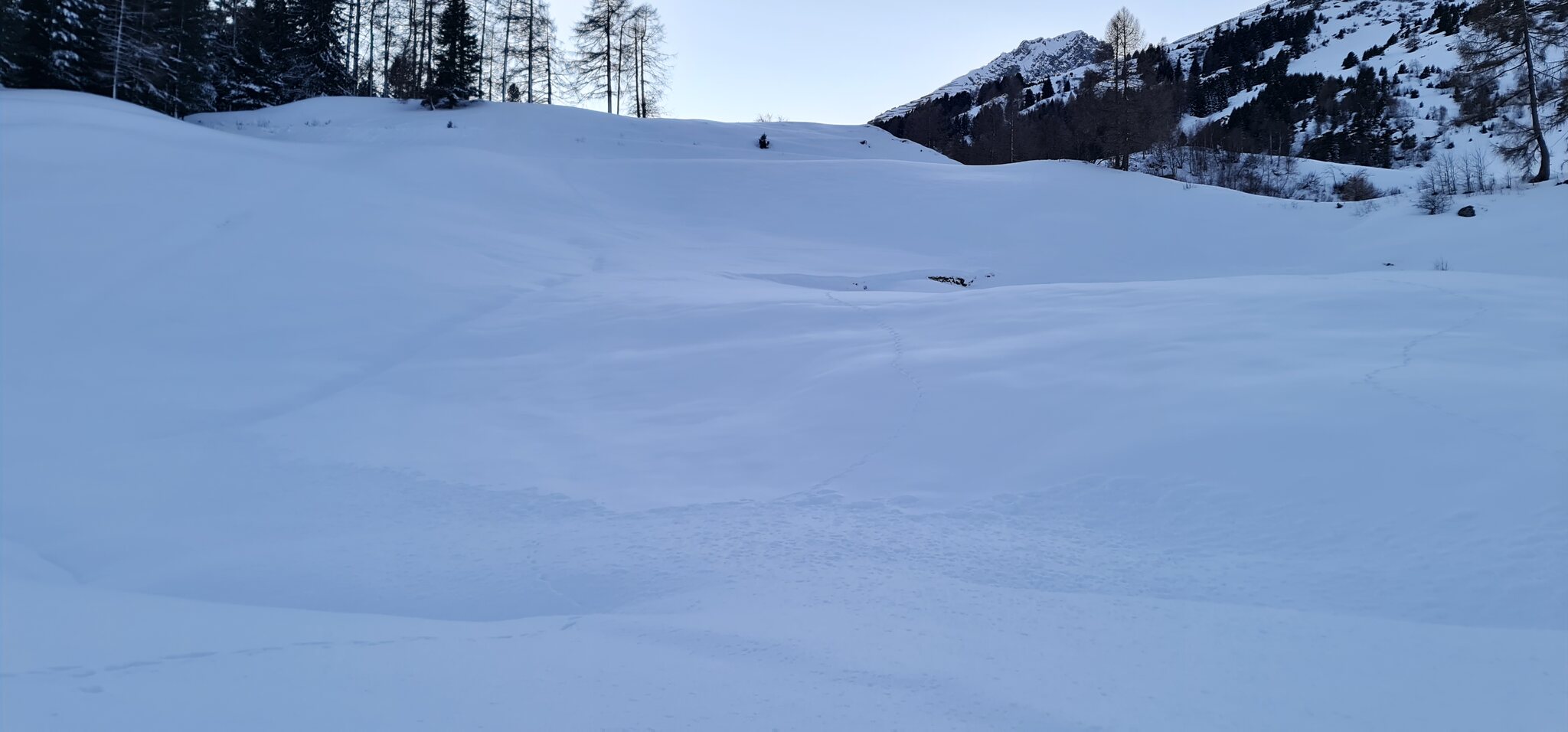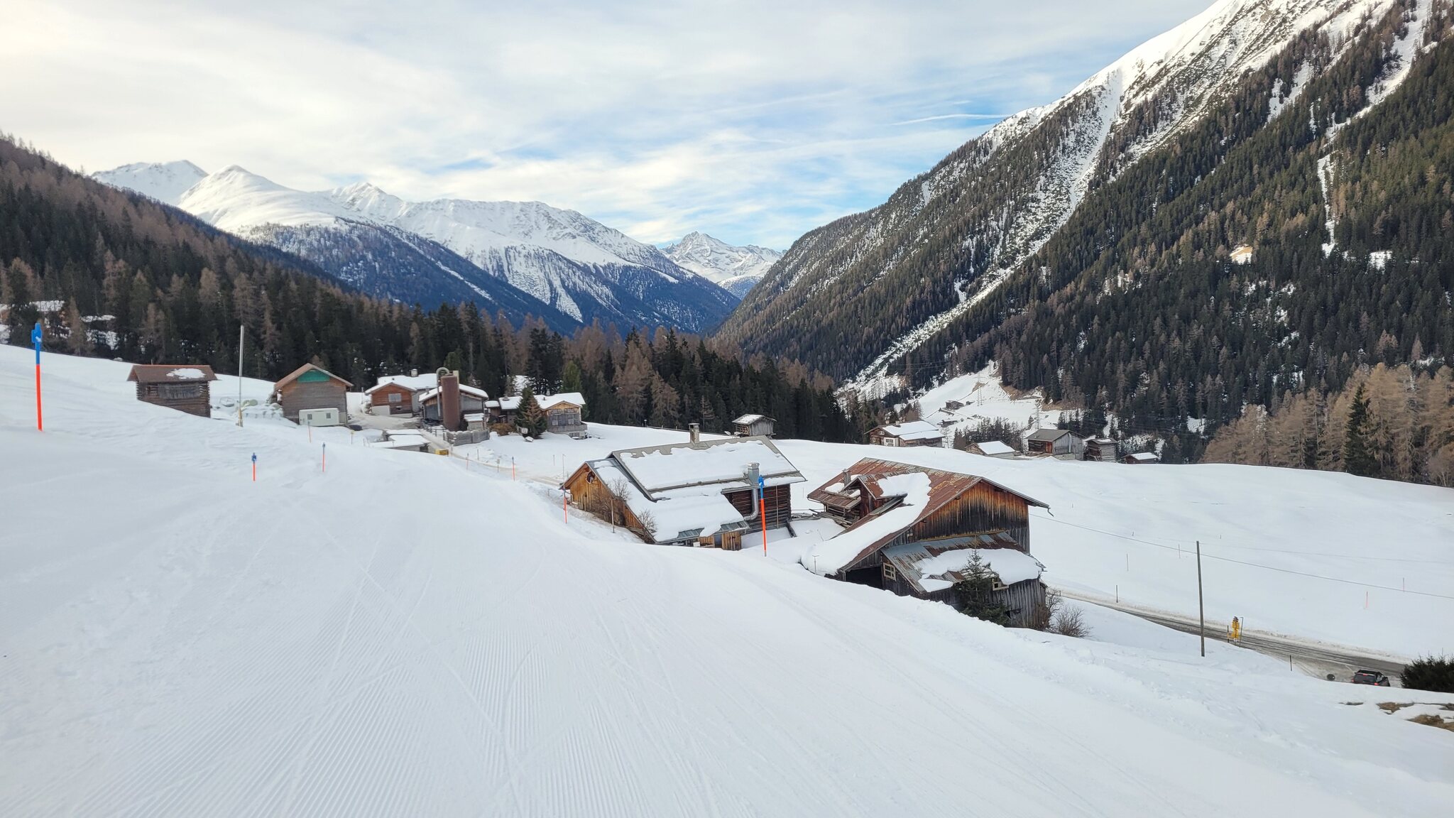 Auch die als Route ausgeschilderte Gauder Schifer heute gut zu fahren. Besser, als die als offene Pisten ausgeschilderten Talabfahrten am Hochwang letzte Woche.