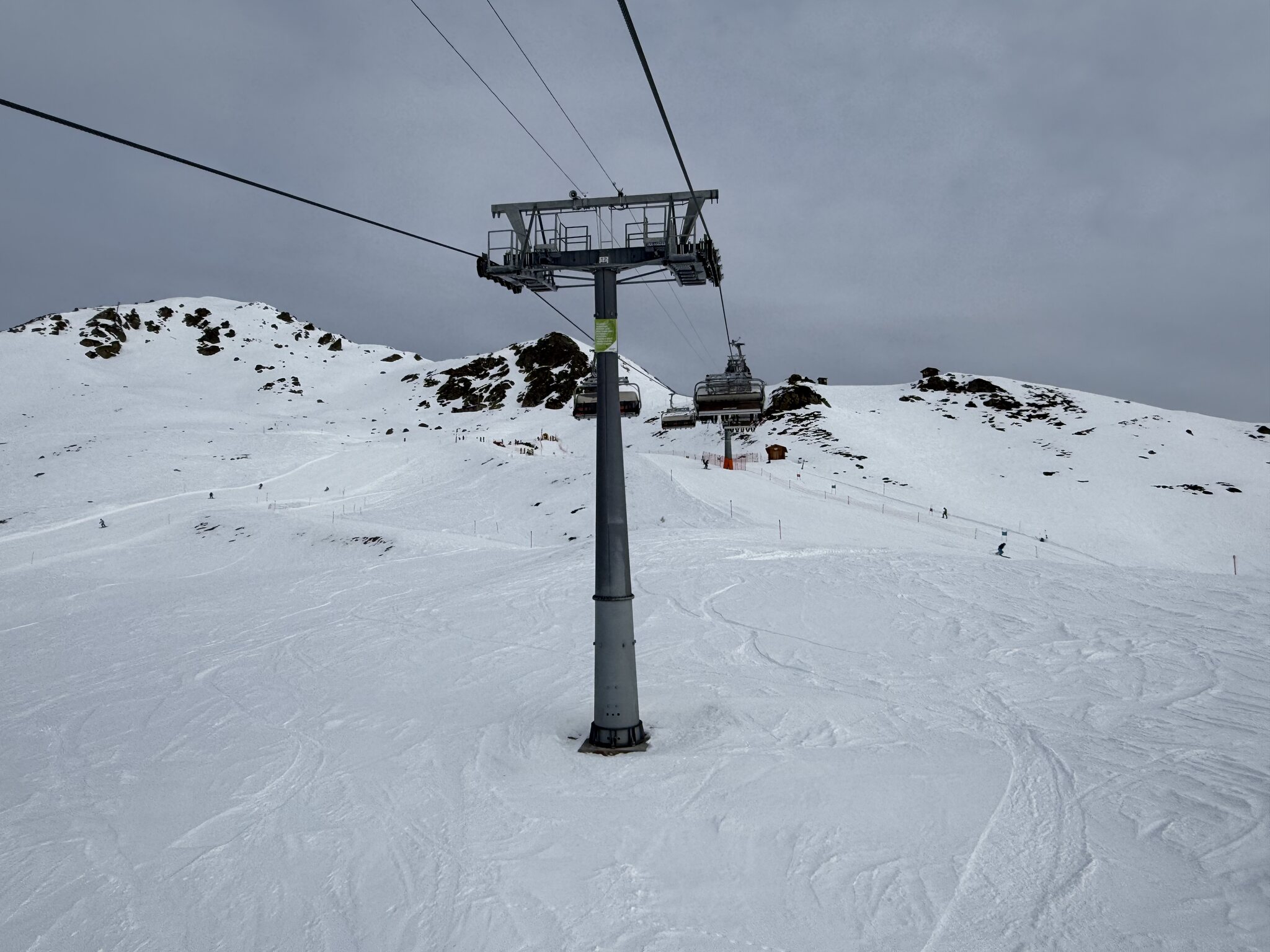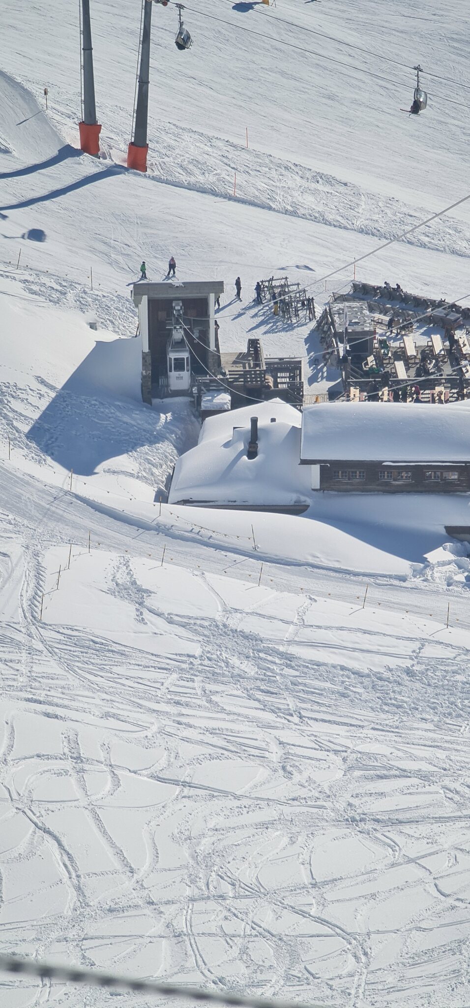 Die Talabfahrt erstaunlich gut, besser als auch schon diesen Winter mit genügend Schnee überall. Am Nachmittag wegen den warmen Temperaturen (Thermometer an der Gondel-Bergstation zeigte 10° an) natürlich oben und unten sehr weicher Schnee.