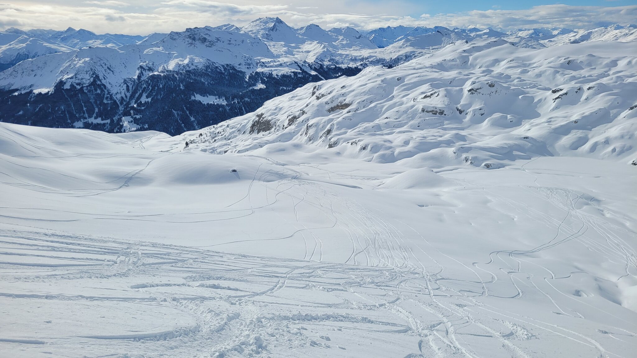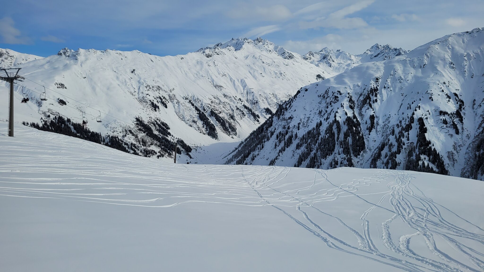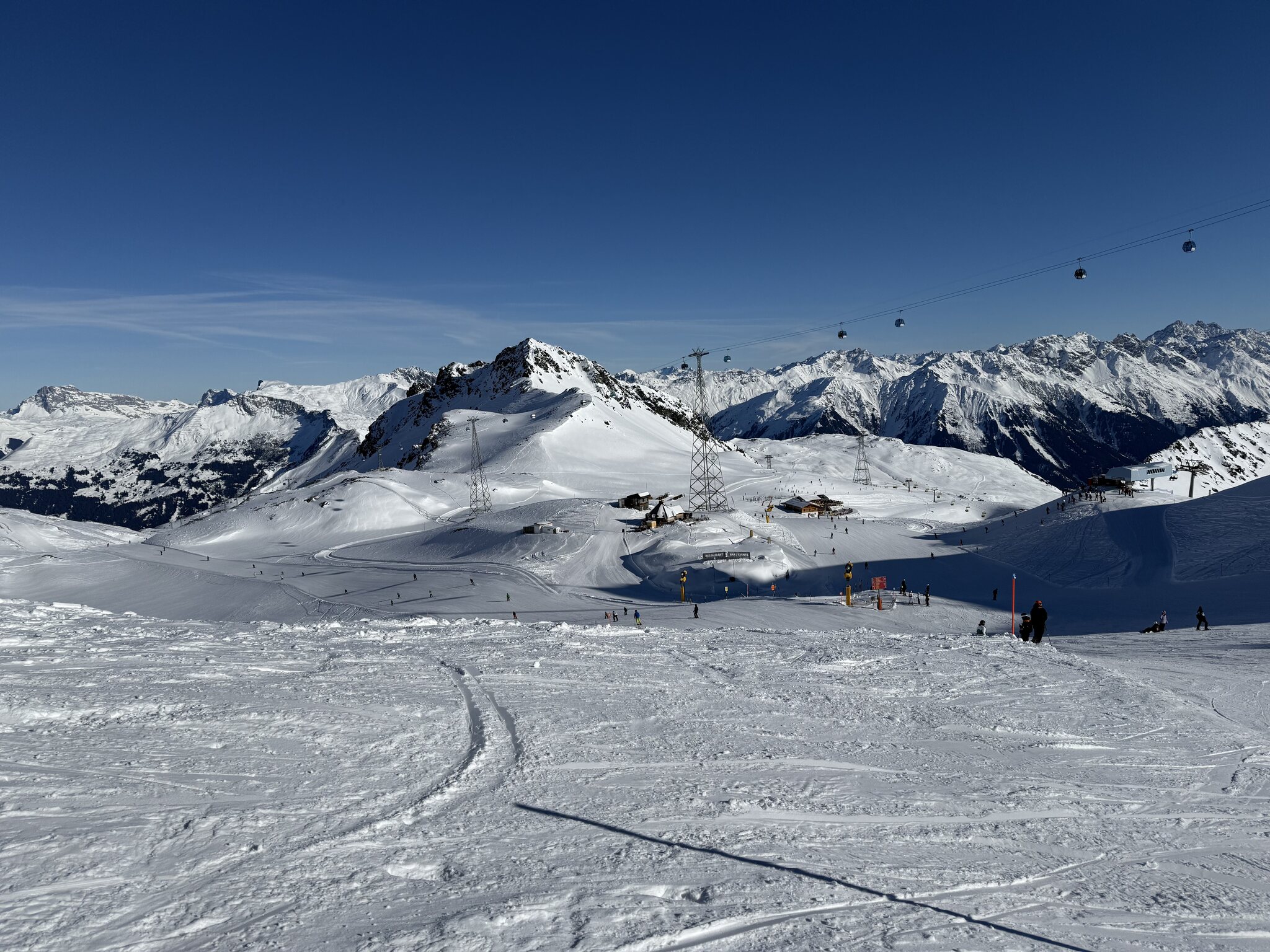 Heute vormittag ist wieder mal Madrisa angesagt, trotz Skirennen erstaunlich wenig Andrang. Die Pisten alle top.