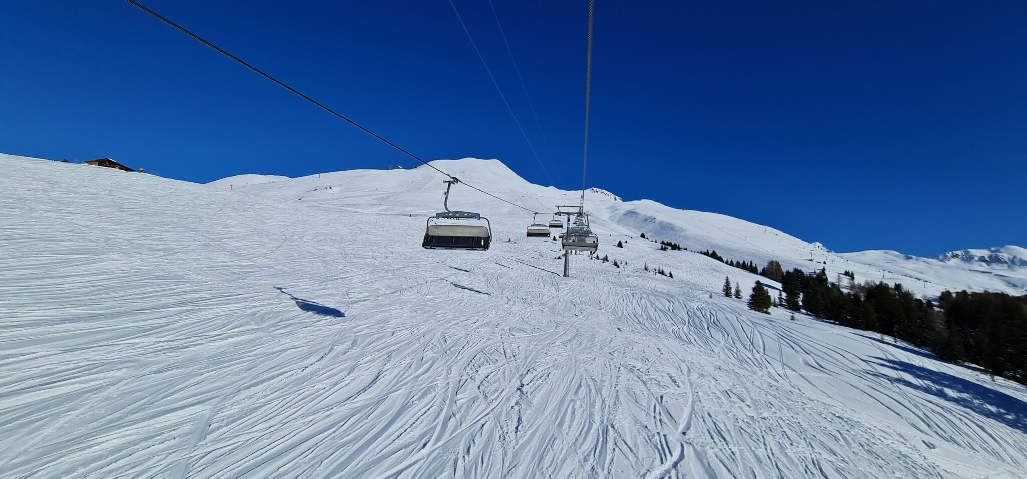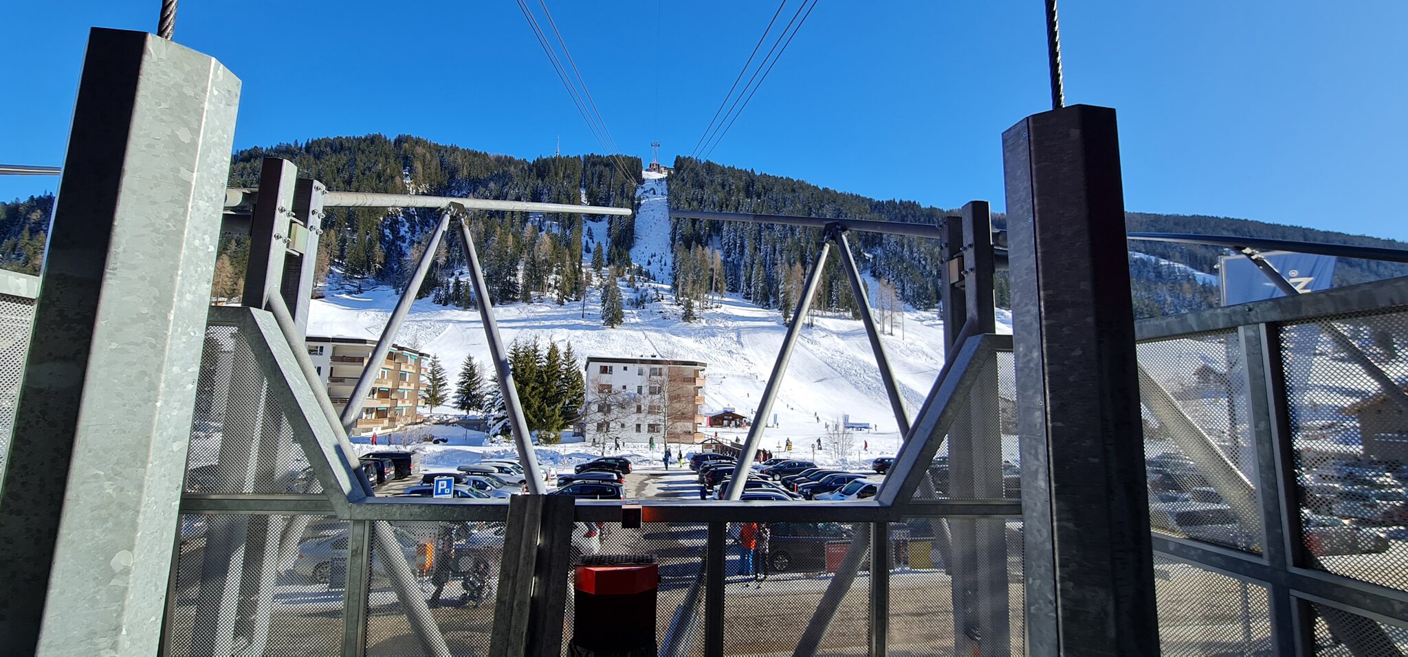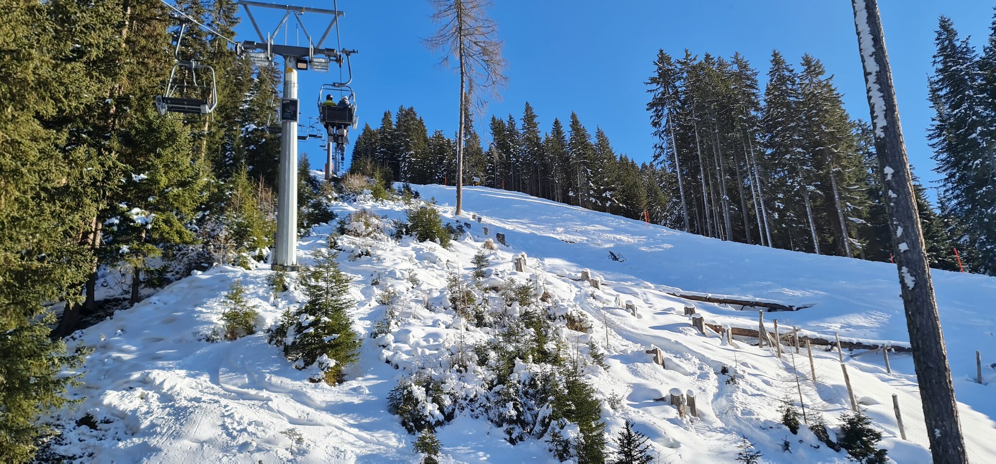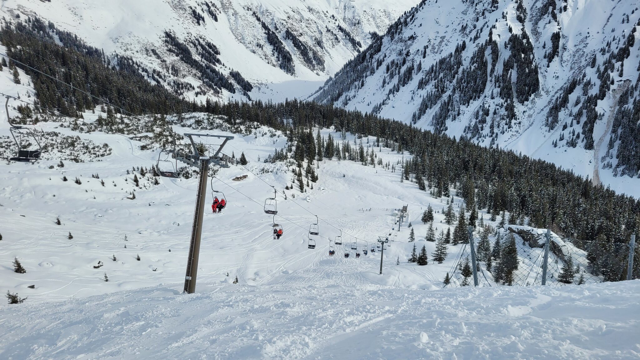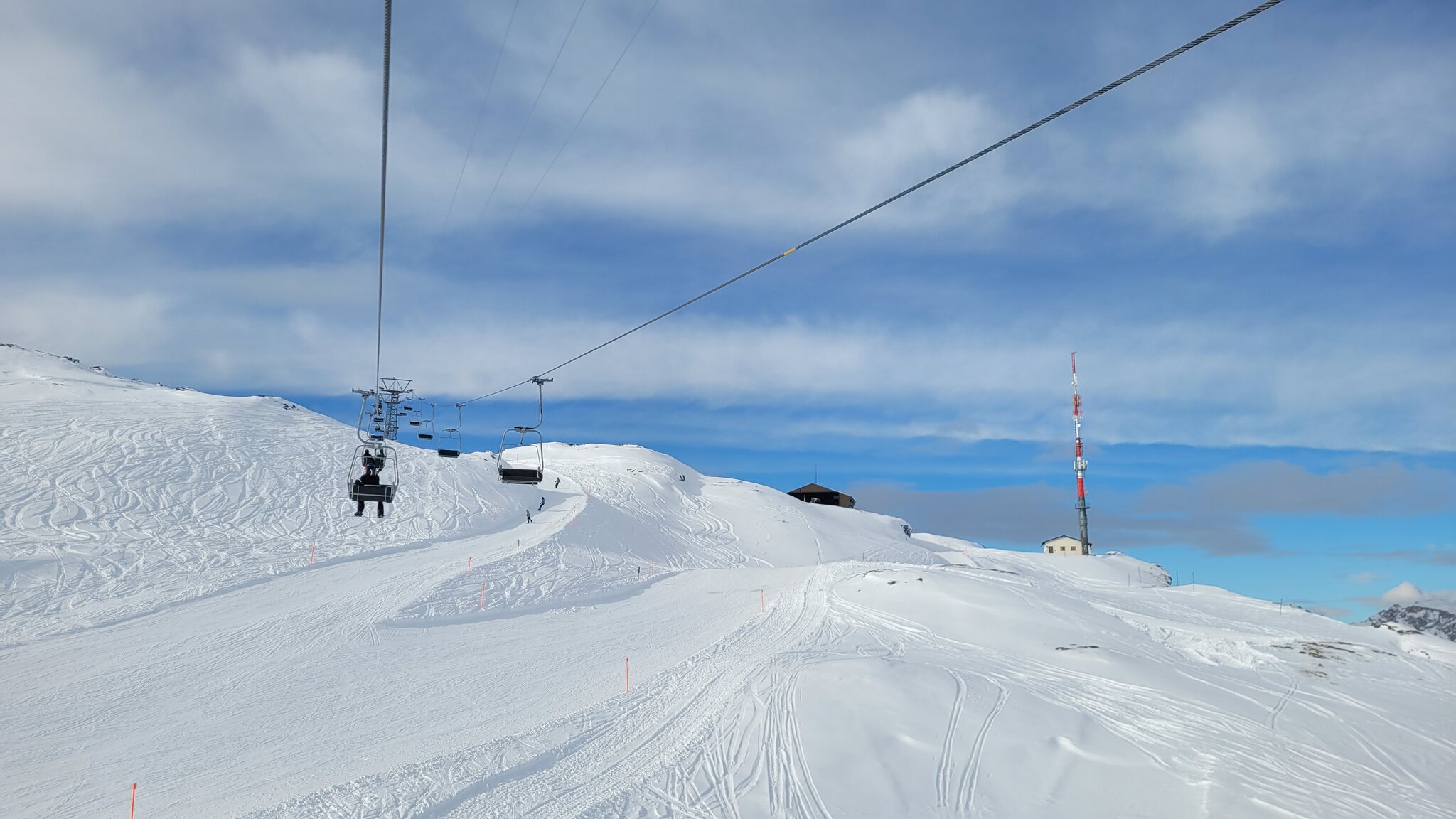 Oben fahren wir die rote 11 zum Jatz Quattro Sessel.