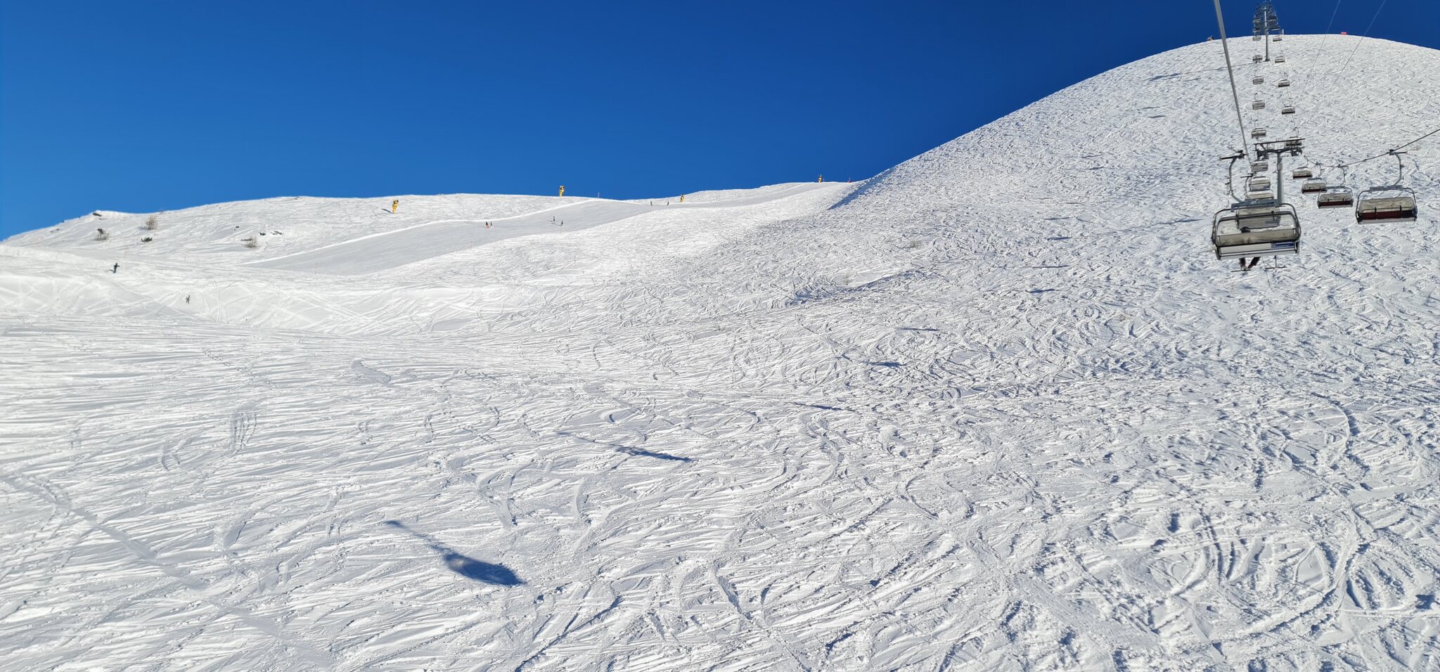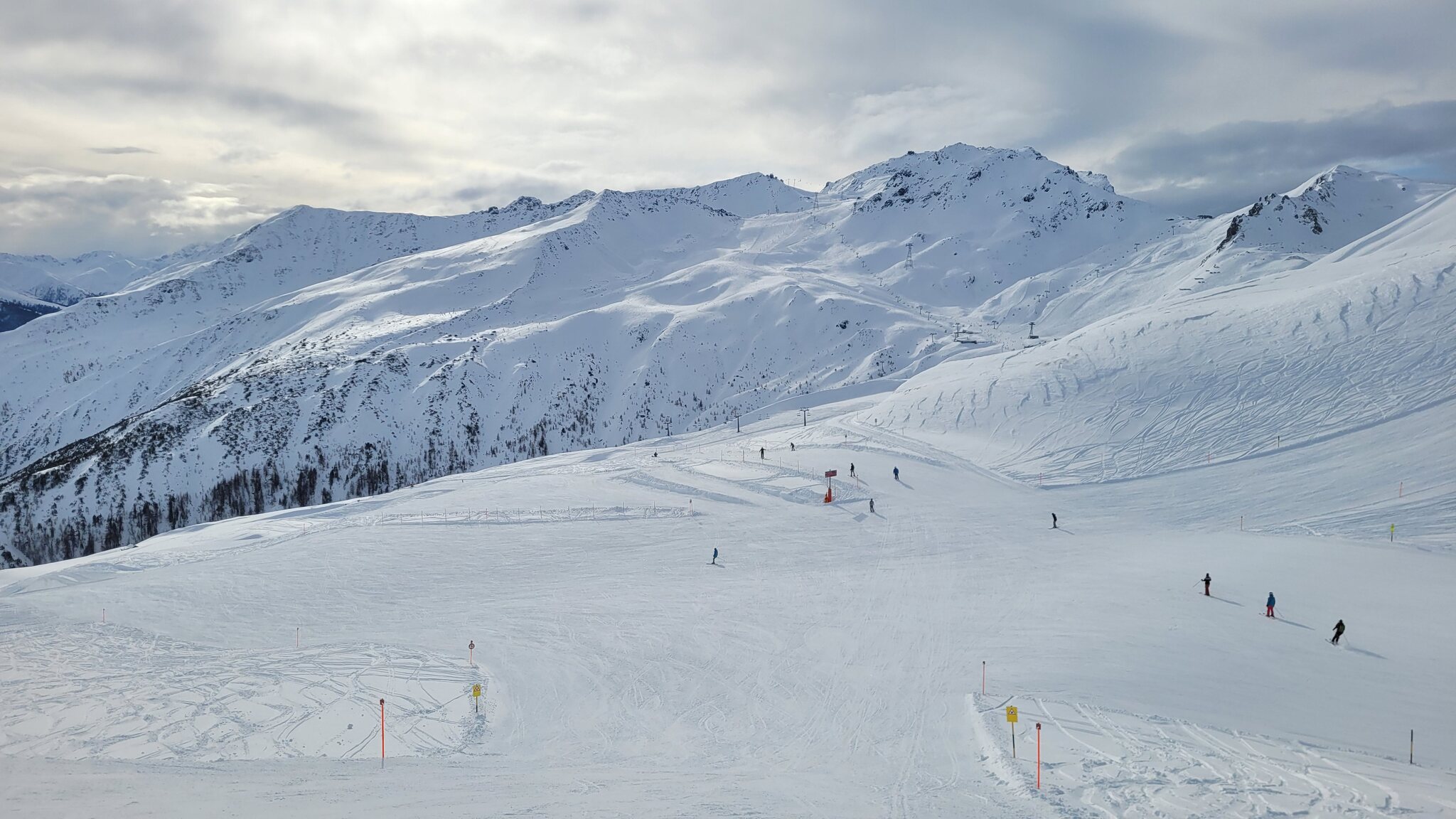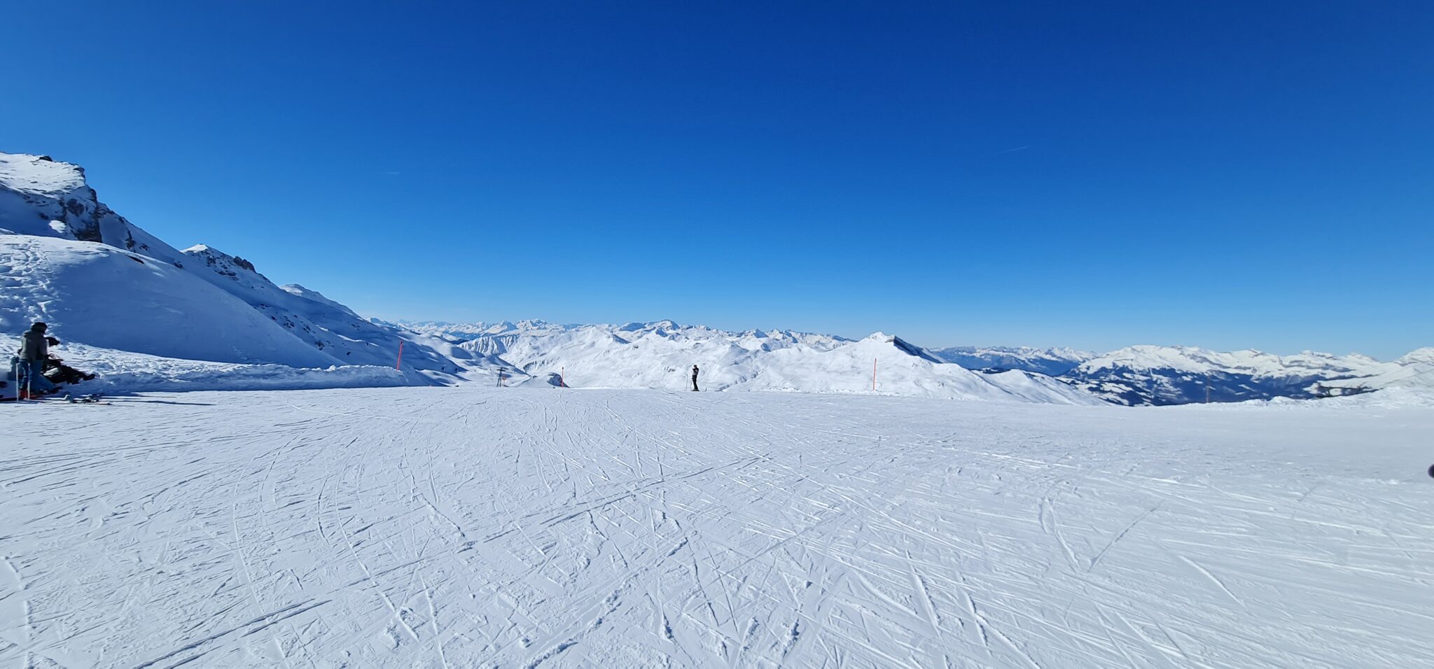 Zwar ist das Skigebiet eben recht zerissen, aber, wenn man es so geplant organisiert bekommt, stört das kaum.