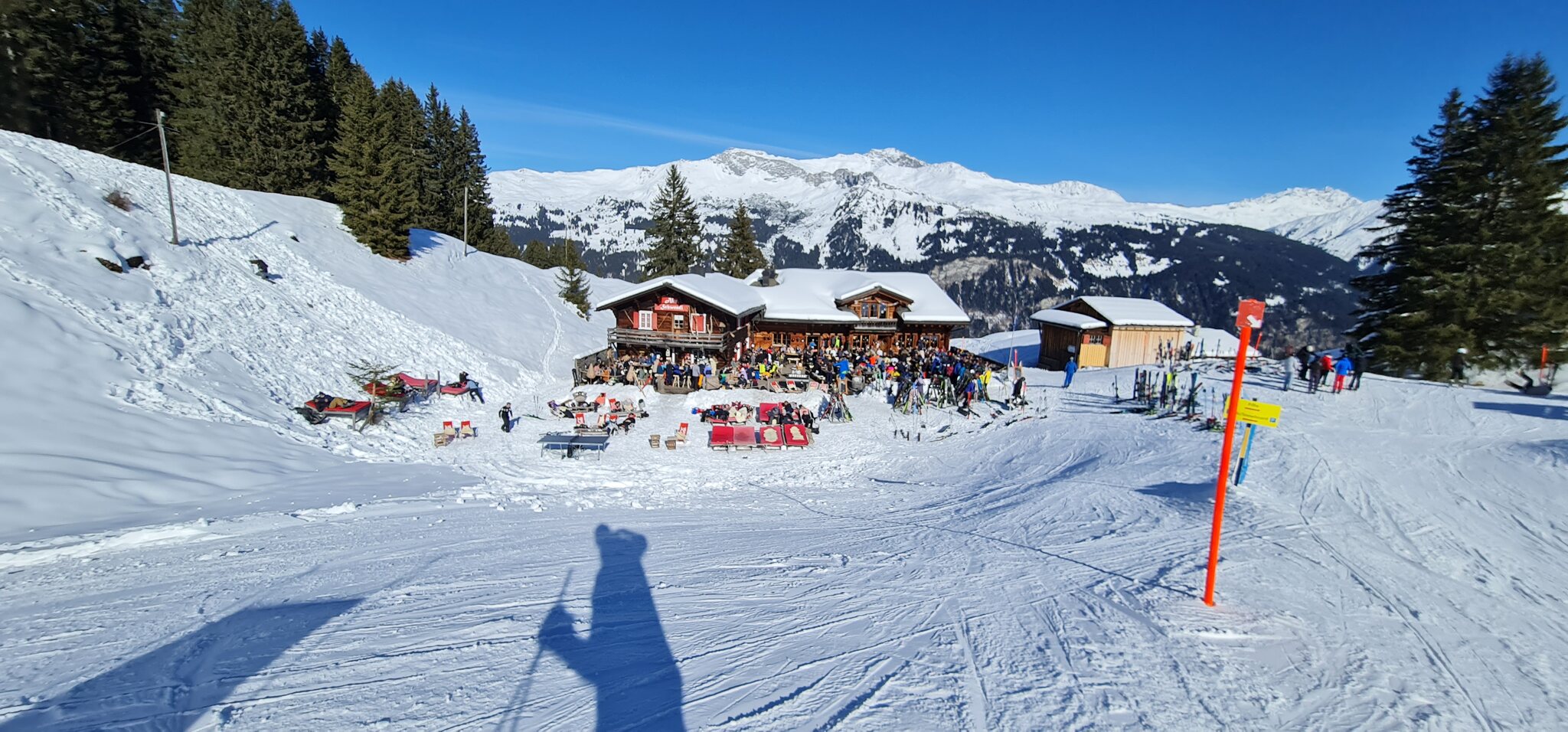 Dafür war ich das erste Mal in der Hubelhütte, das Essen ist dort qualitativ hochwertig. Die blöde flache Rückbringer-Piste habe ich offpiste abgekürzt, war recht pulvrig.
