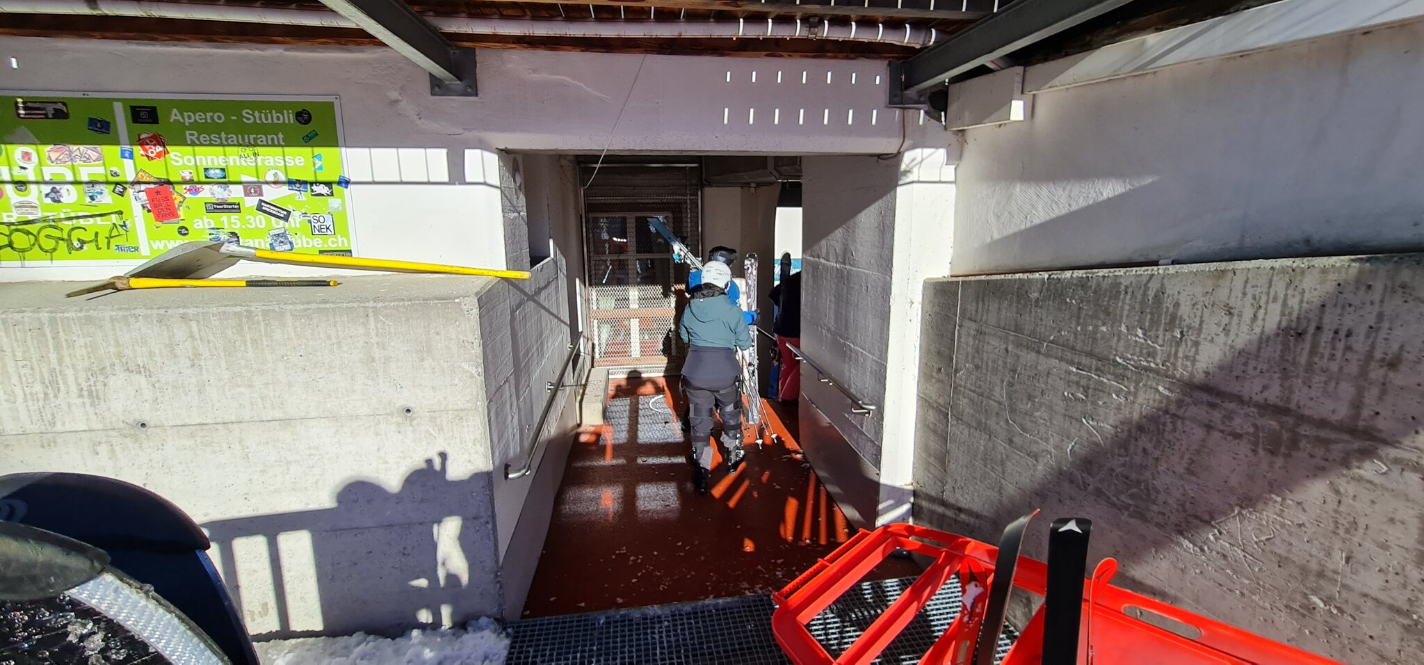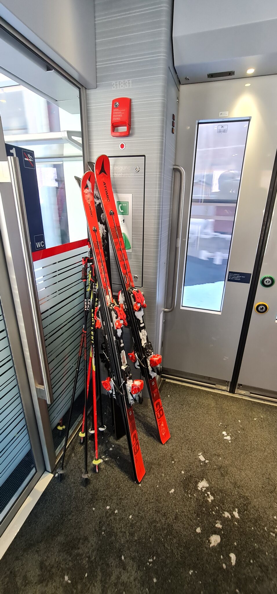 Ein bisschen deplatziert wirken die Ski im 1.Klasse (erst