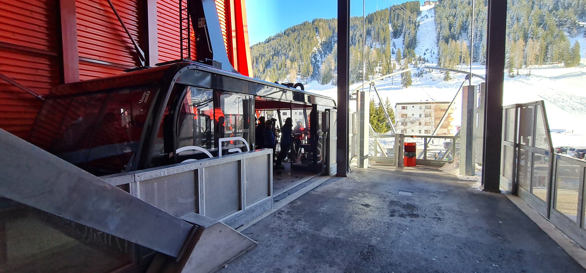 Oben steigen wir in die 2. Gondel ganz hoch um, die gleich losfährt.