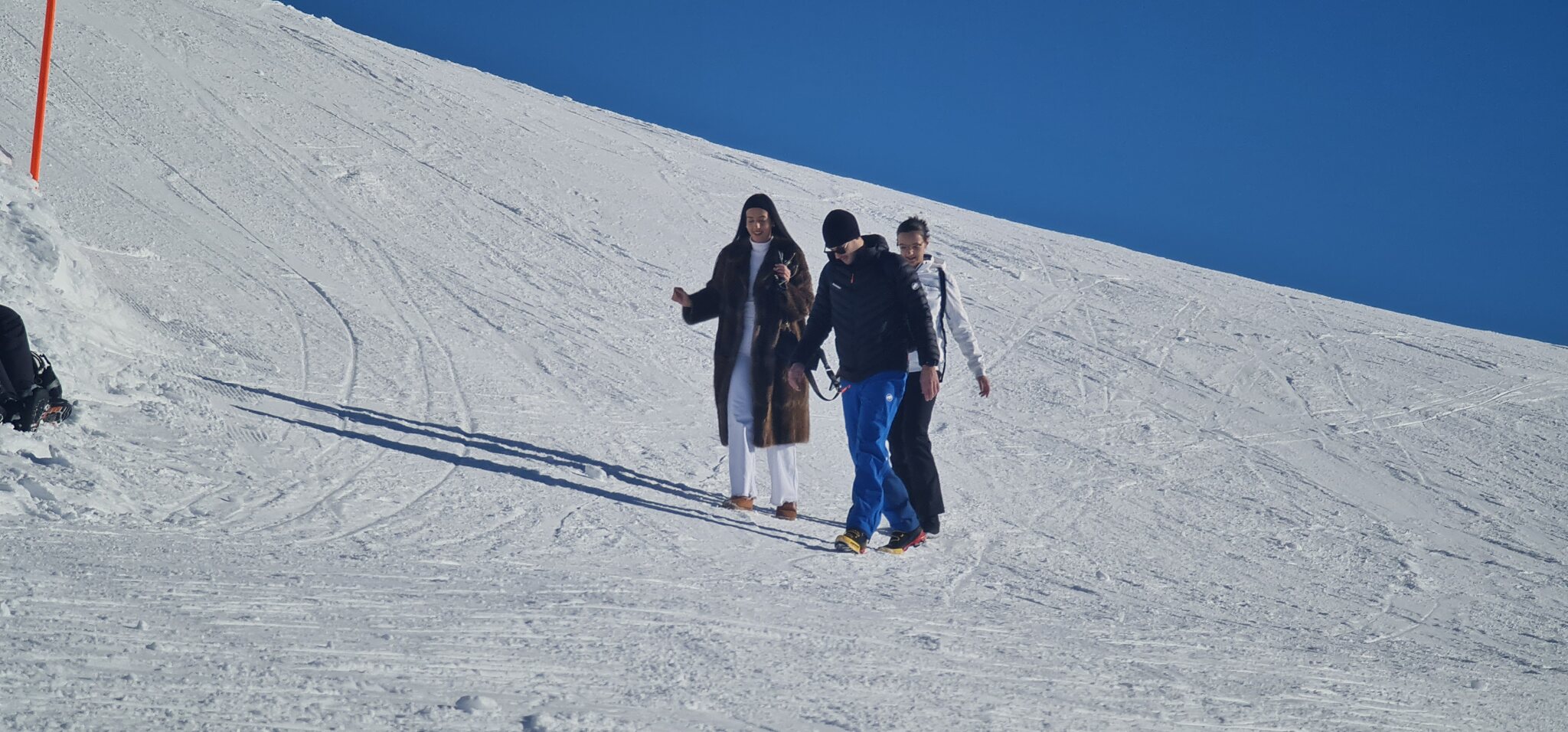 Bei der blauen Piste, wo heute ein Skirennen stattfindet, wurde eine Variante als Umfahrung des Starts gepistet.