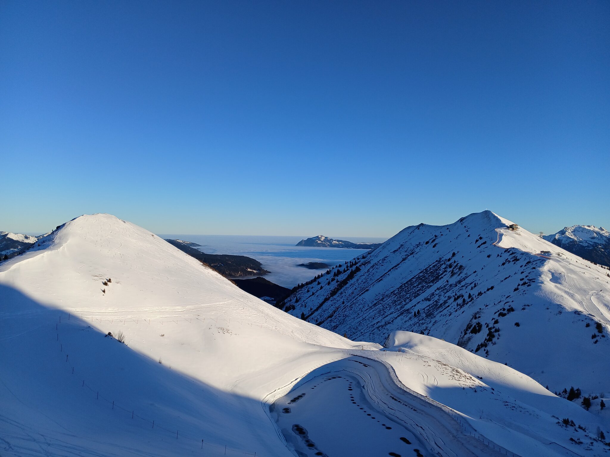 Das Wetter war natürlich traumhaft. Keine Wolke war am Himmel. Deutlich spürbar war die Inversionswetterlage. Während es im Tal bis zum Mittag frostig kalt war, war es am Berg rasch ziemlich mild.