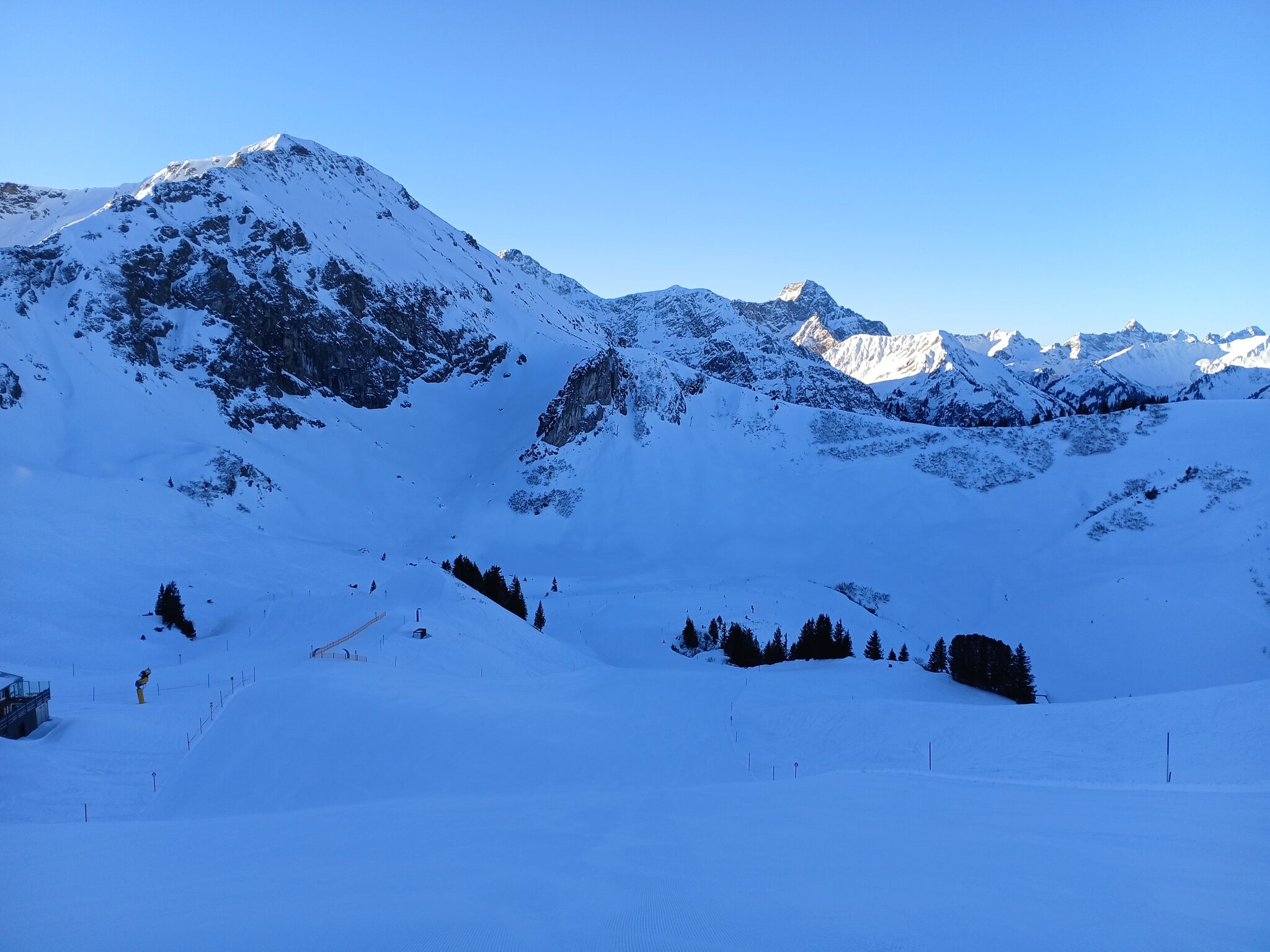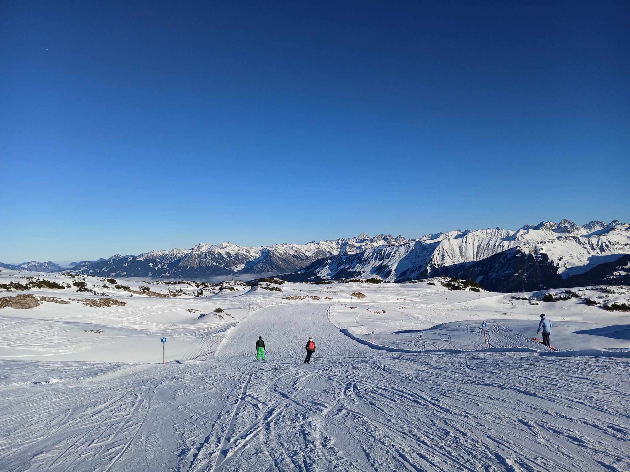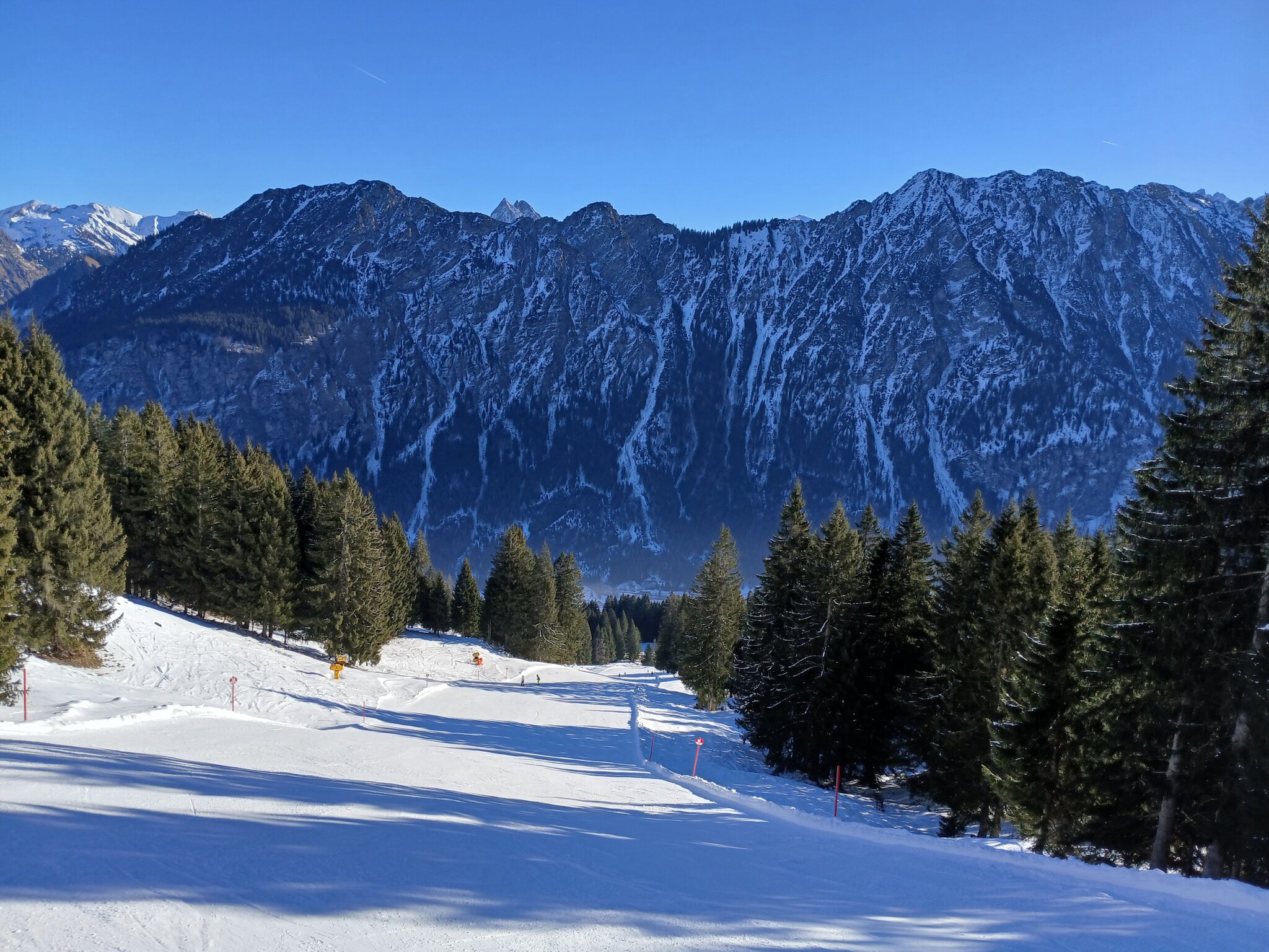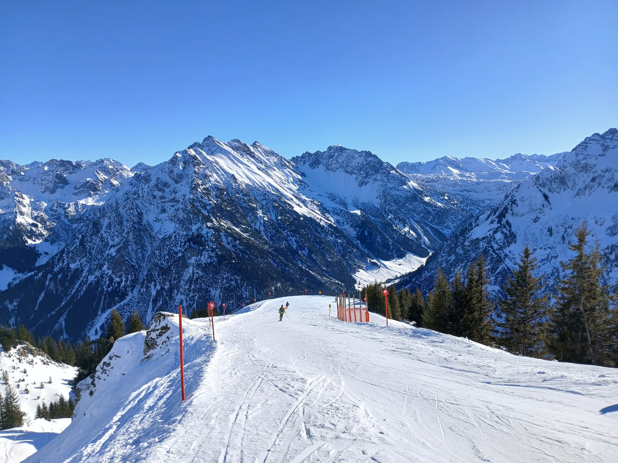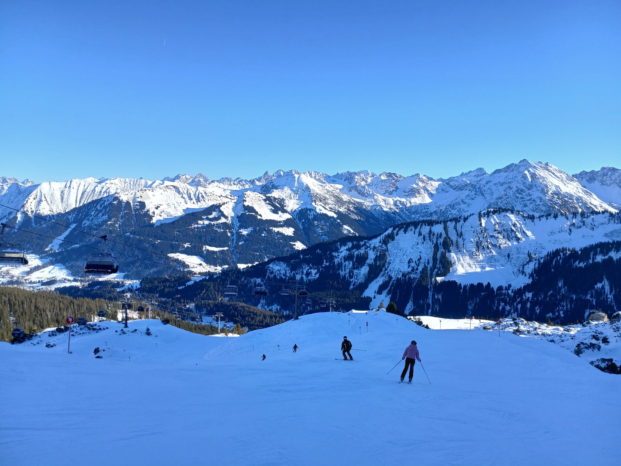 Am Morgen parkte ich mein Auto am Ifen, fuhr mit dem ersten Bus der Linie 5 zur Kanzelwandbahn und fuhr dann ab dort die Skigebiete in der vorgenannten Reihenfolge ab.