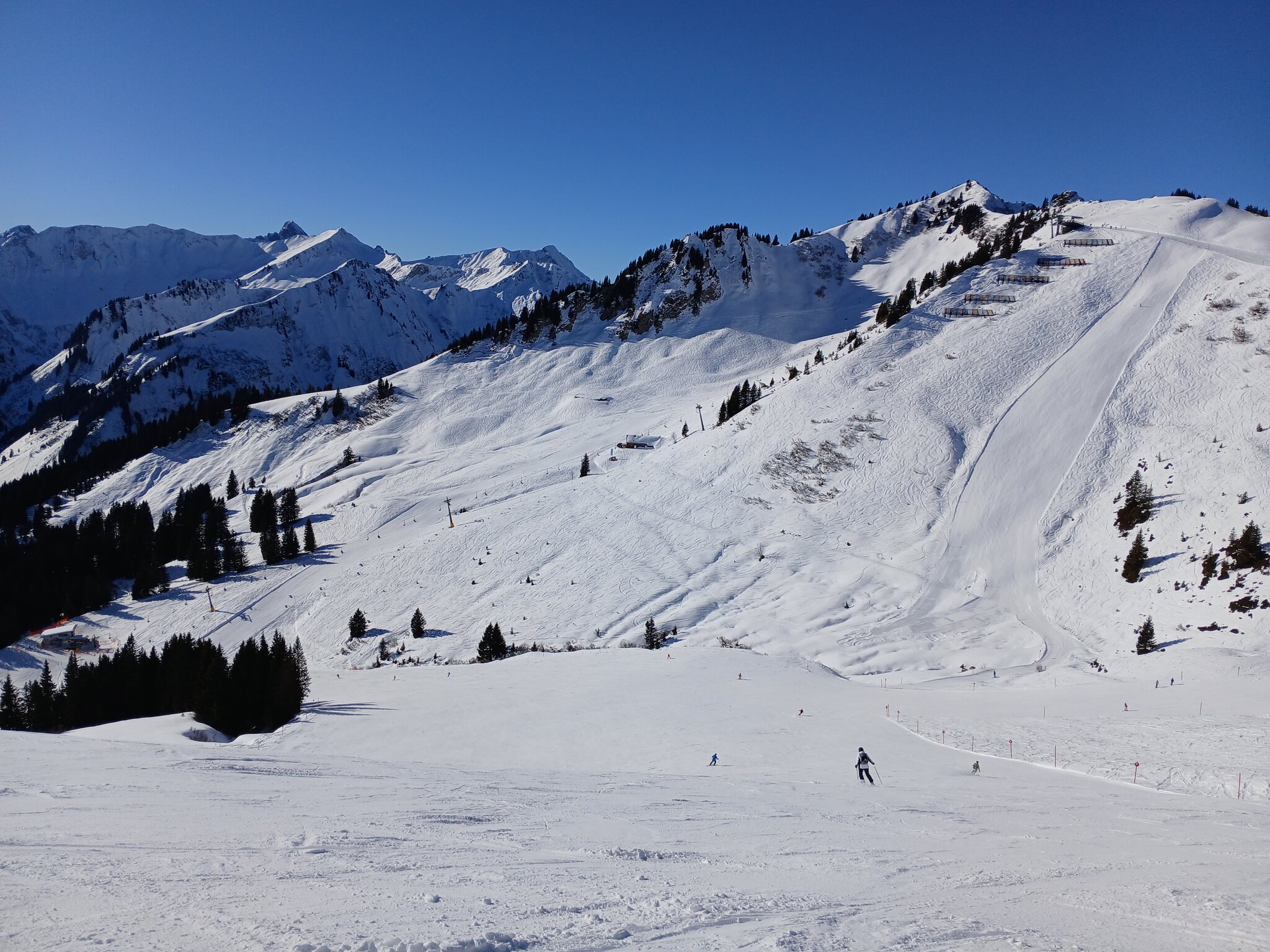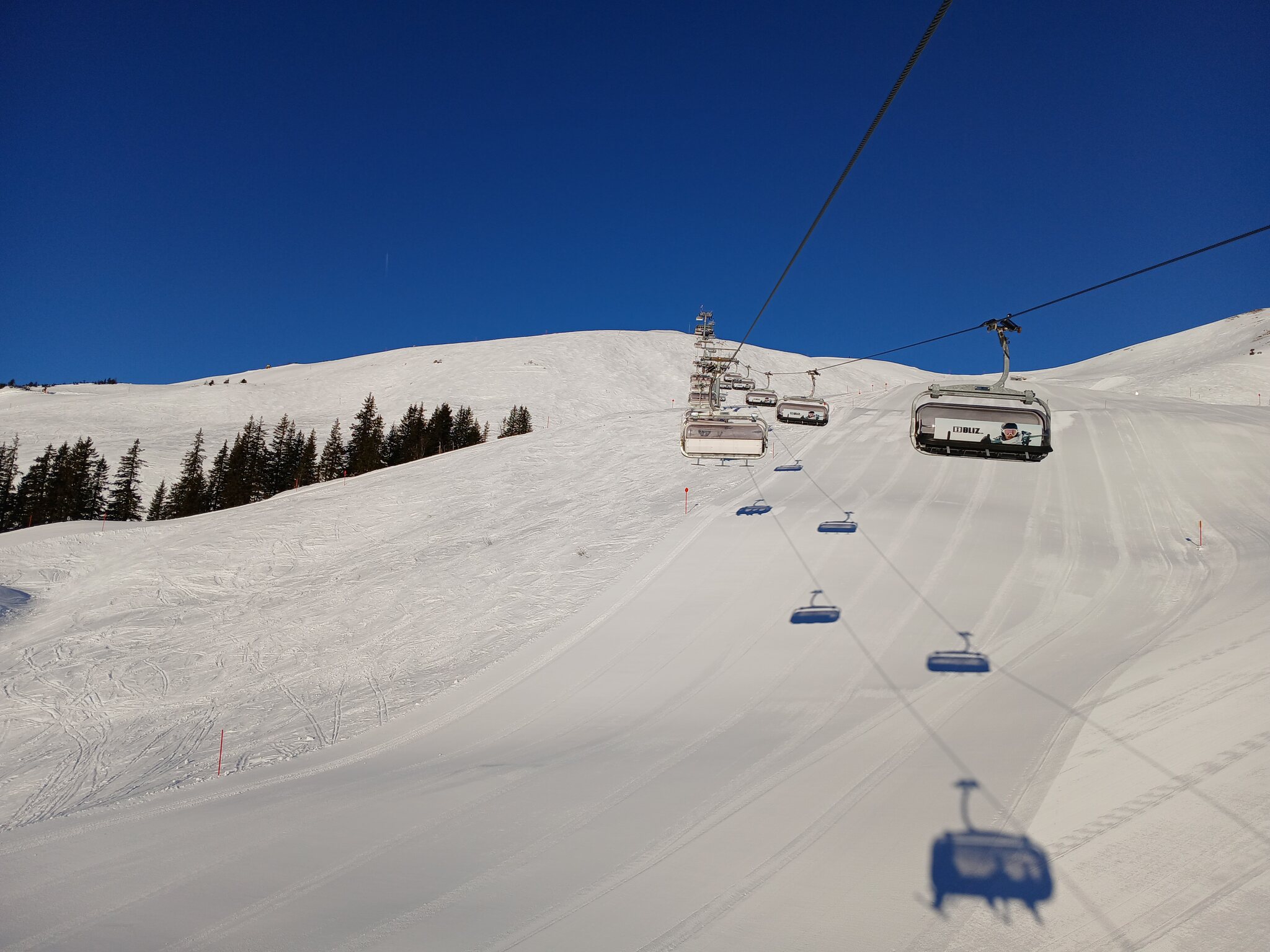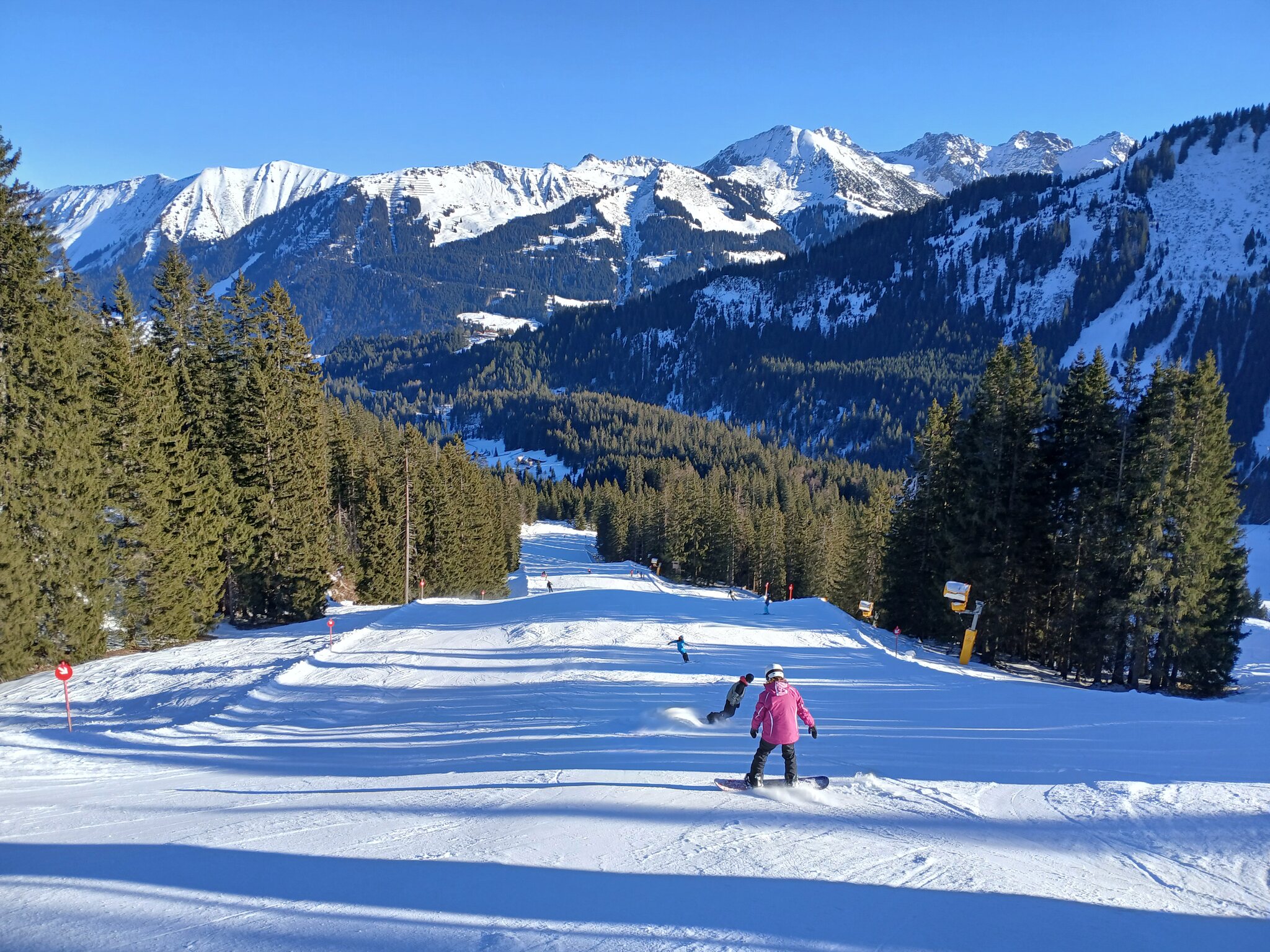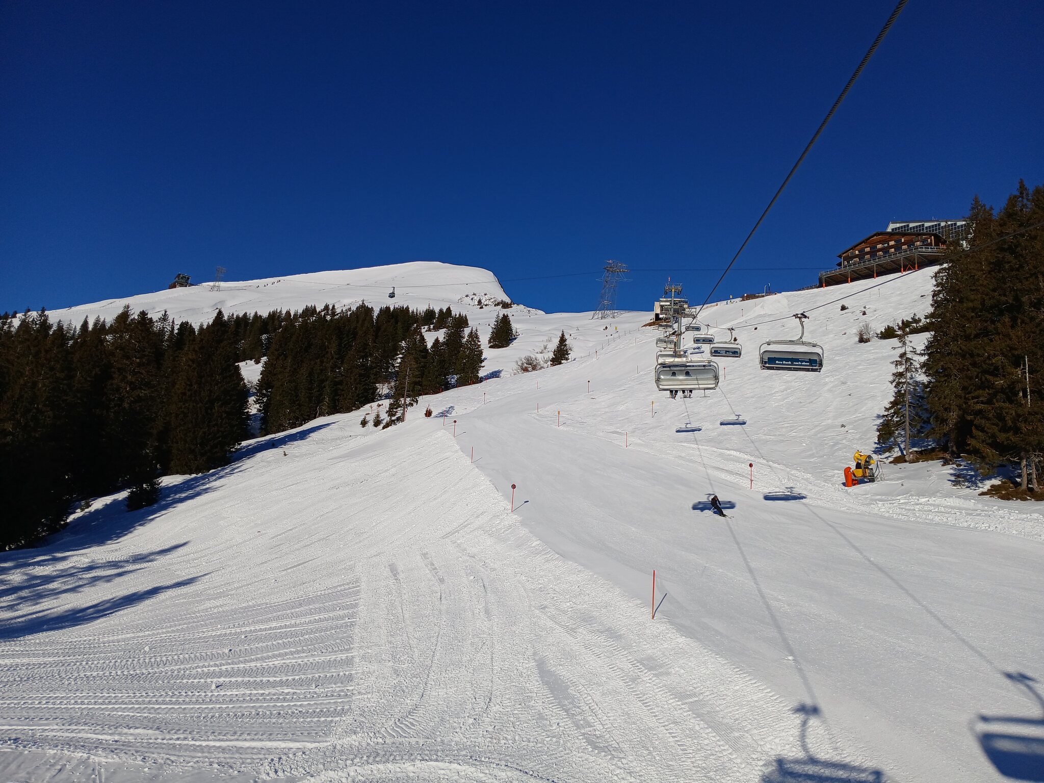 Die Abfahrten hier waren supergut. Es machte mega Spaß. Nur an den Kuppen musste man fallweise wegen der Nachbeschneiung, die über Nacht erfolgt ist, aufpassen