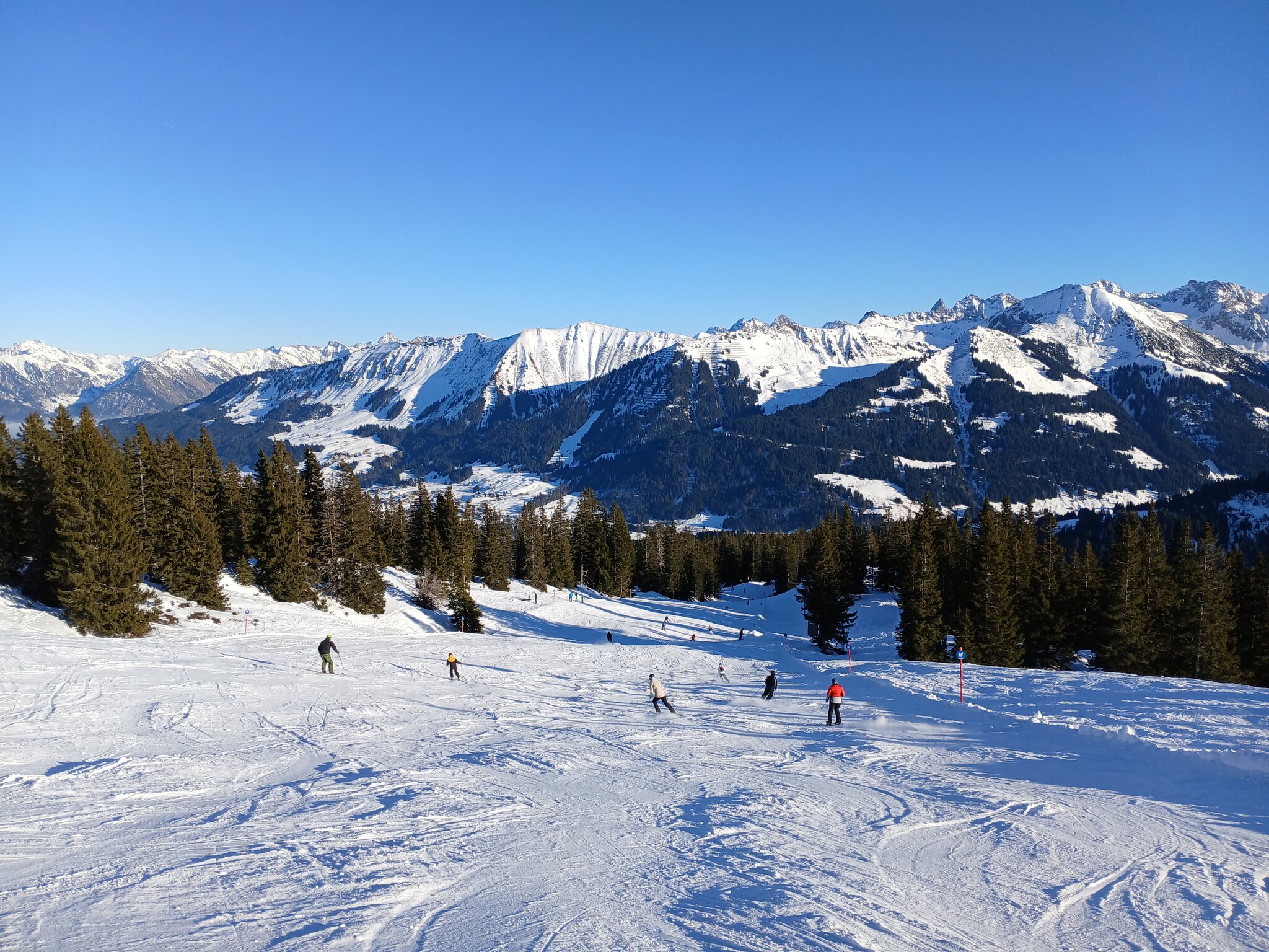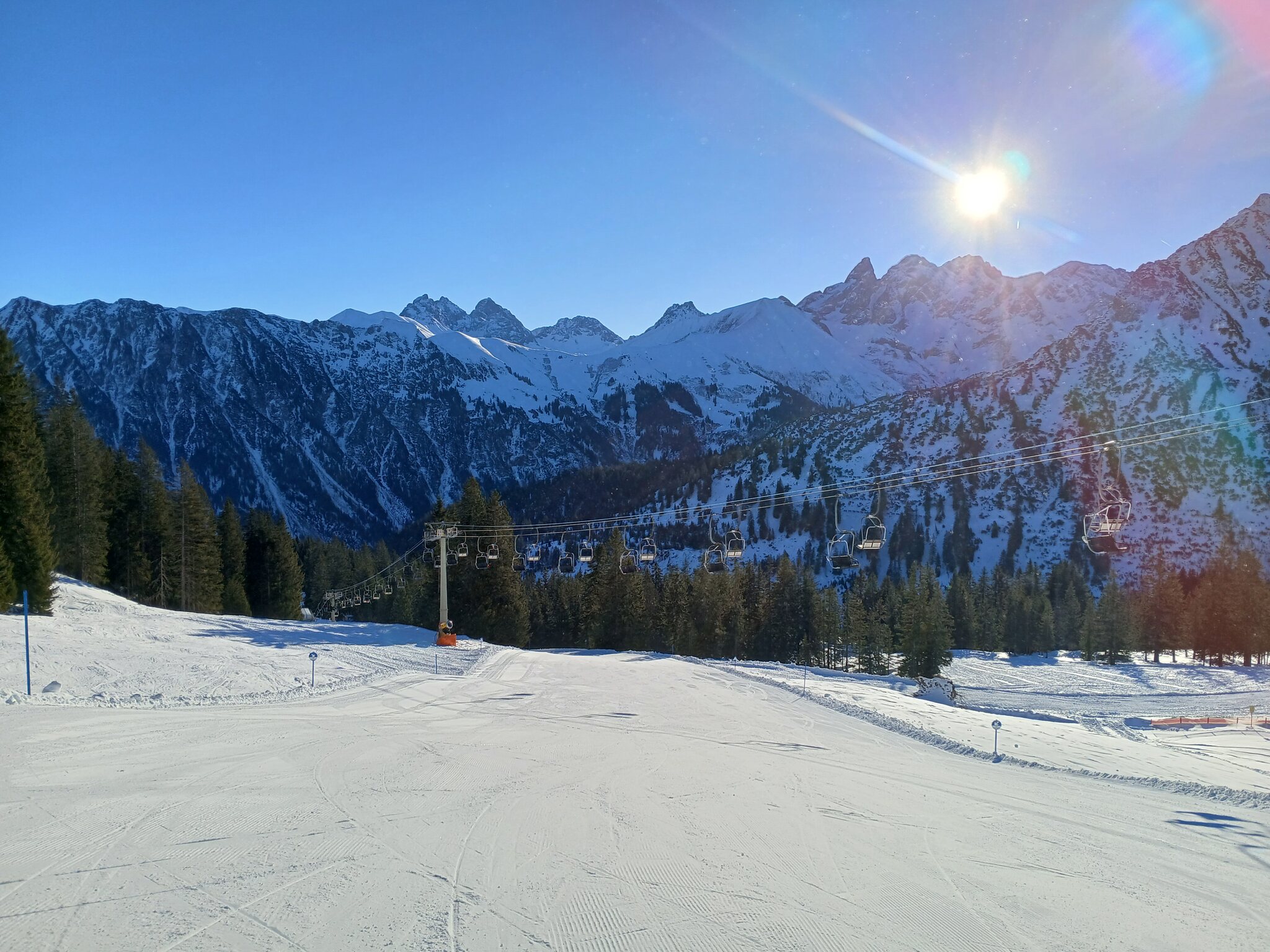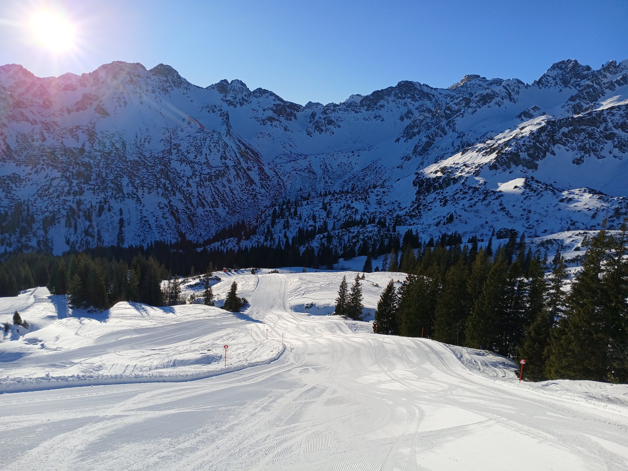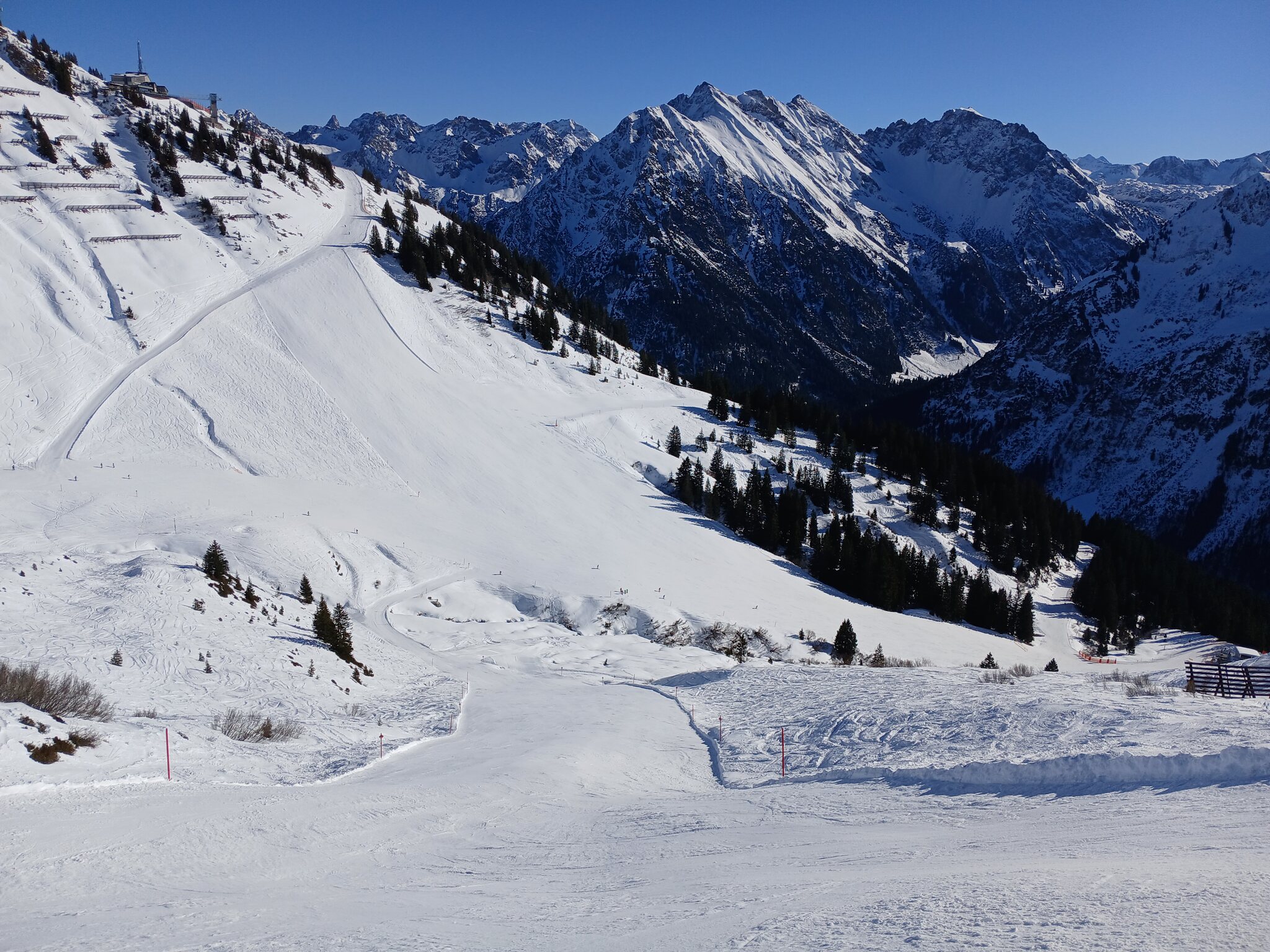 Da die Verbindung zum Fellhorn - warum auch immer - erst um 09:00 Uhr öffnet ging es zum Einfahren auf die gute Abfahrt an der Zwerenalpbahn
