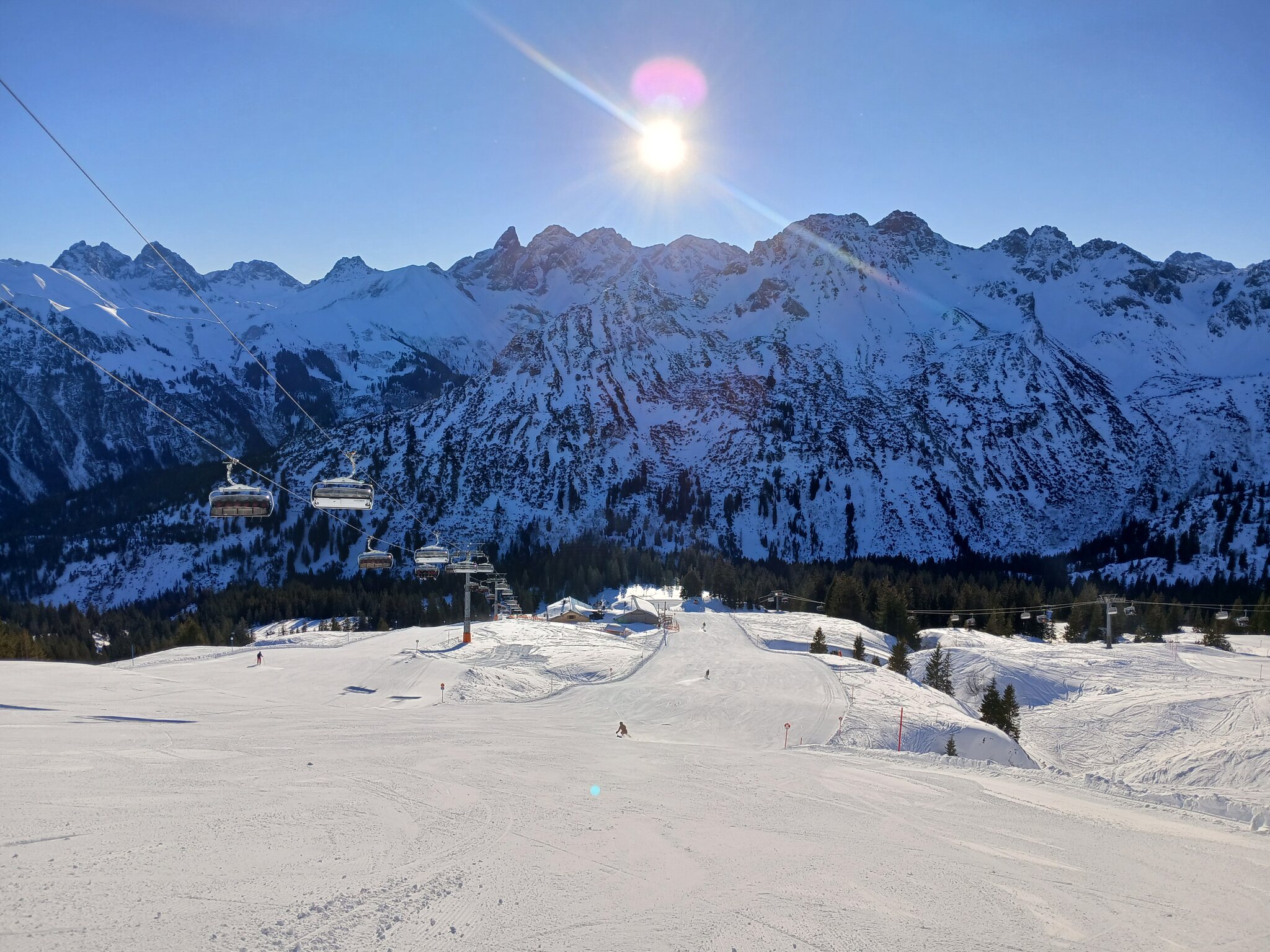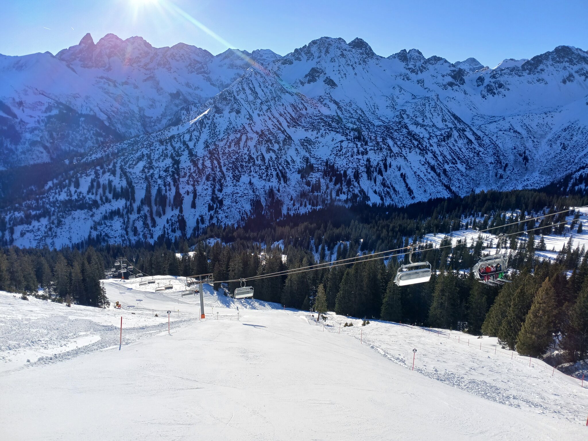 Oben am Berg hat es am Walmendinger Horn einen sehr schönen Kessel, der von einer 4SB erschlossen wird
