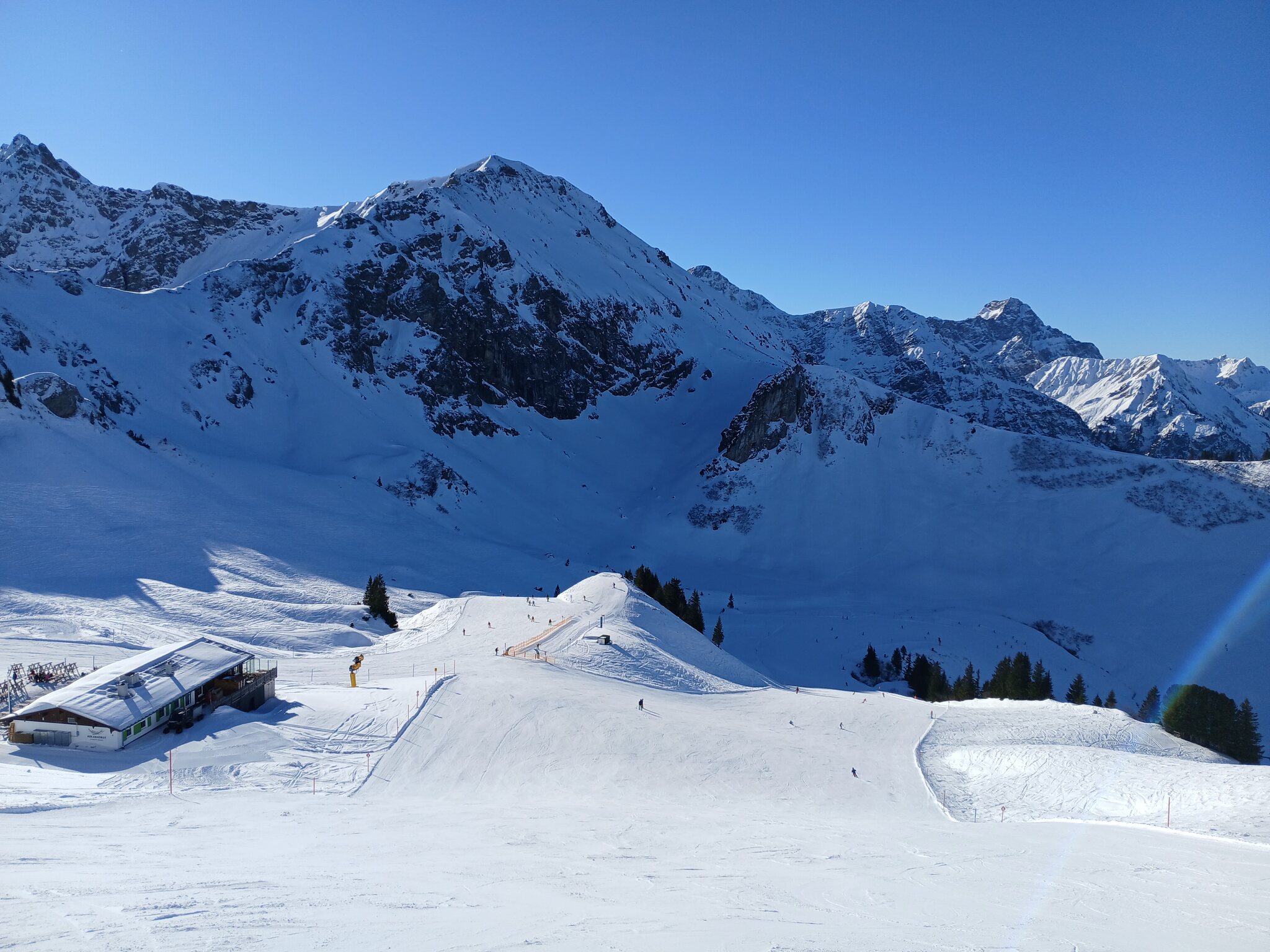 Auf den Pisten am Schlösslelift kam ab und an etwas Gemüse durch. Dafür waren die Pisten hier aber selbst am Mittag quasi noch jungfräulich