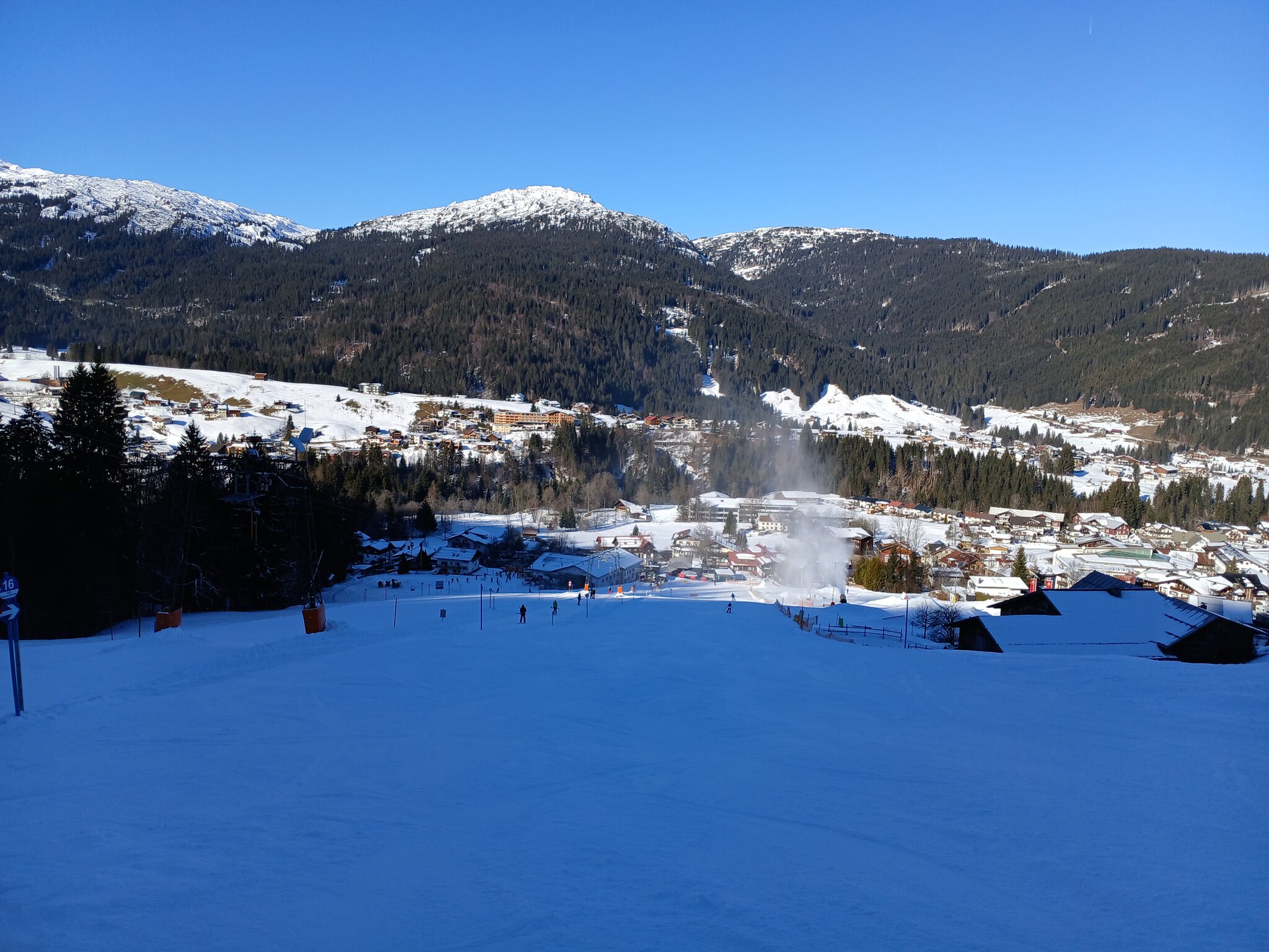 Am Hubertuslift selbst liegt kaum Naturschnee. Die Kunstschneepiste war aber sehr gut
